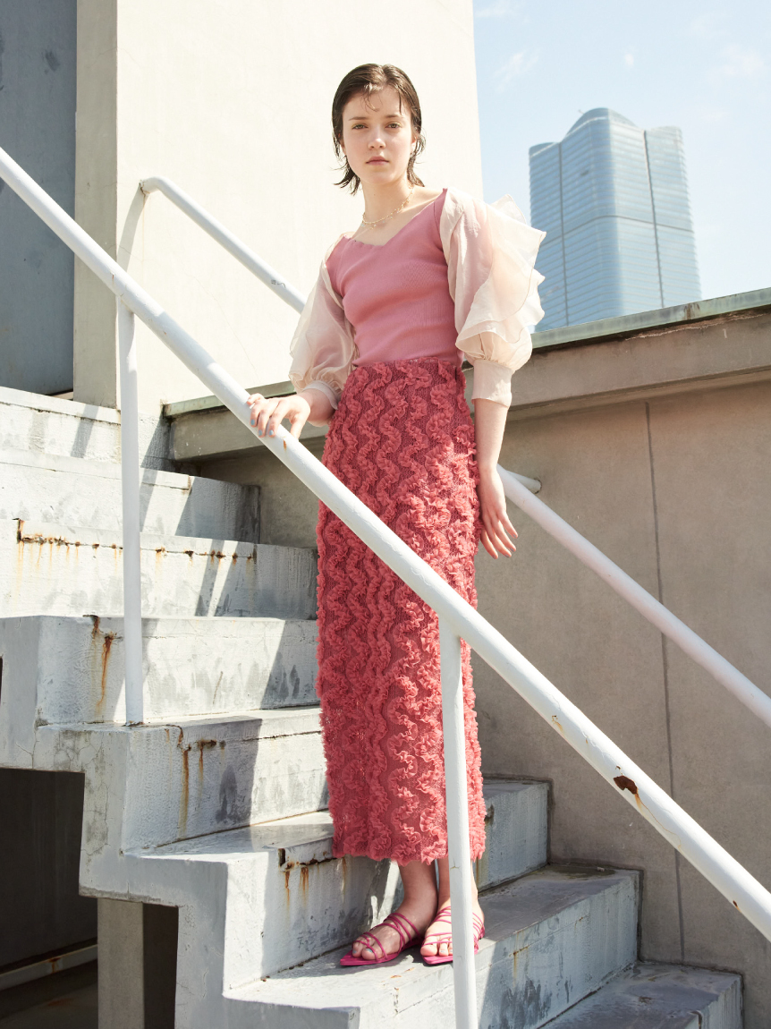 身体のラインを拾いにくい程よい肉感のニット素材を使用。ベーシックカラーのホワイトとブラックに、シーズンコーデにぴったりのピンク、ブルーを加えた豊富なカラー展開でお届けします。