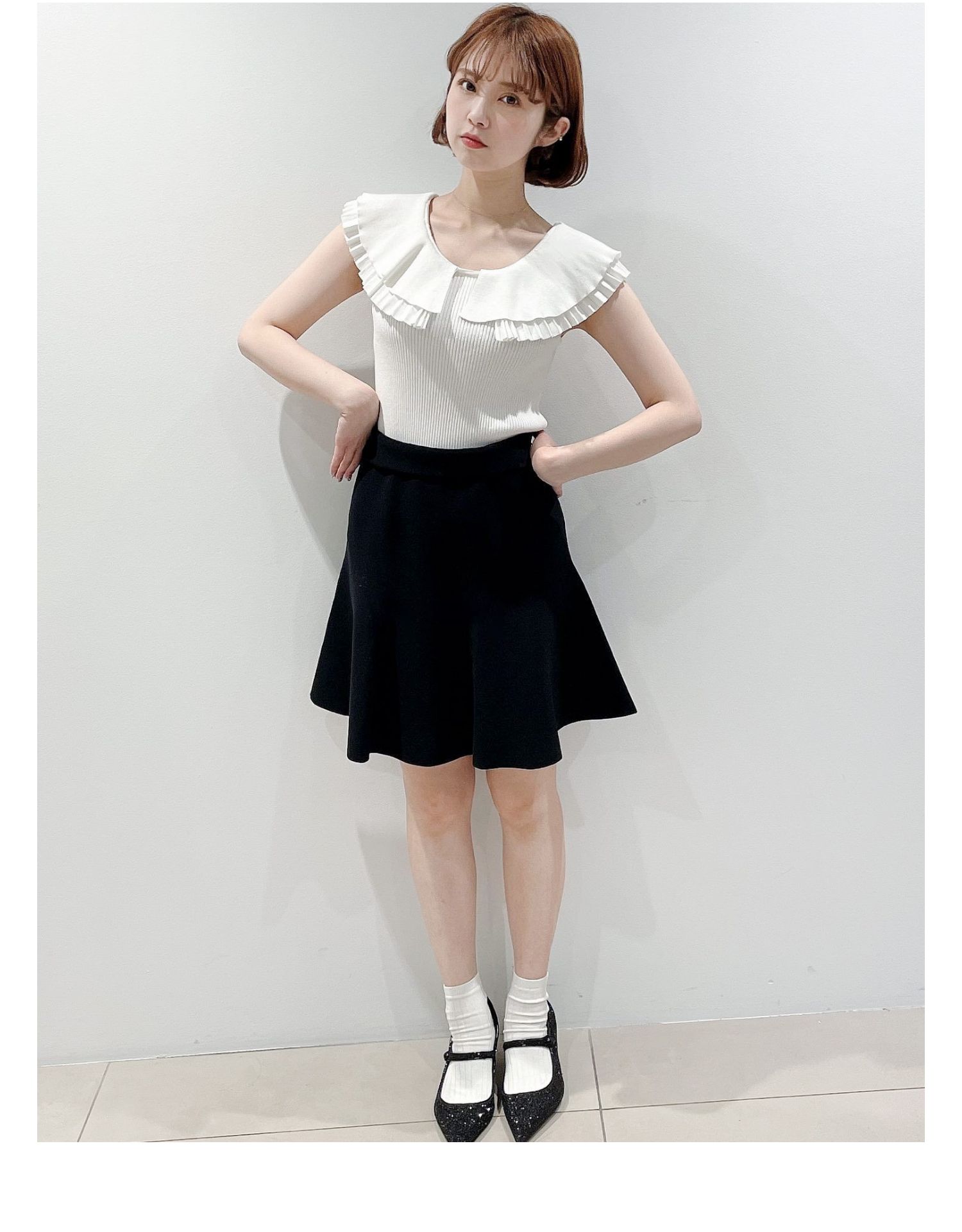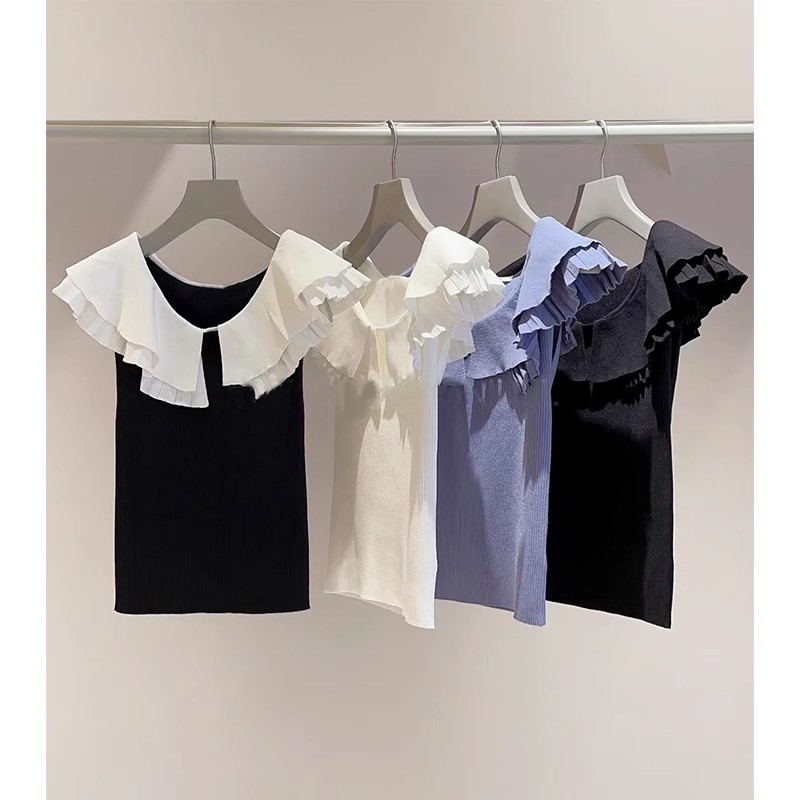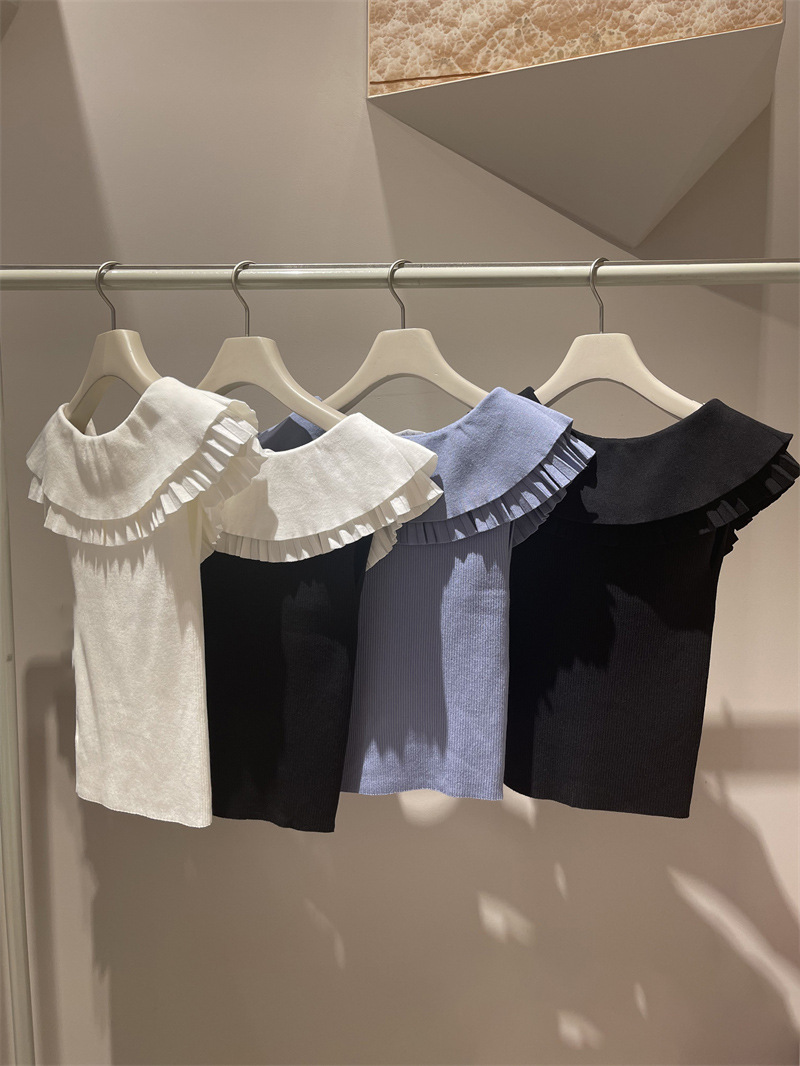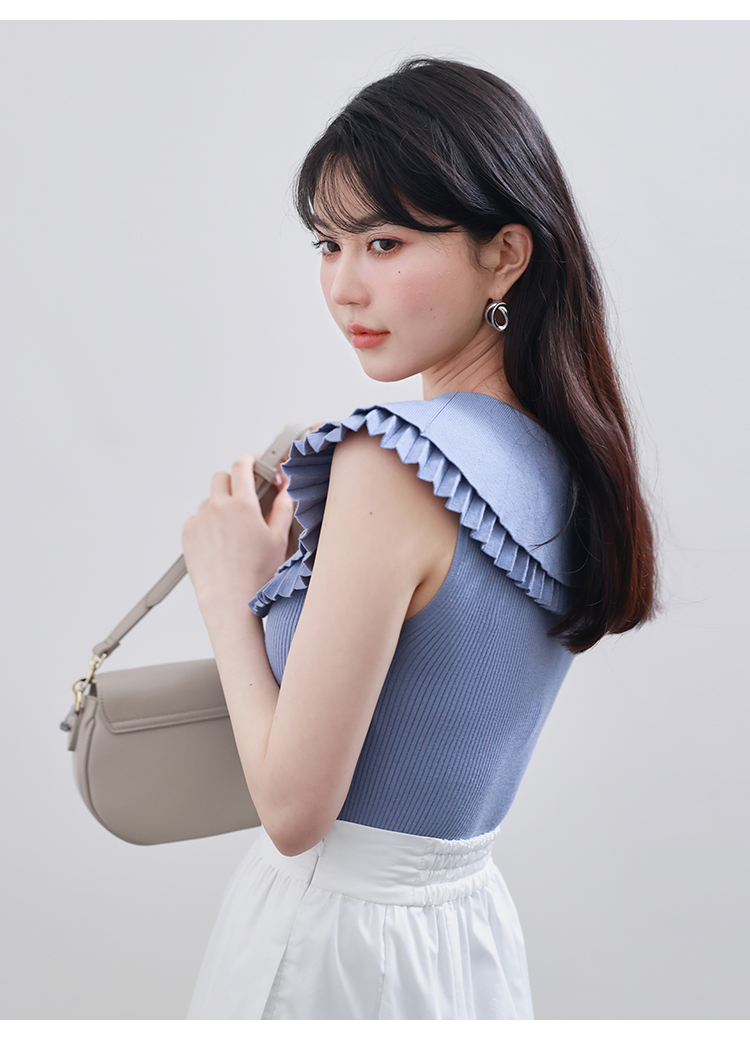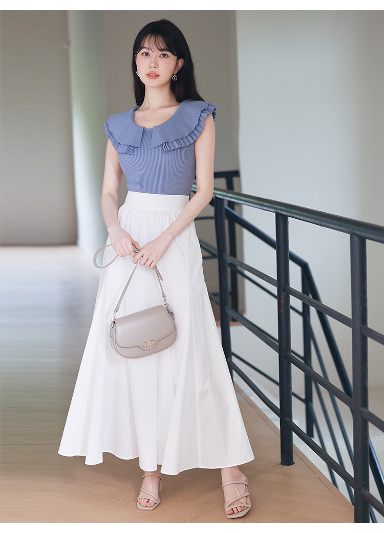 【存在感のある襟で華やかに魅せたニットトップス】