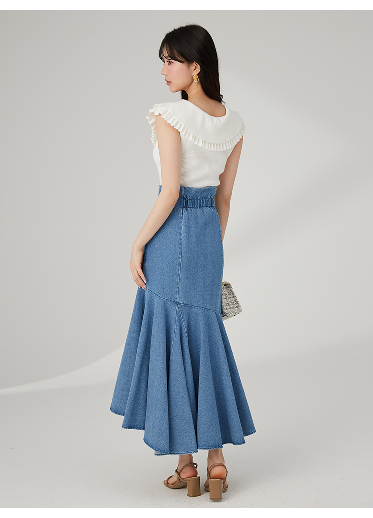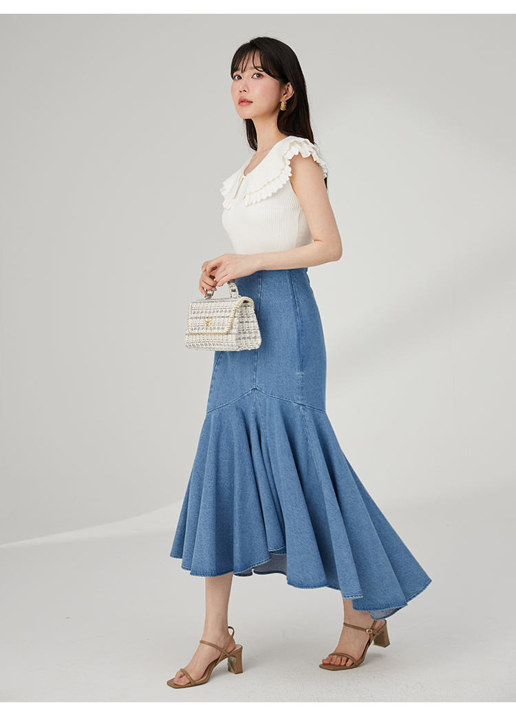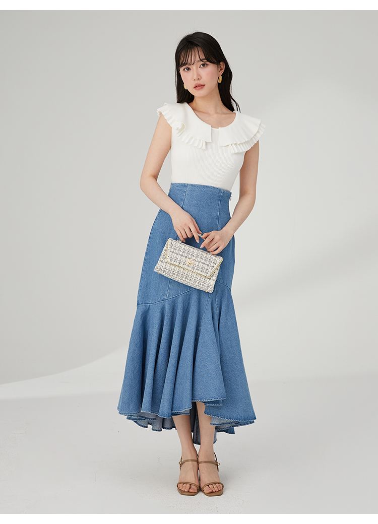 ベースには伸縮性のある柔らかなリブニットを使用。クリーンなムードのホワイト、大人っぽい印象を与えるブラック、今年らしいくすみカラーのブルー、バイカラーでモードに仕上げたミックスの4色をご用意しました。