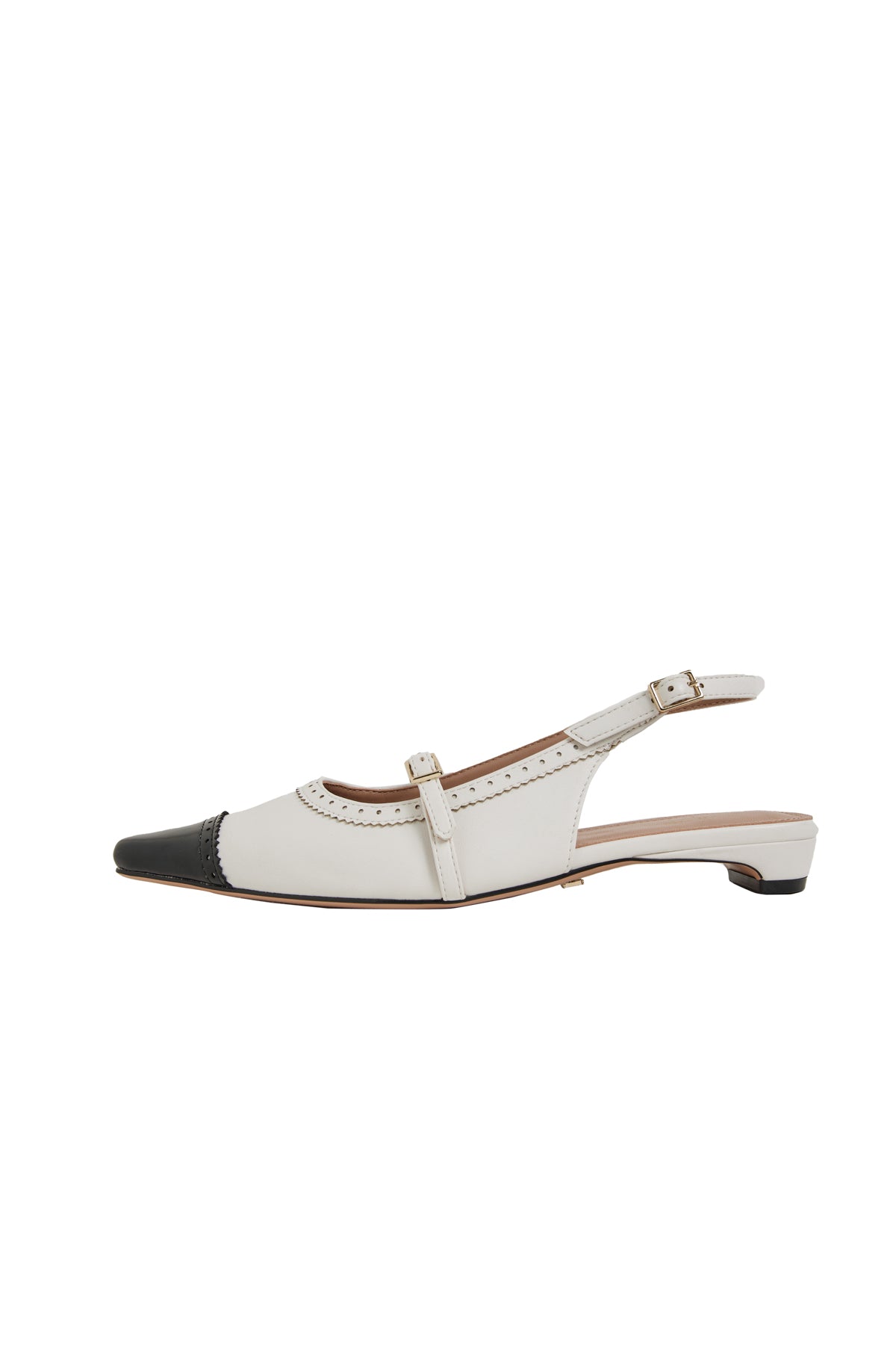 スリングバックのベルトはゴムを配しており、簡単に着脱可能。
