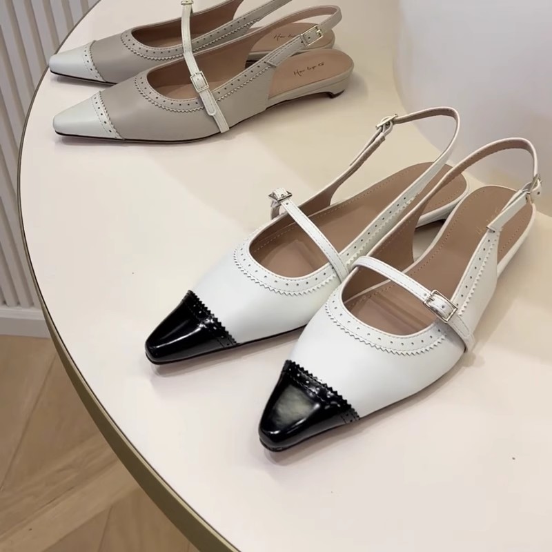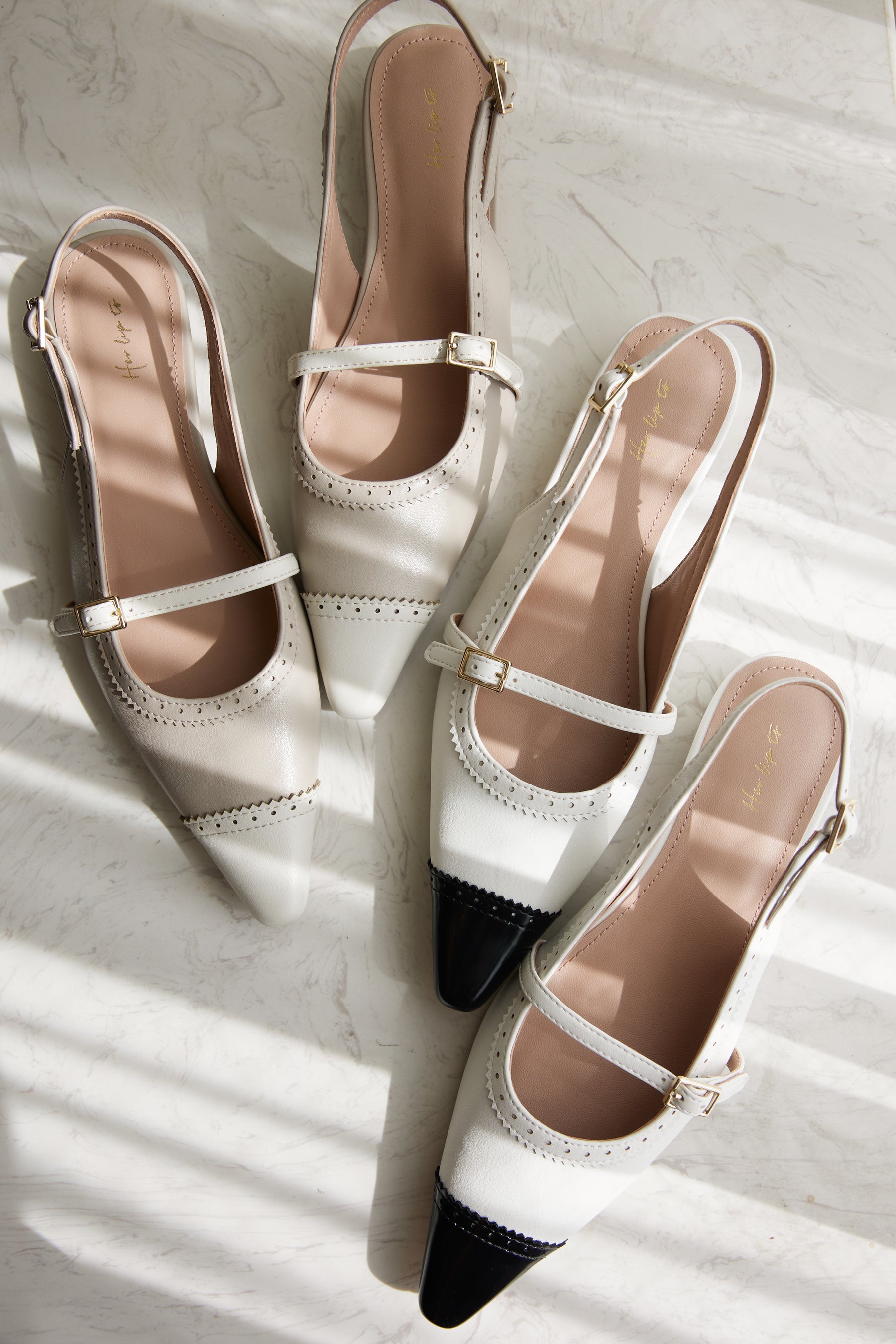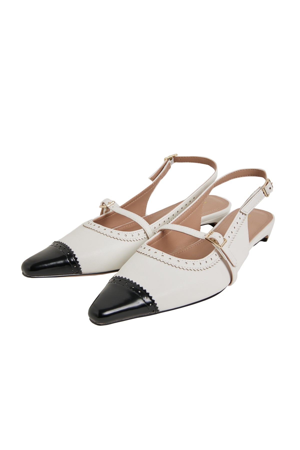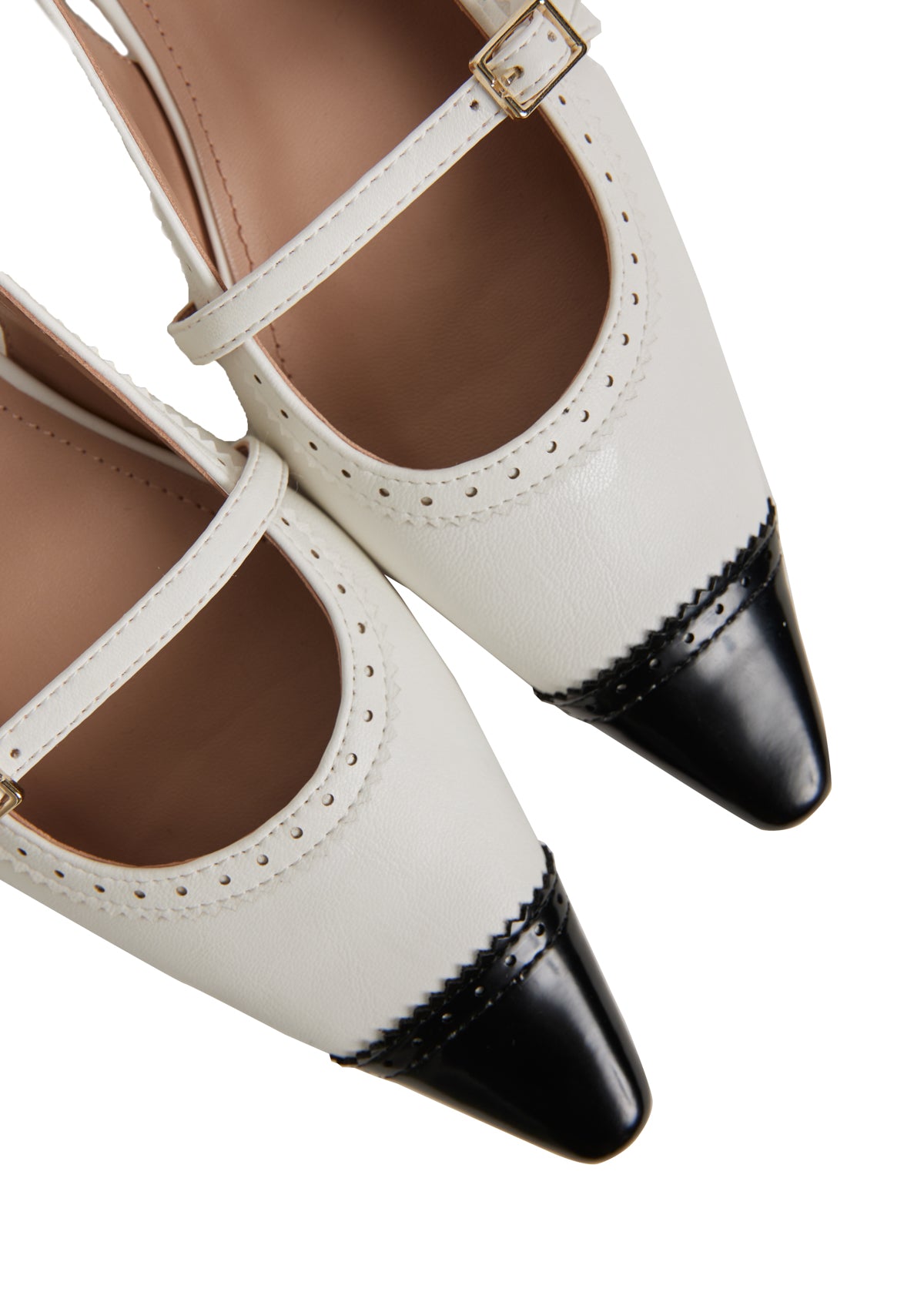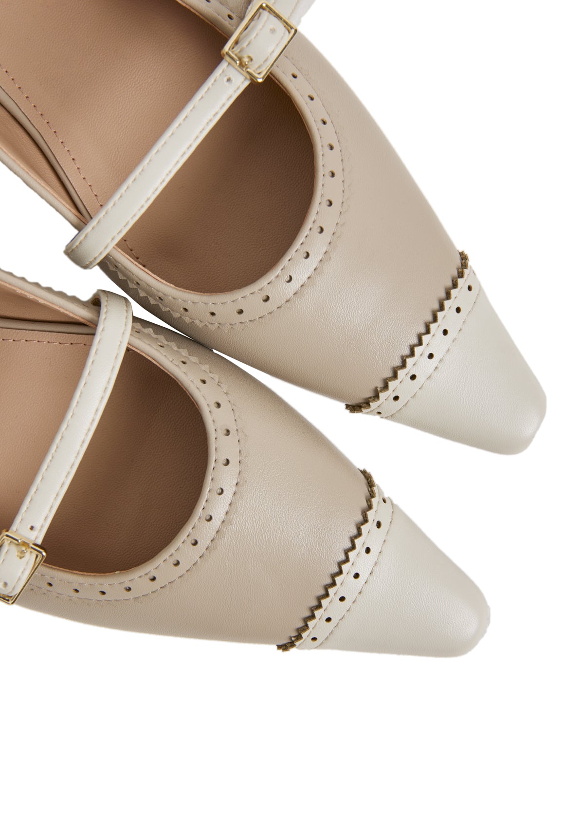 クラシックなメダリオンが洗練された雰囲気を与えてくれる微配色でシックな印象のパンプス。