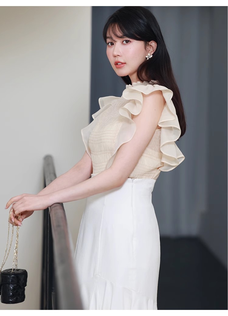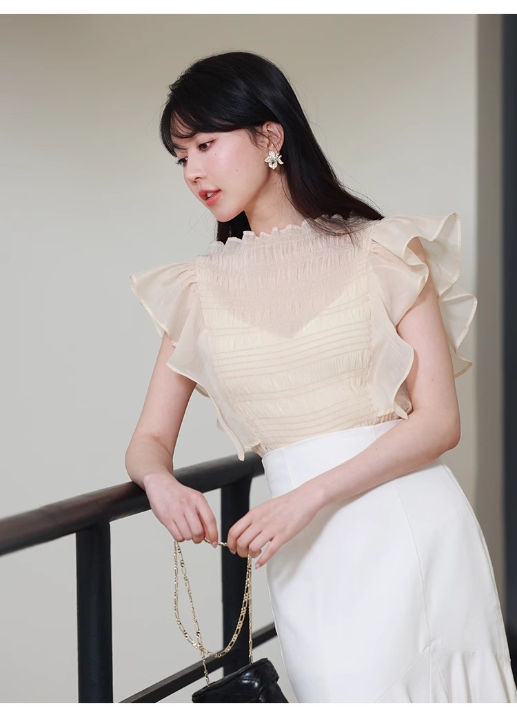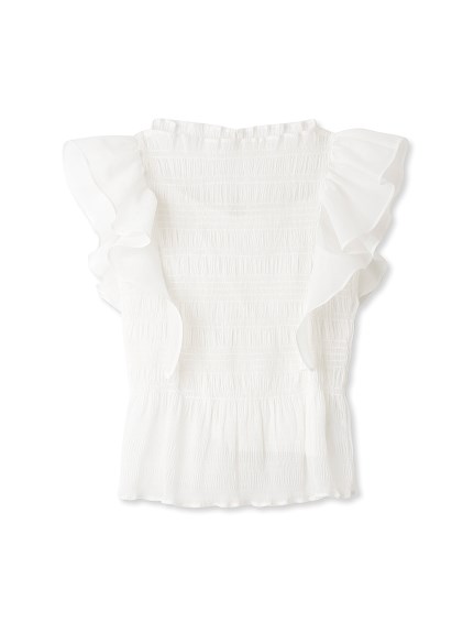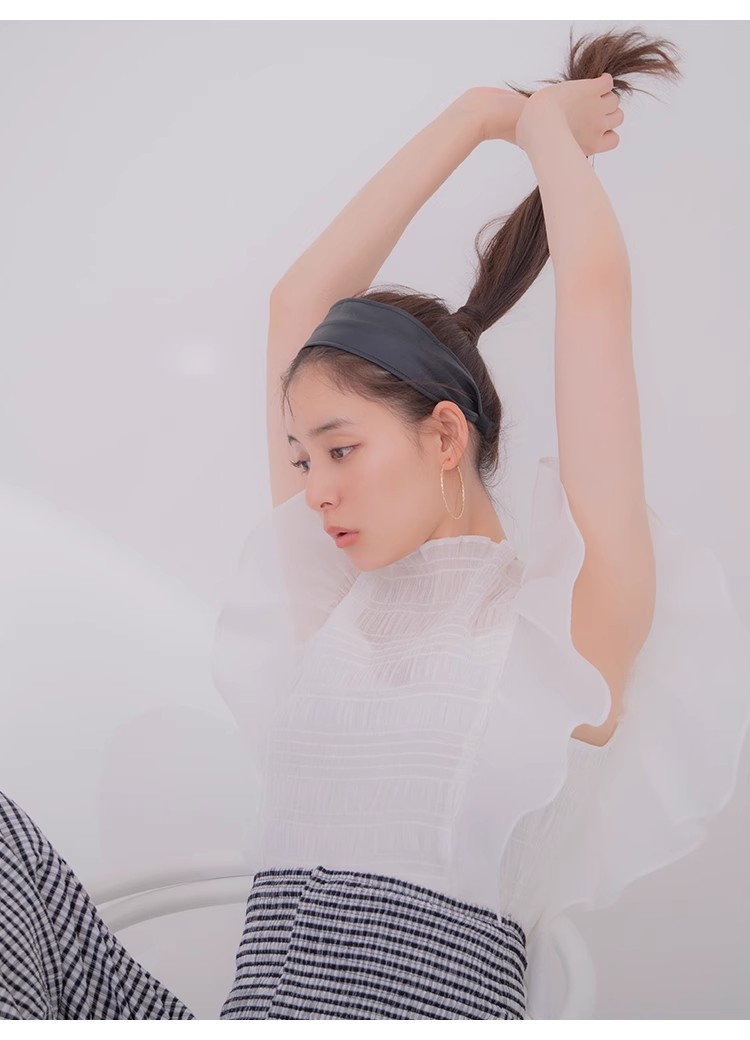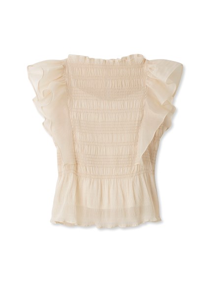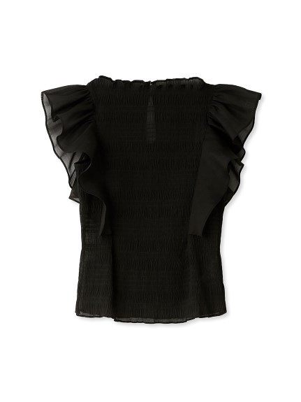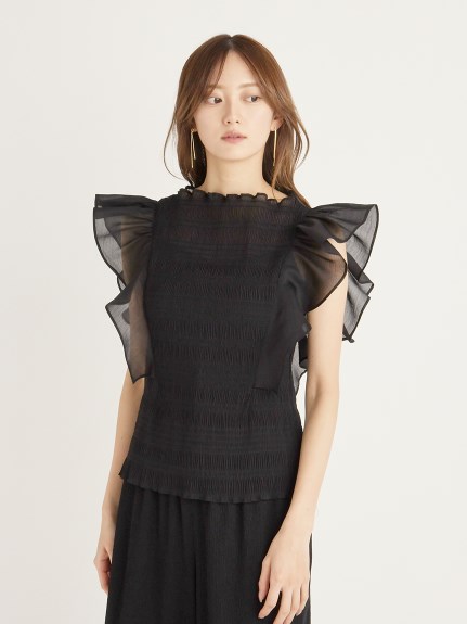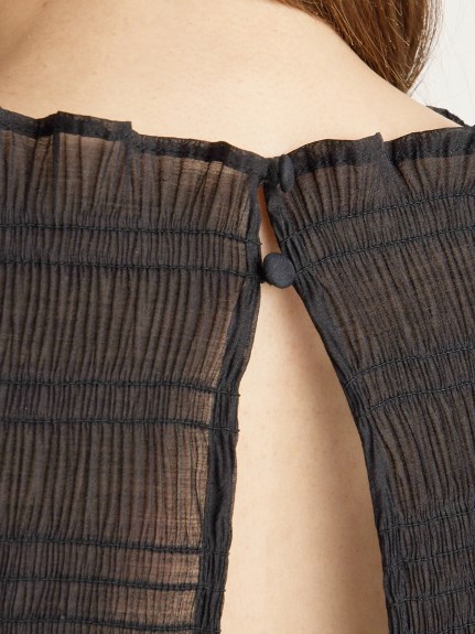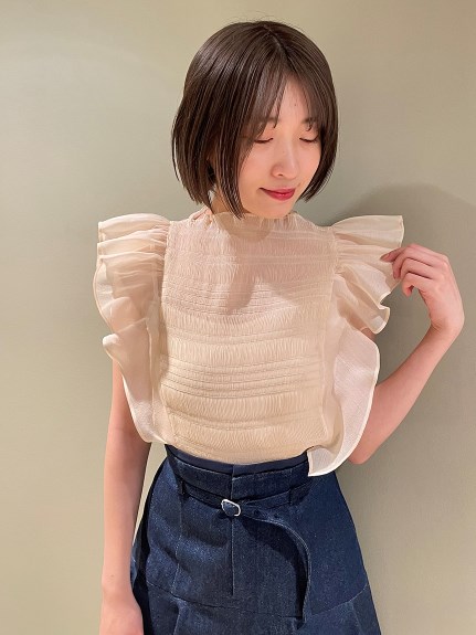 【繊細なシャーリングデザインで魅せるシアーブラウス】