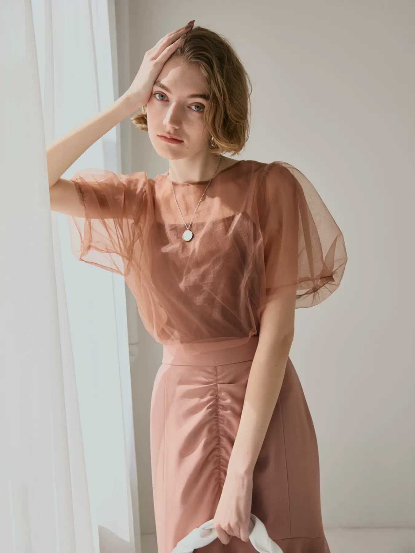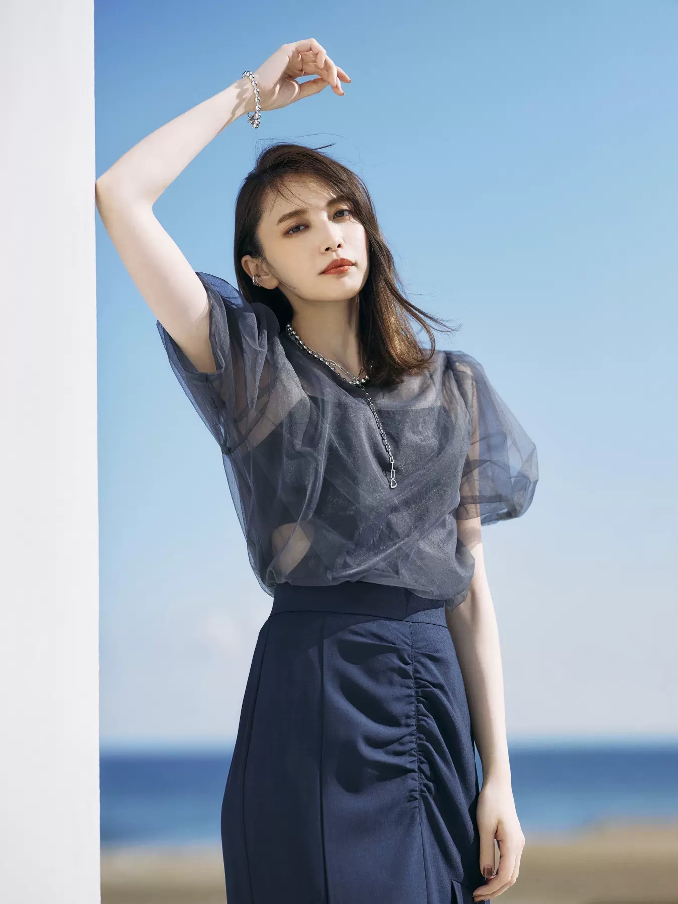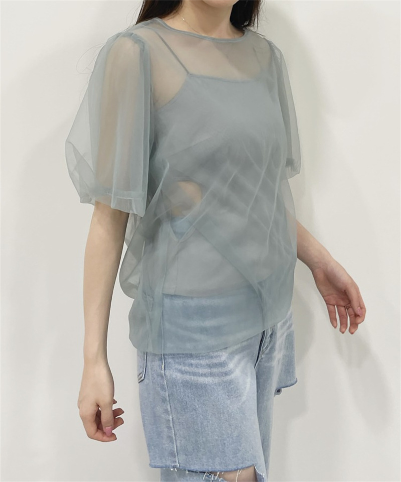 Sustainableシースルーショルダーニットプルオーバー