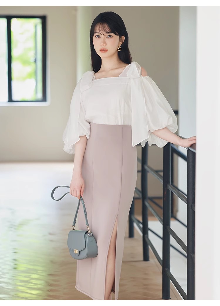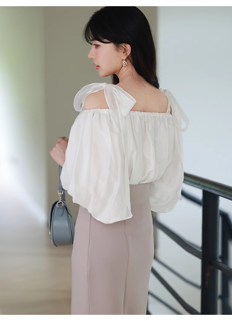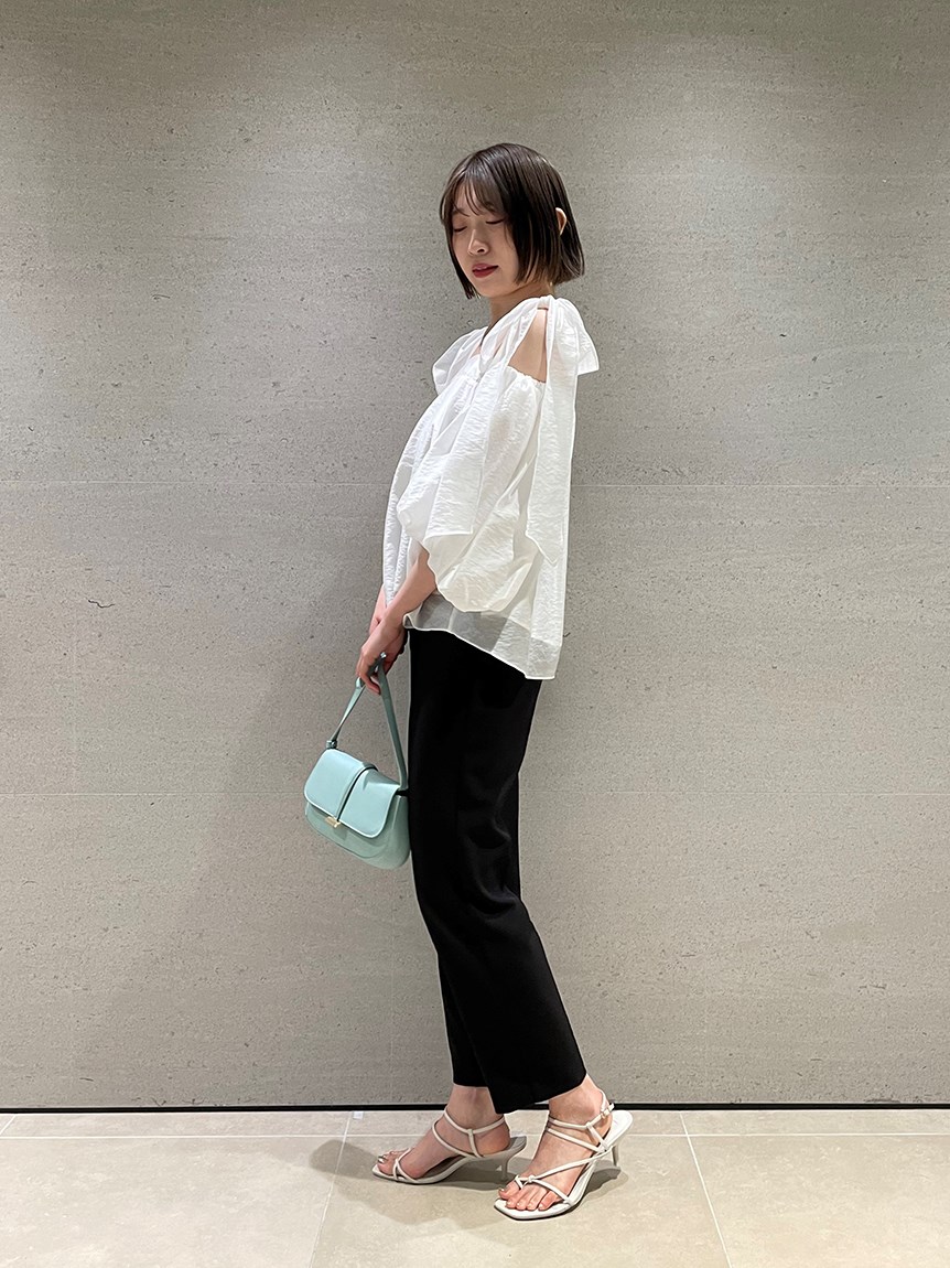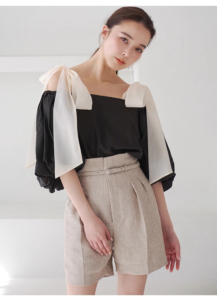 ヘルシーな肌見せで女性らしさを引き立てるオフショルデザインのブラウス。肩に大きめのリボンをあしらうことでとことんフェミニンに仕上げました。ふんわりと丸みを持たせたボリュームスリーブで華奢見えを演出。レディライクなスカートにはもちろん、敢えてカジュアルなデニムなどと合わせたMIXスタイルもおすすめです。