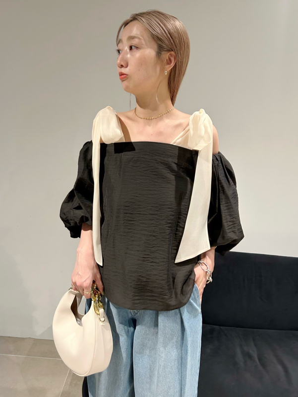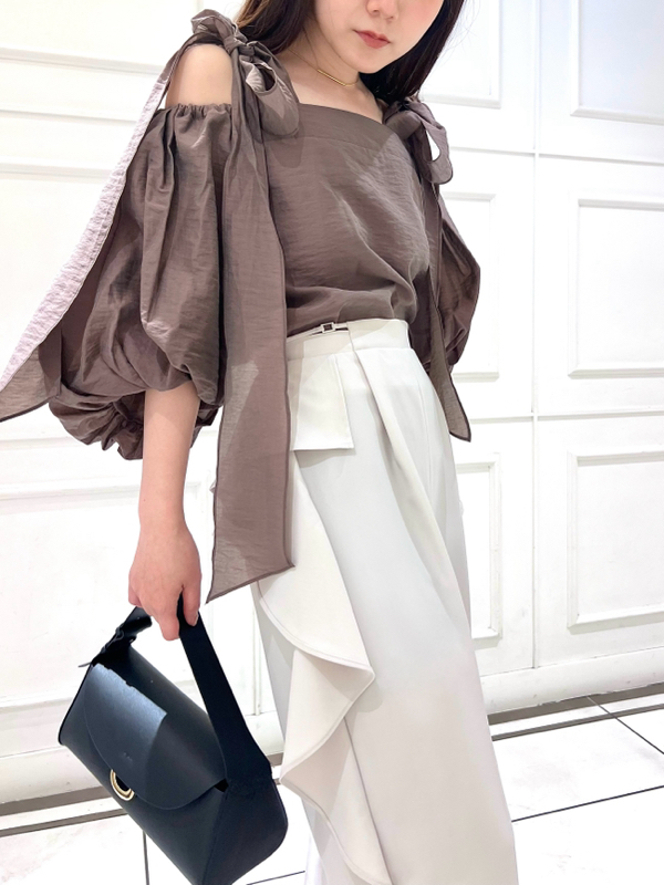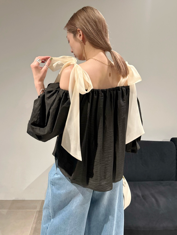 オフショルリボンブラウス