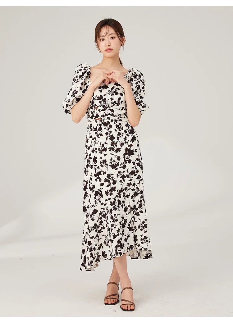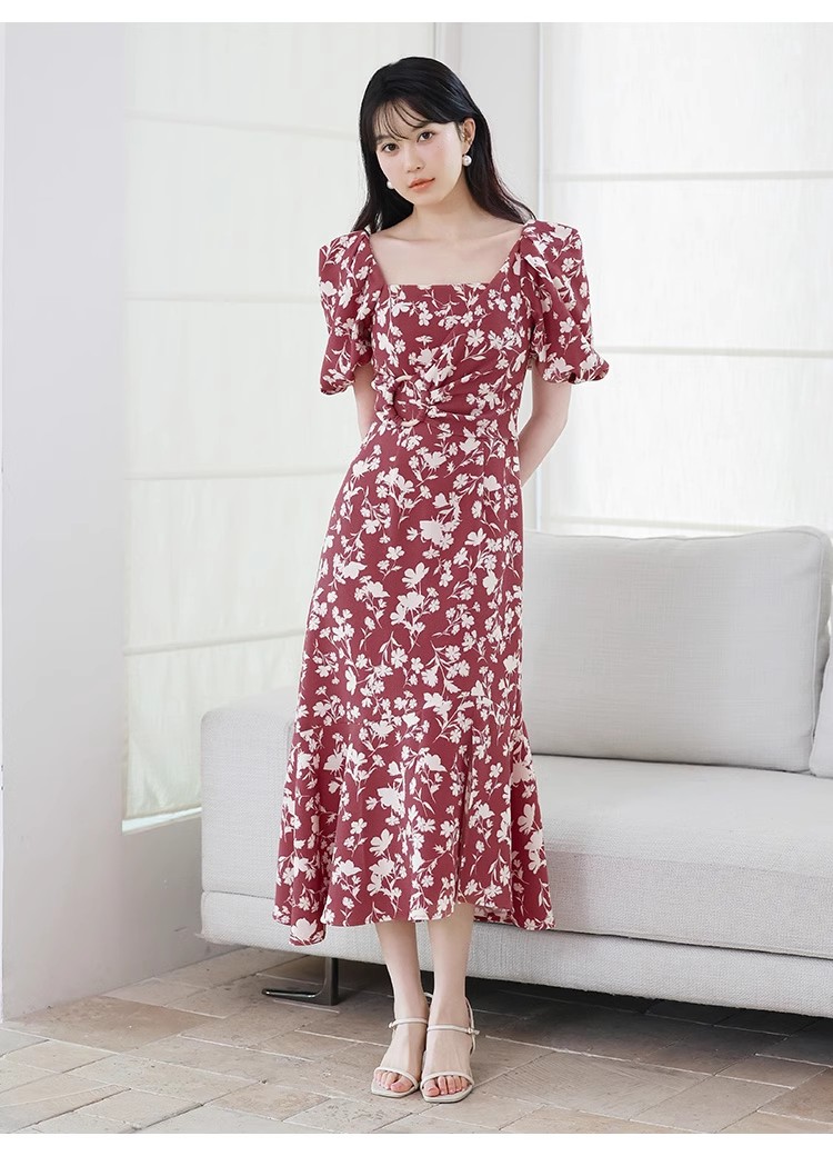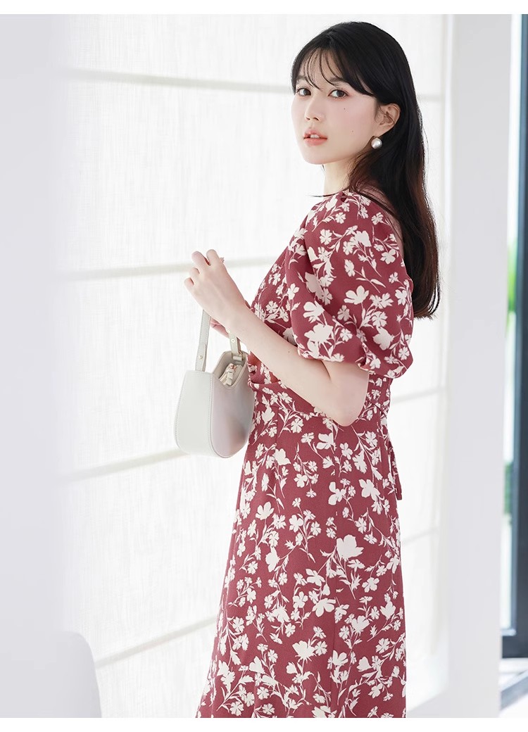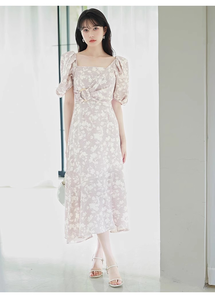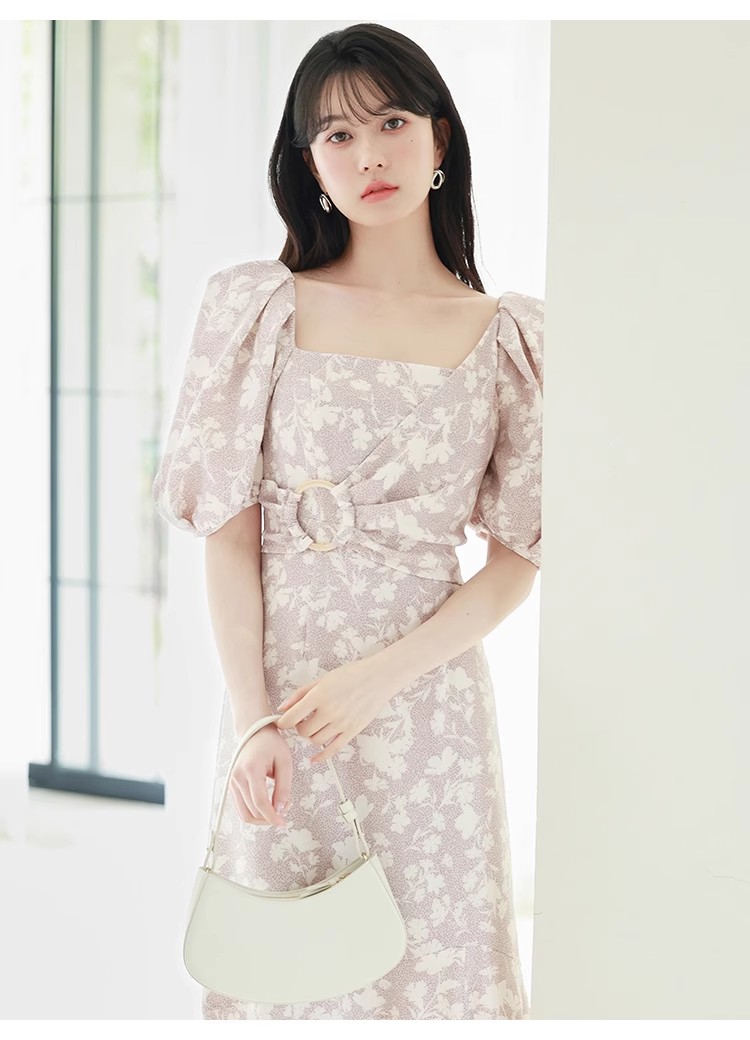 袖フレア刺繍ニットワンピース