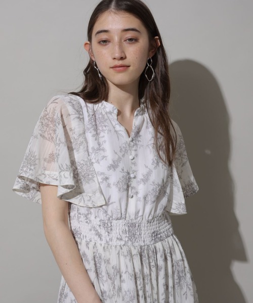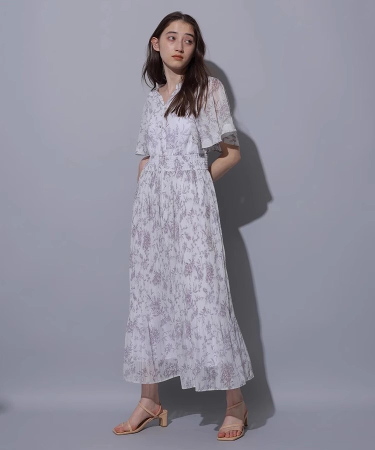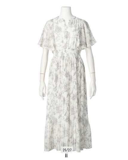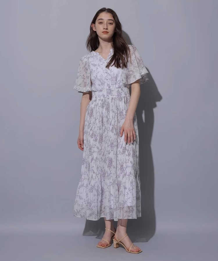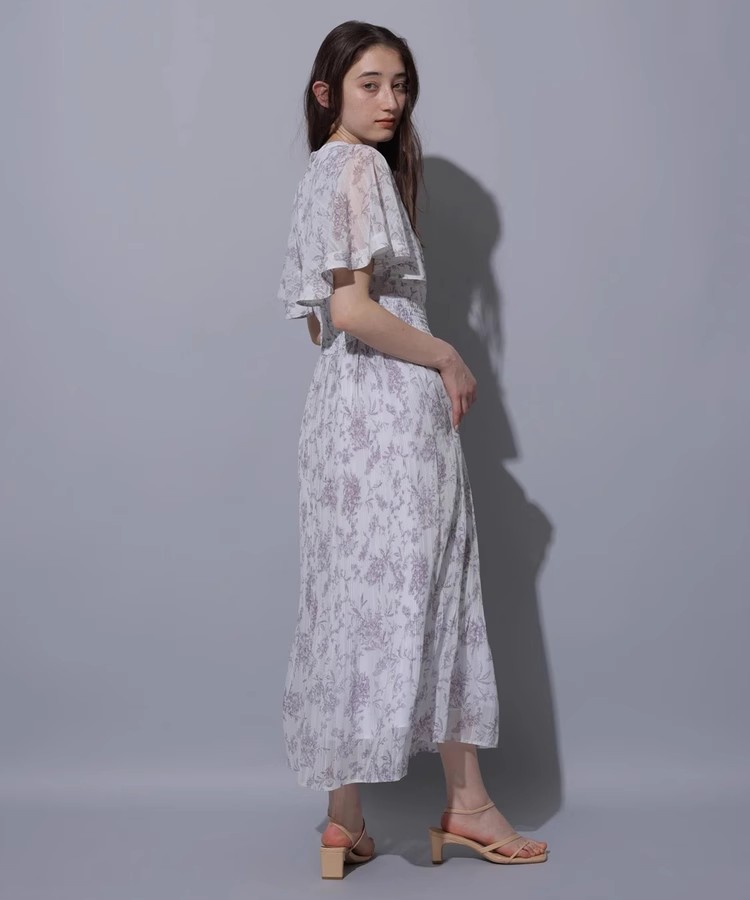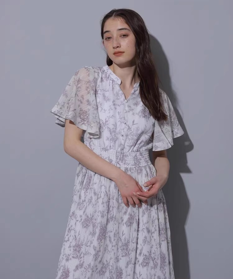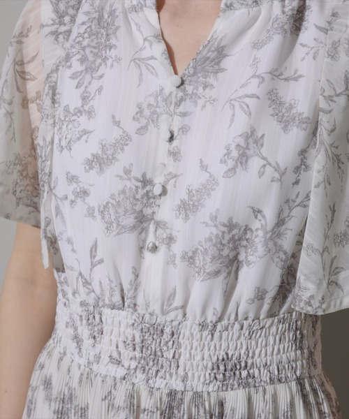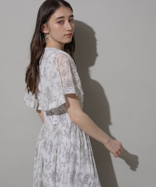 繊細な線画タッチのフラワープリントで、大人レディな印象を演出。グラデーションのような細やかなプリーツディテールもさりげないポイントです。