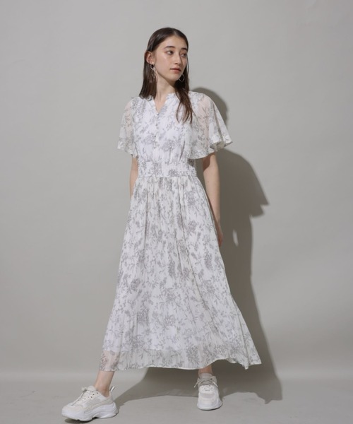 ふんわりとしたケープスリーブがフェミニンさを薫らせるワンピース。