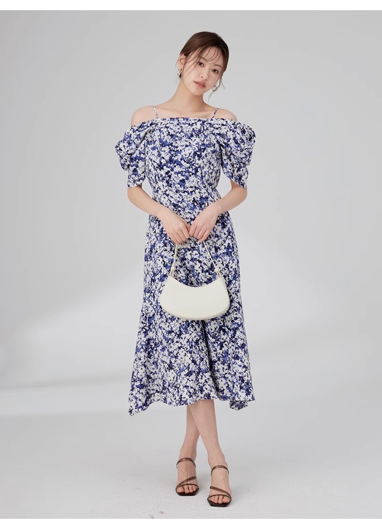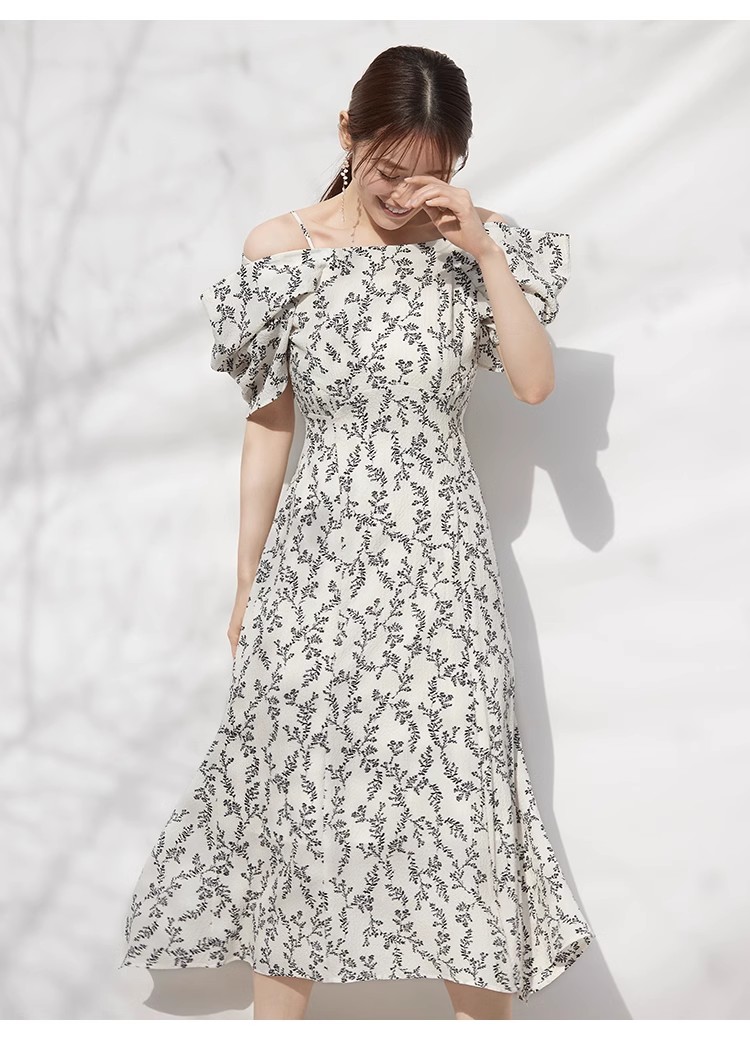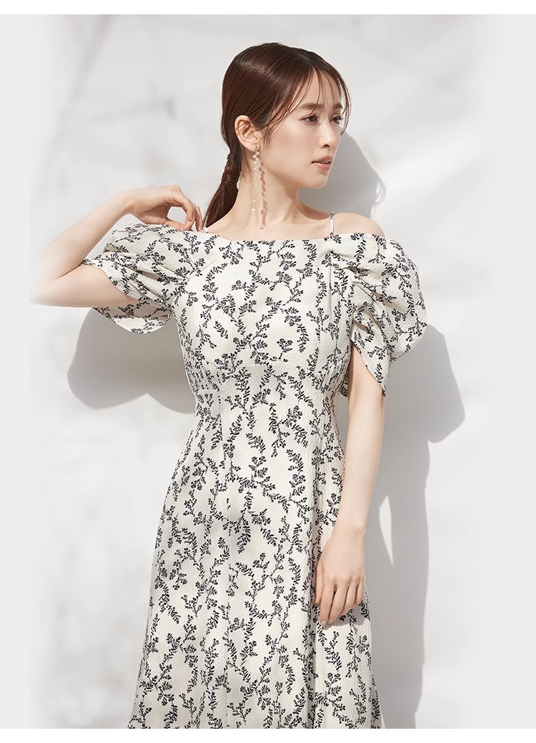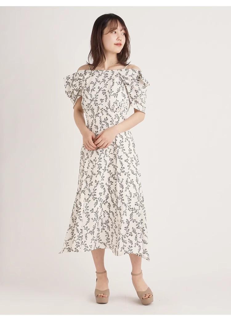 カラーごとに異なるオリジナルのプリントを浮かべた、シーズンムード溢れるワンピース。袖部分は肩に乗せても落としても着用することの出来る2WAY仕様で、スタイリングや気分に合わせて自由にアレンジが楽しめます。ウエストの両サイドにピンタックを入れたり、切り替えでデザインを入れたりと細部にまでこだわったデザインに注目。ハイウエストの位置から裾に向かって緩やかに広がるフレアシルエットは、スタイルアップも叶えてくれます。