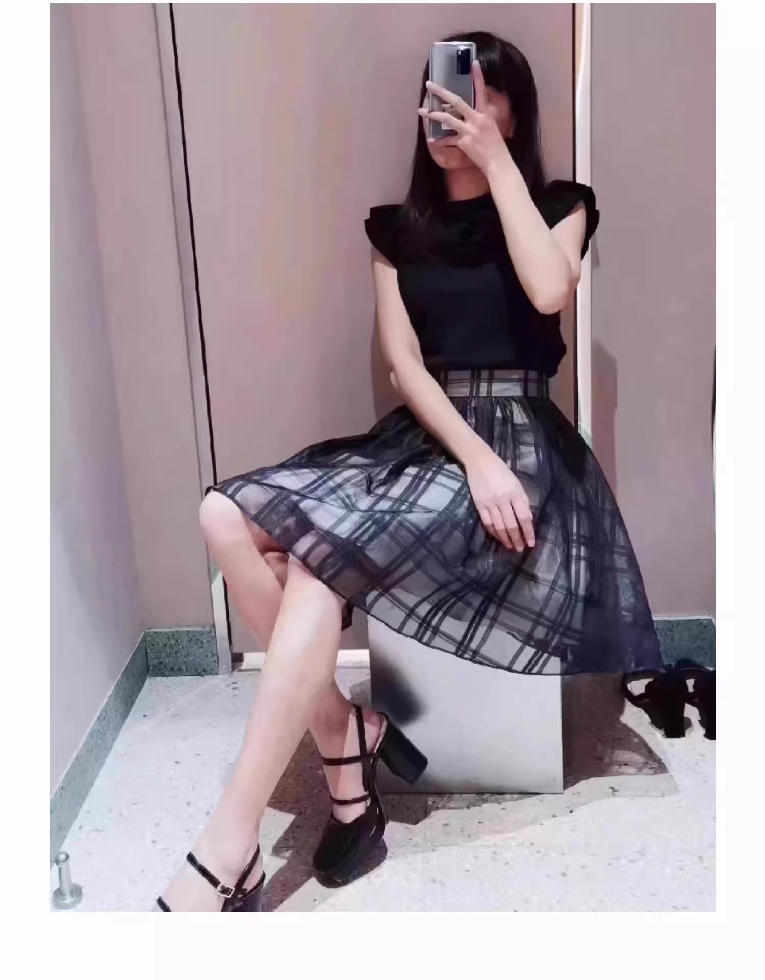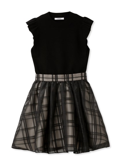 チェックオーガンジーコンビニットワンピース
