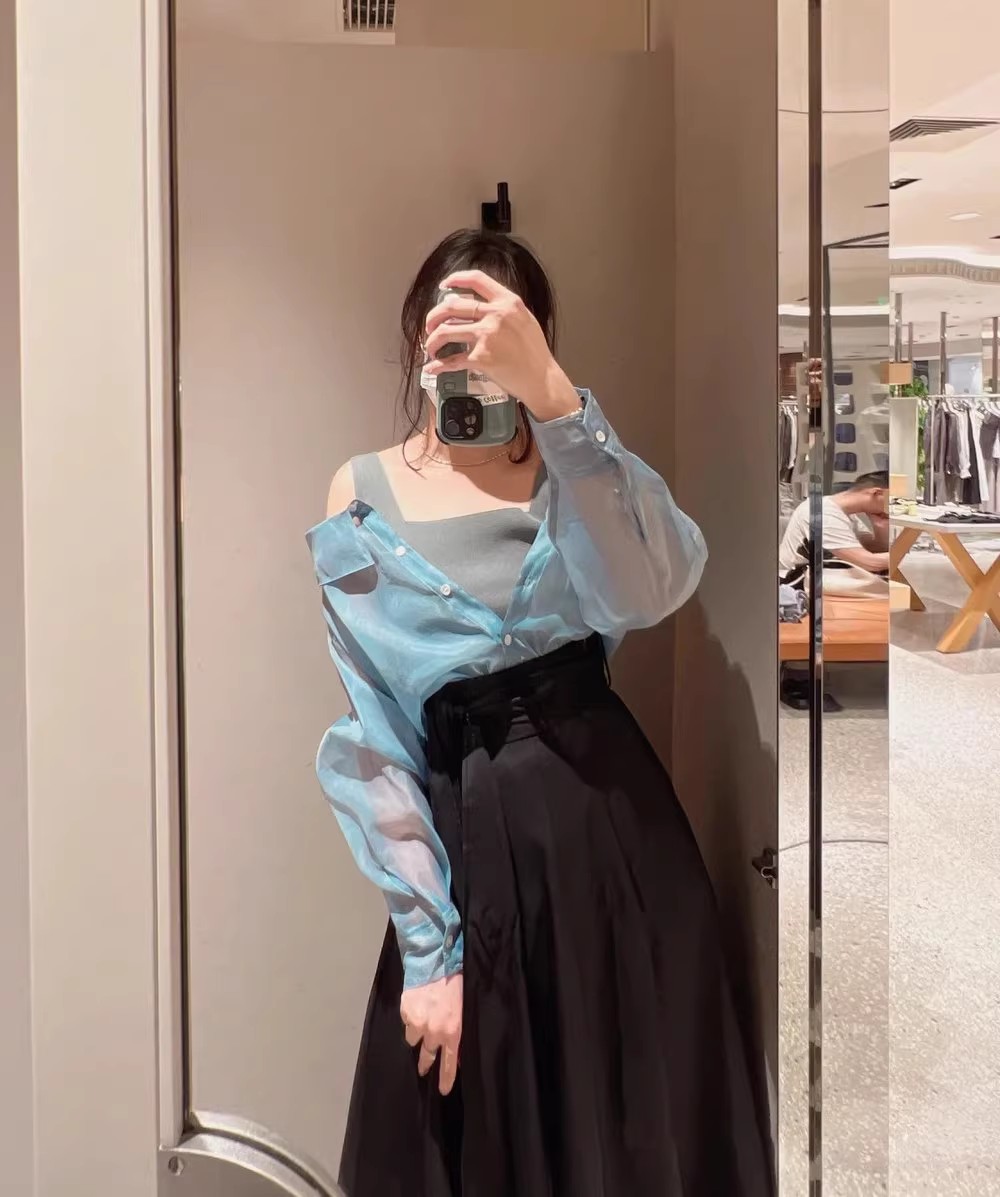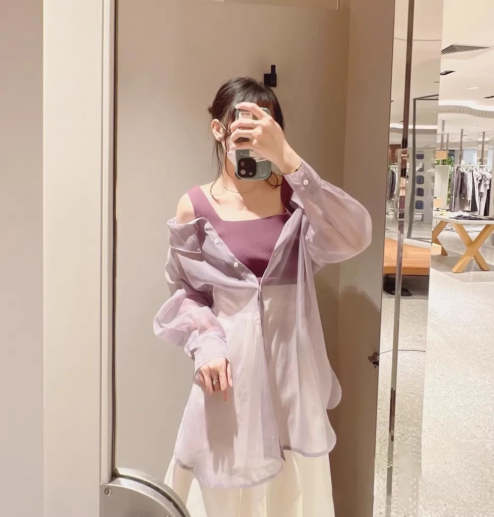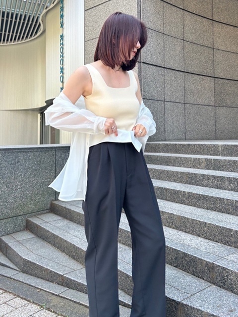 ニットは単品のインナー使いにも、透け感のあるシャツはライトな羽織りとしても着用いただけます。