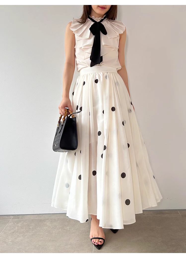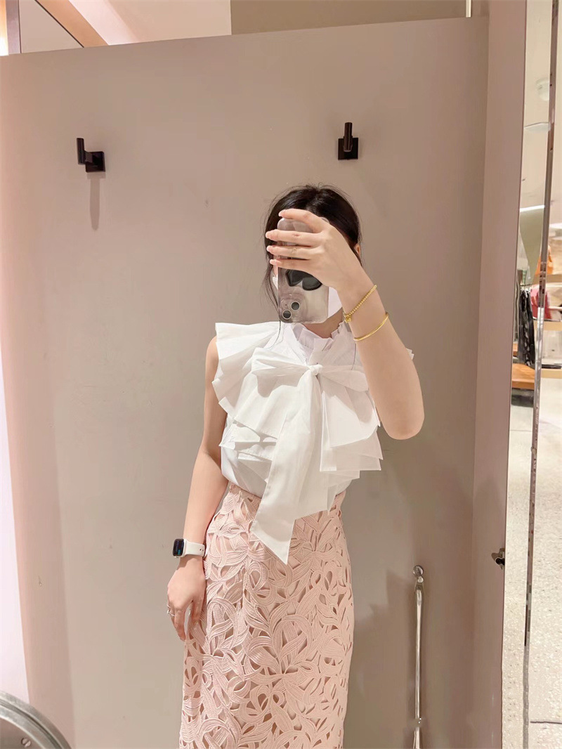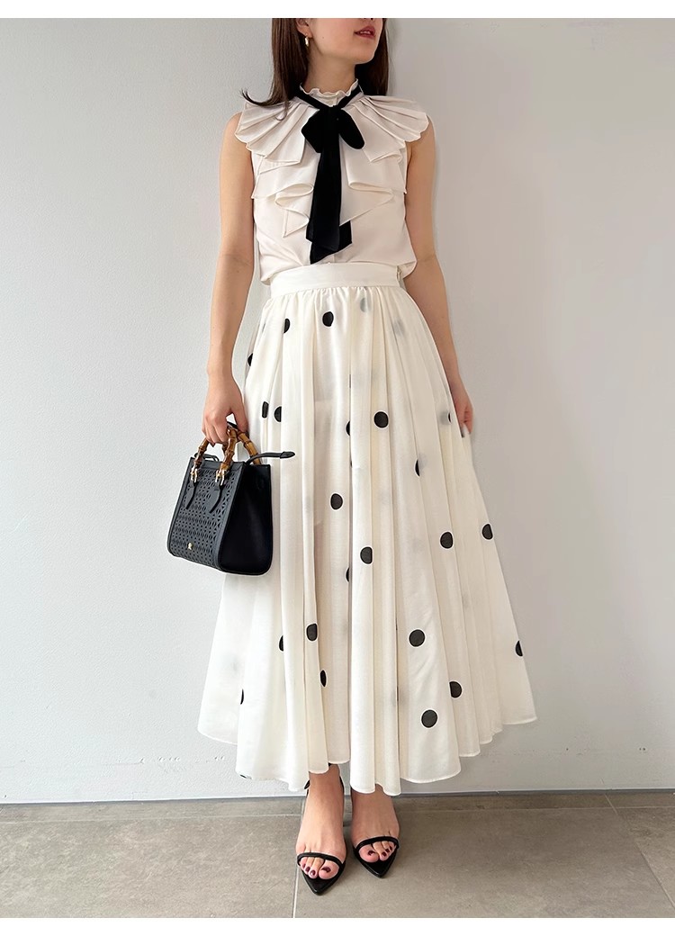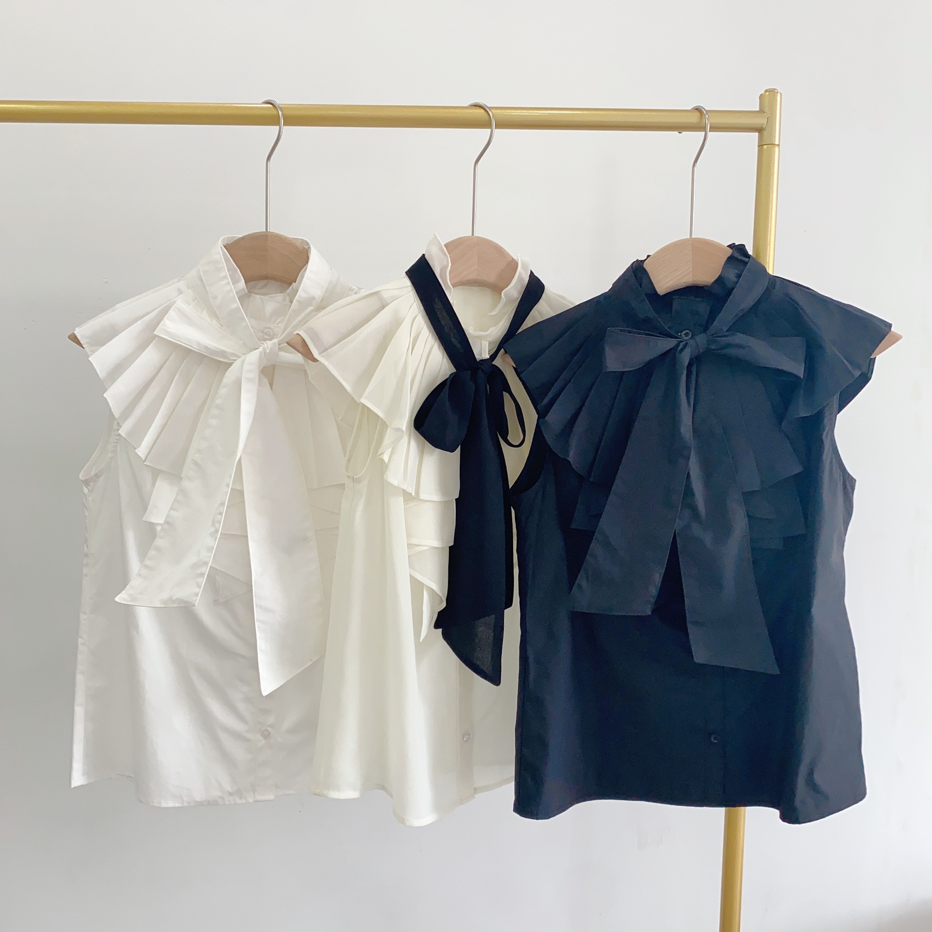 【ボウタイ×フリルの王道フェミニンディテールが光るノースリブラウス】