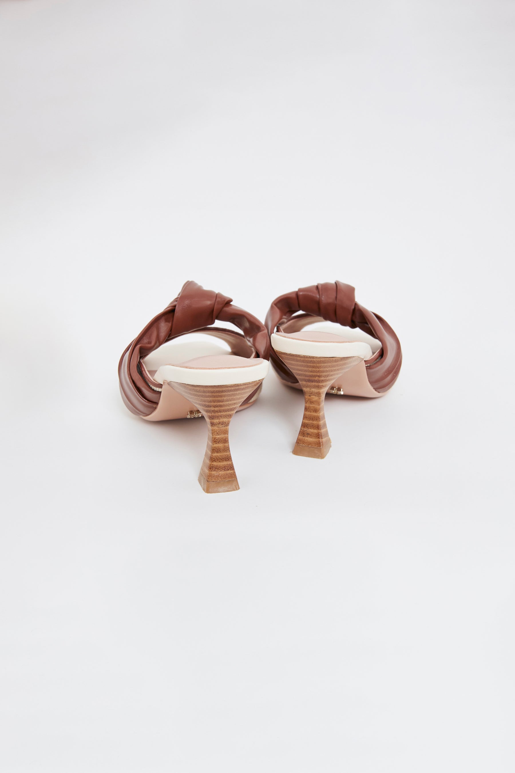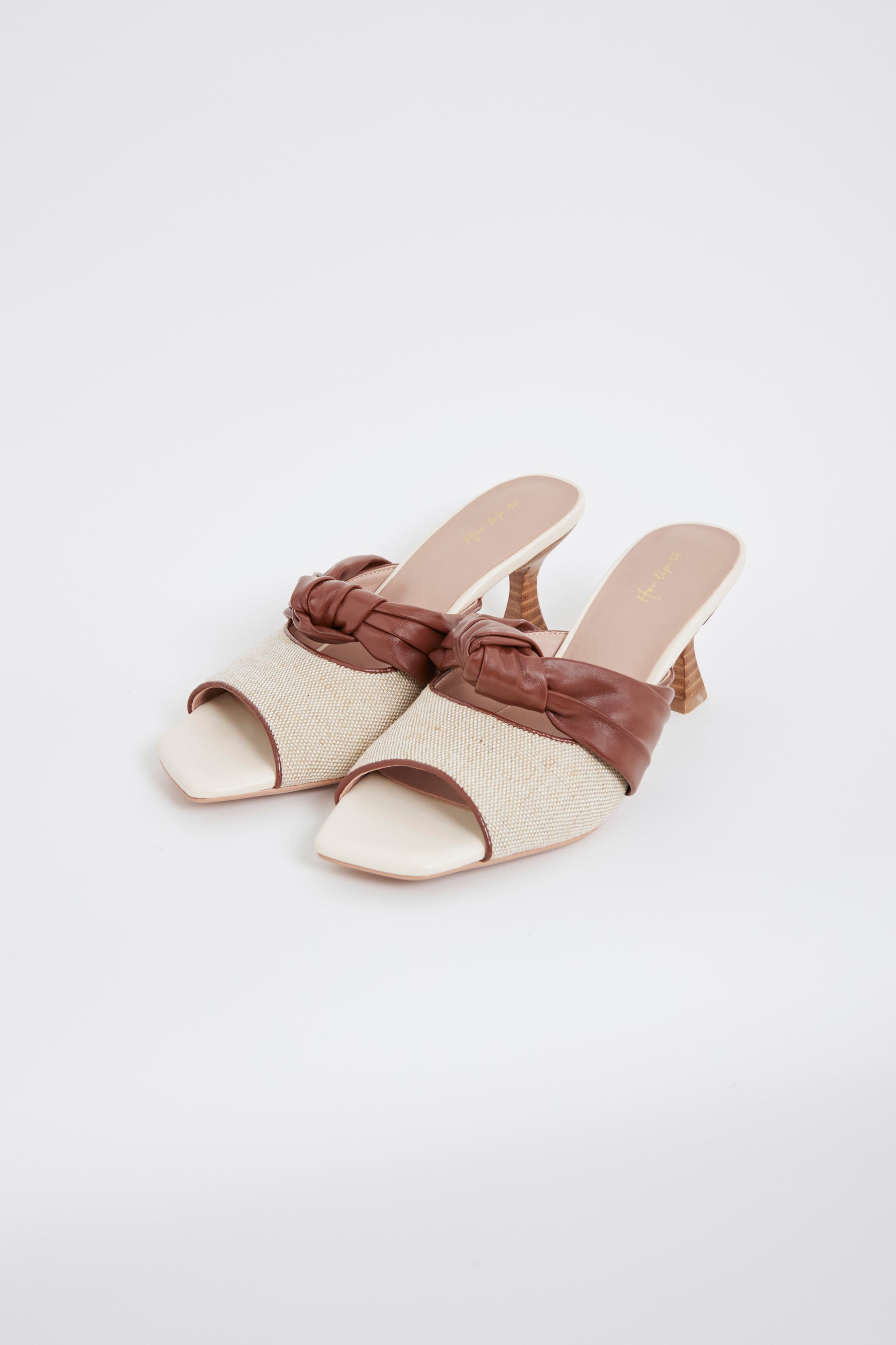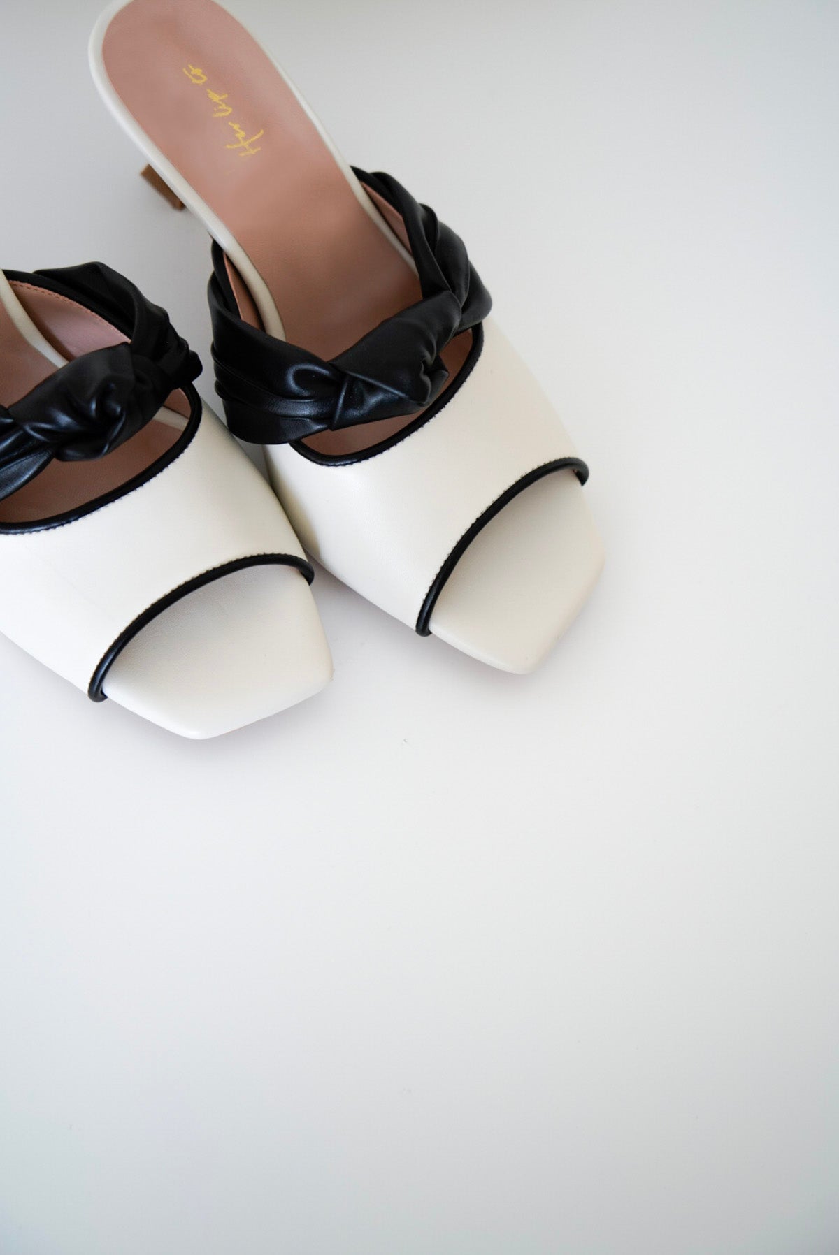 アッパーのツイストデザインが目を惹く大人の気品溢れる一足。