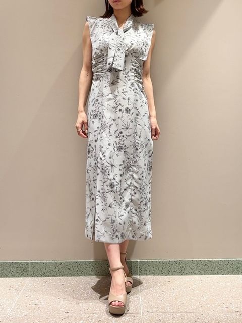 カラーごとに異なる柄を採用したバリエーションプリントのワンピース。存在感のある女性らしいテキスタイルで華やかな装いをお楽しみいただけます。ウエスト脇のギャザーディテールや切り替えラインにこだわり、Iラインを強調したシルエットでスタイルアップを実現。体のラインを拾いにくい生地で裏地も備えているので、安心して着用いただけます。バックの紐リボンでウエストのフィット具合を調整可能。