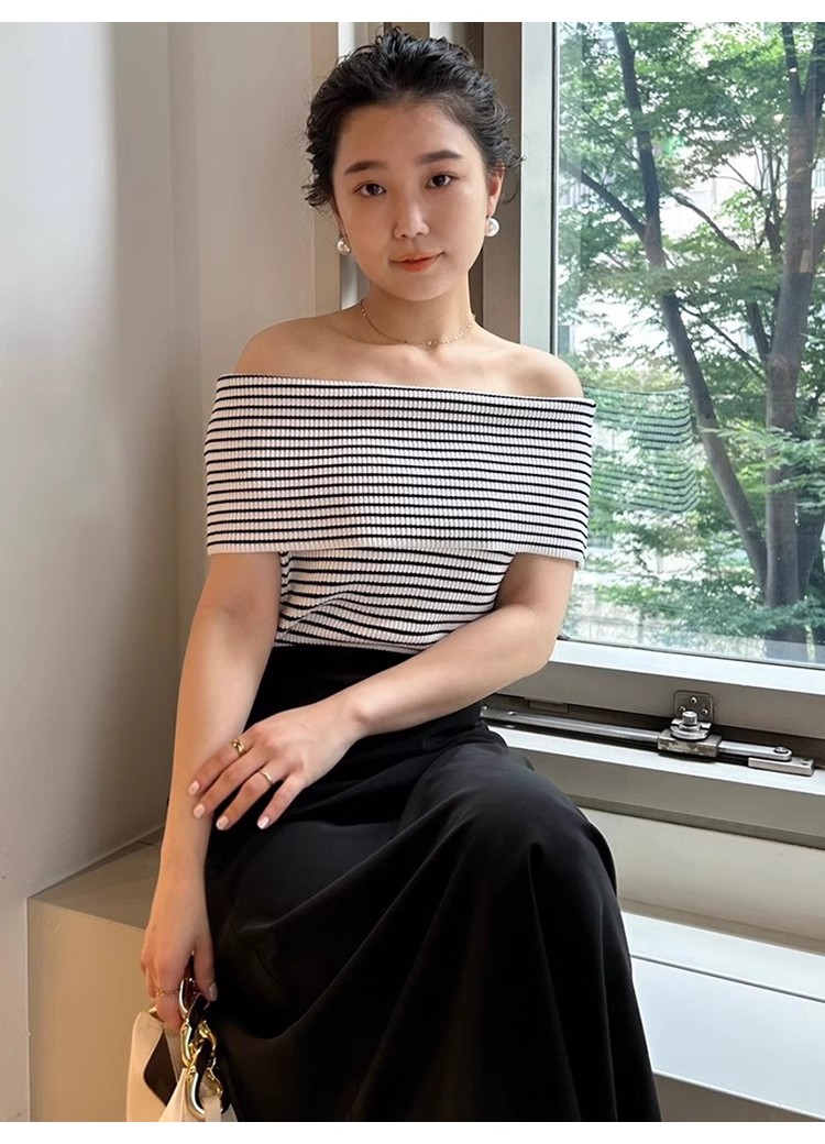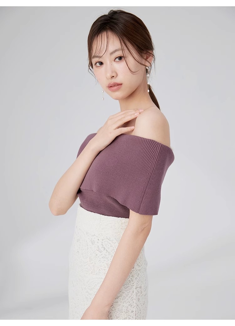 【女性らしい肌見せを叶えるオフショルデザインのニットプルオーバー】