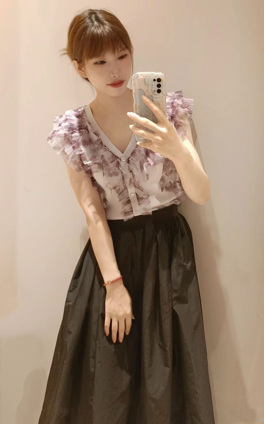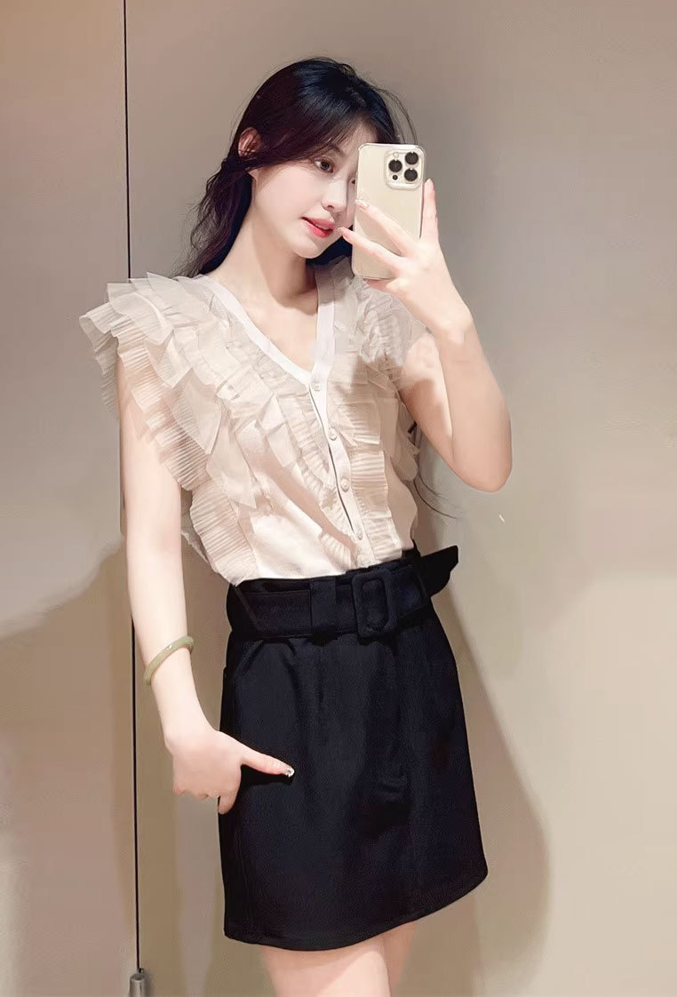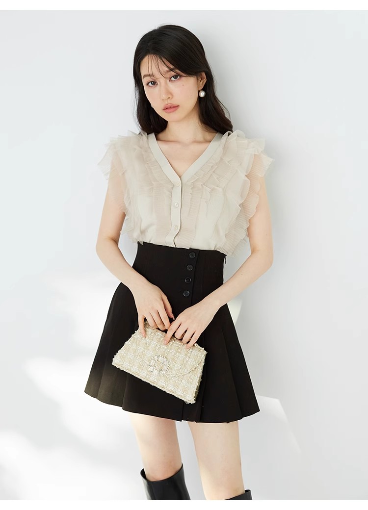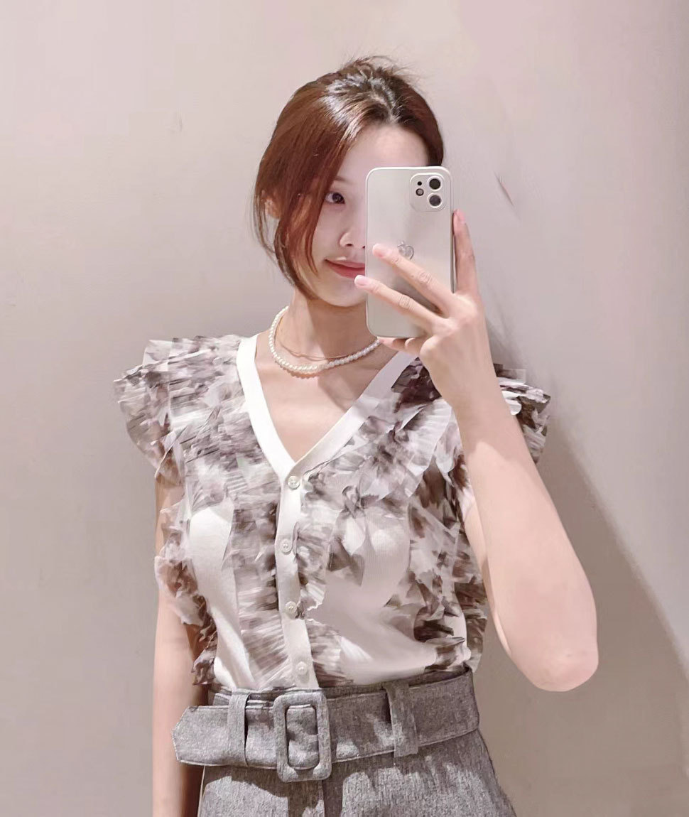 綺麗めな質感のニットにチュールフリルをドッキングしました。淡い色合いで女性らしさ高まるピンクベージュ、ベージュ、ラベンダーの3色展開でお届けします。