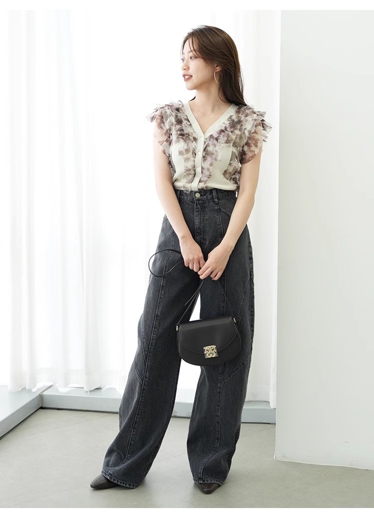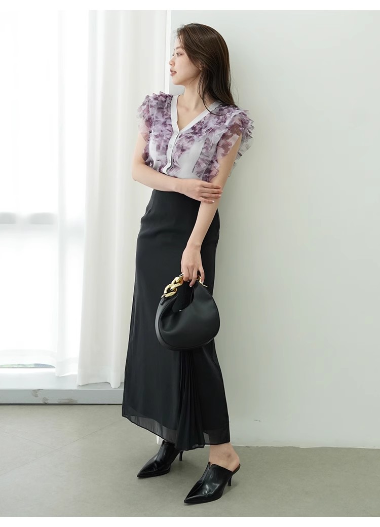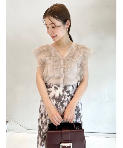 「SNIDEL」定番人気のチュールニットプルオーバーが今季も登場。オリジナル柄を入れることで新鮮な1枚に仕上げました。トレンドライクになるようにこだわったフリルの入れ方もポイント。コンパクトなシルエットなので合わせるボトムを選ばず、幅広いスタイリングに活躍してくれます。