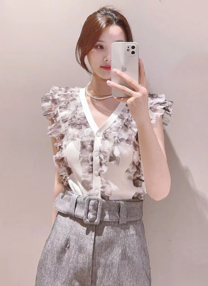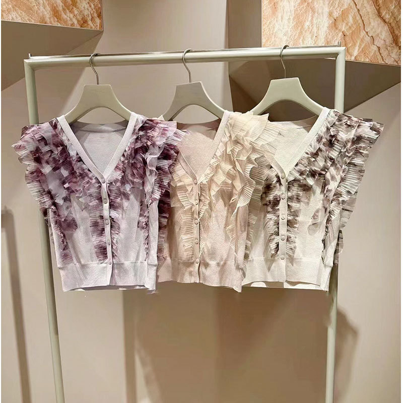 【女性らしい華やかなデザインが人気のチュールニットトップス】