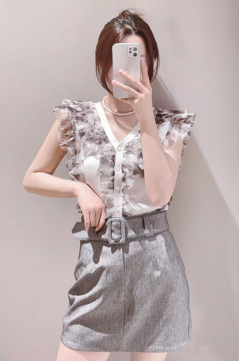 チュールフリルノースリニットプルオーバー