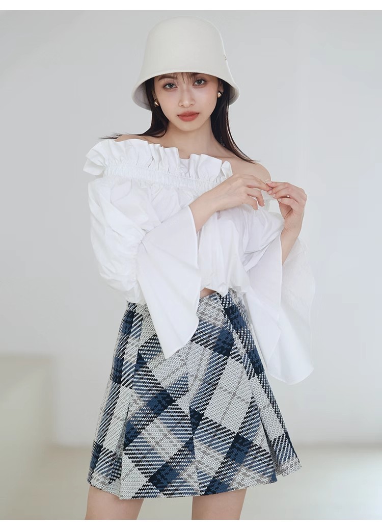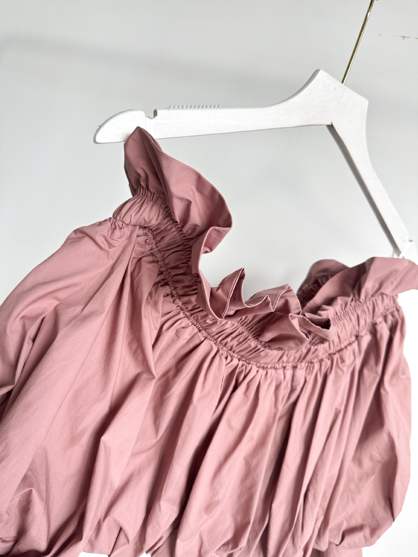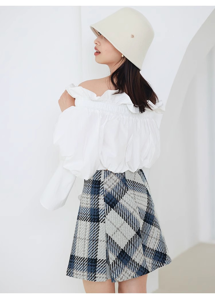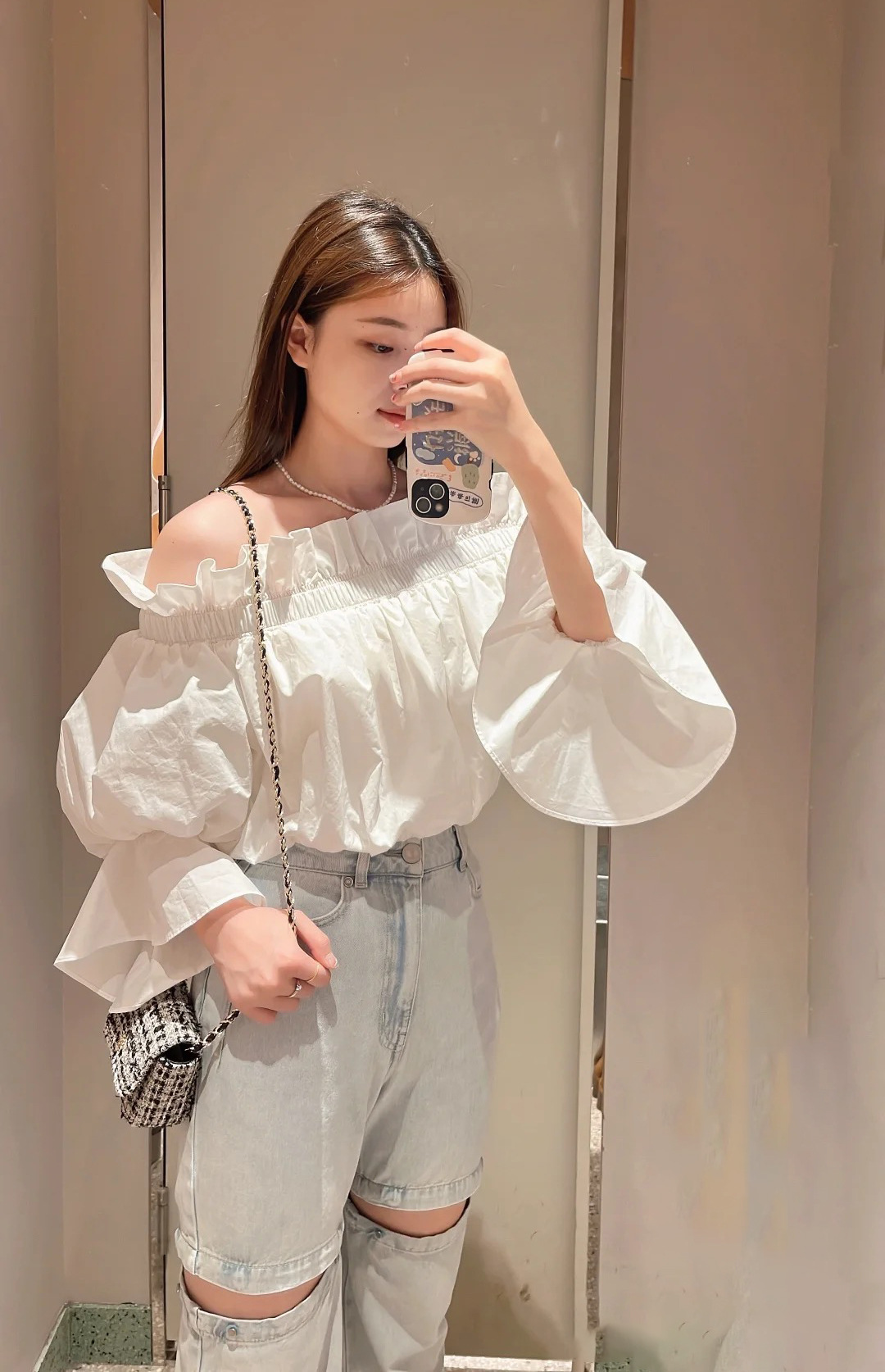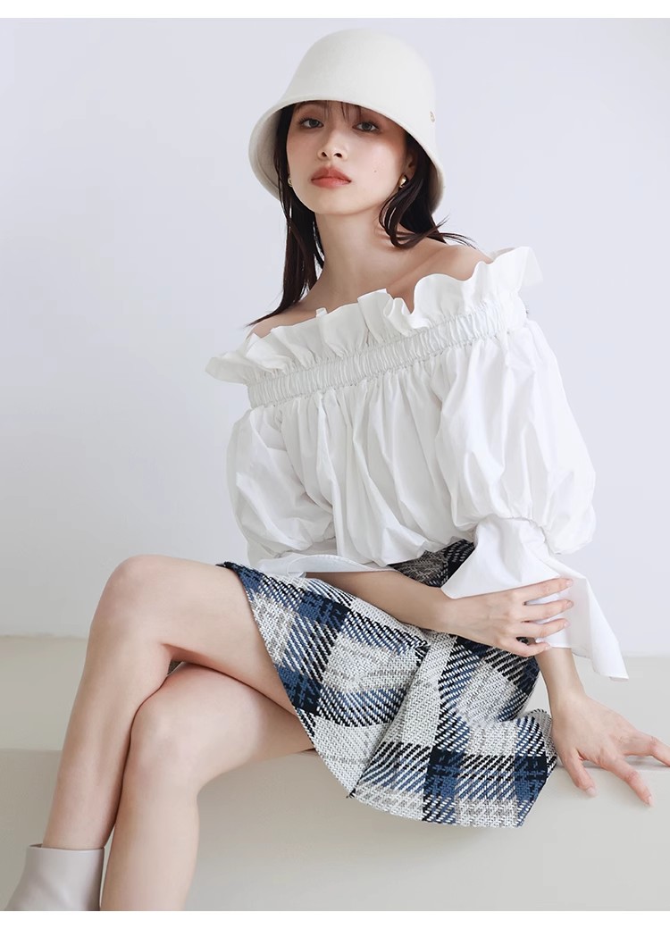 前シーズンに続きトレンド継続中のクロップド丈ブラウス。ふんわりとしたバルーンシルエットの程よいボリューム感がウエスト周りを華奢に見せてくれます。袖のフレアデザインも前後差を付けることにより華やかながらも重たい印象に見えるのを防ぎました。レディライクなアイテムにはもちろん、カジュアルなボトムなどと合わせたMIXスタイルもおすすめです。