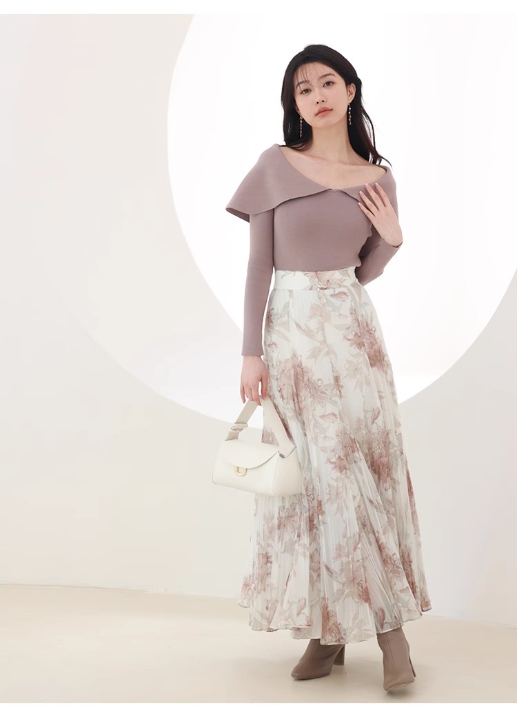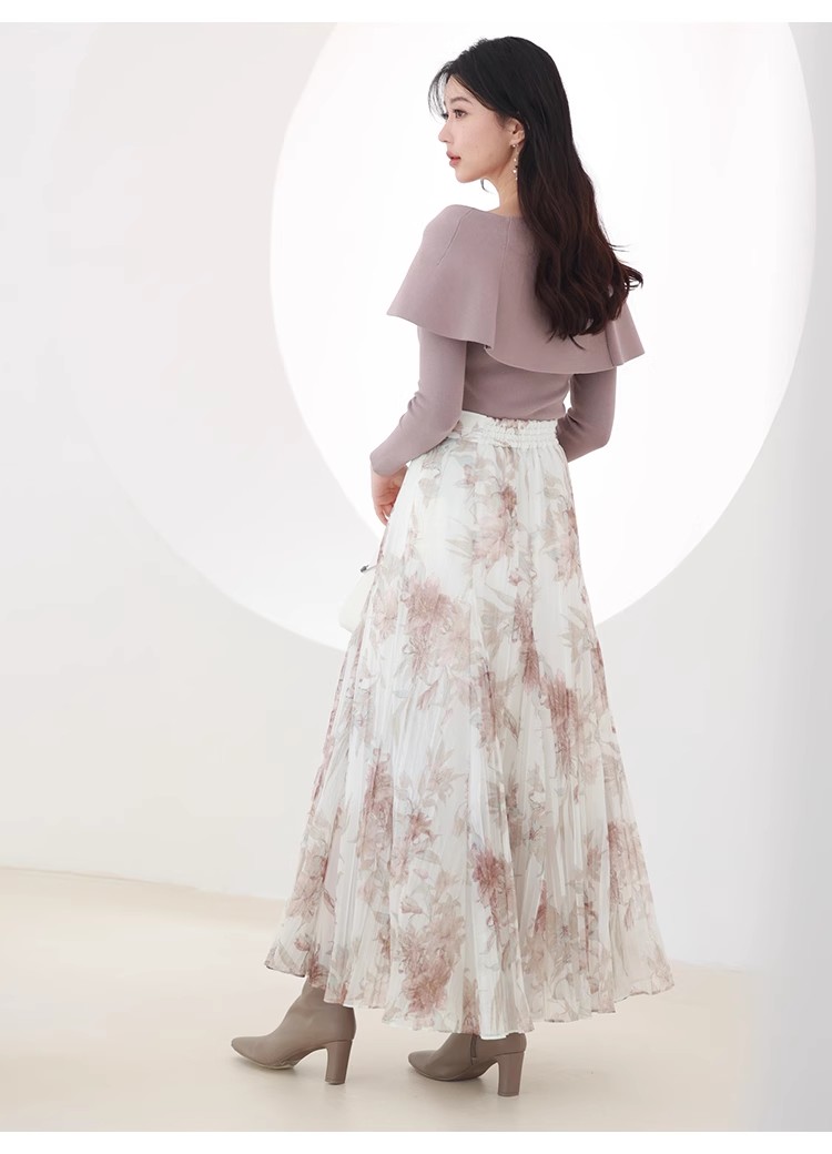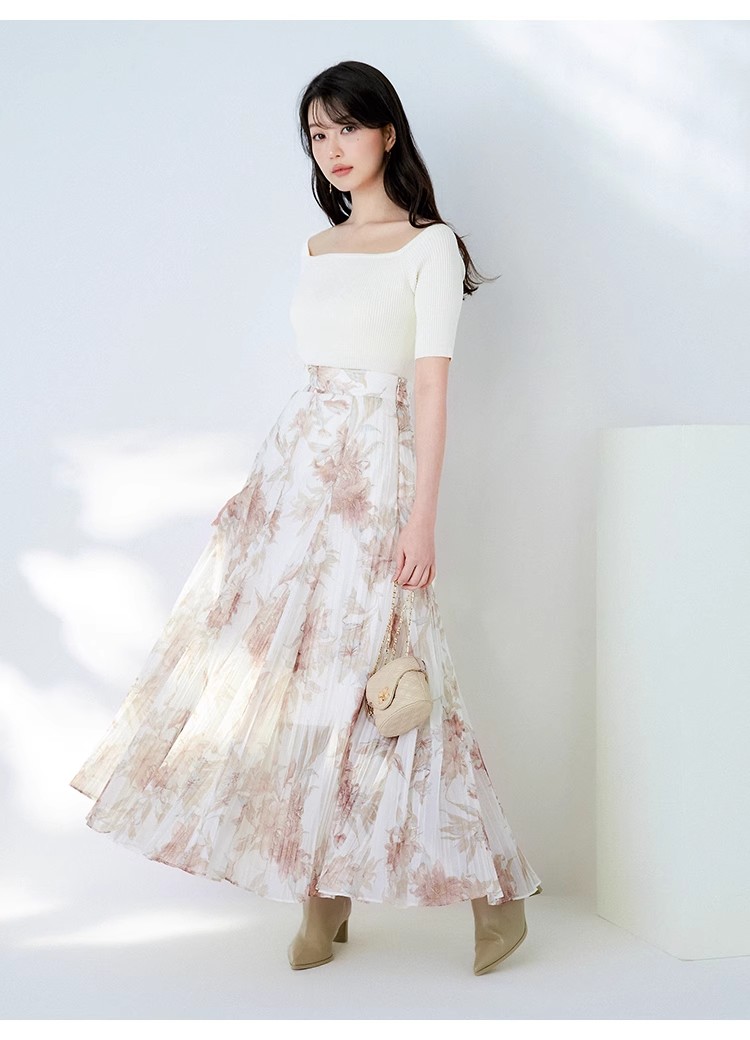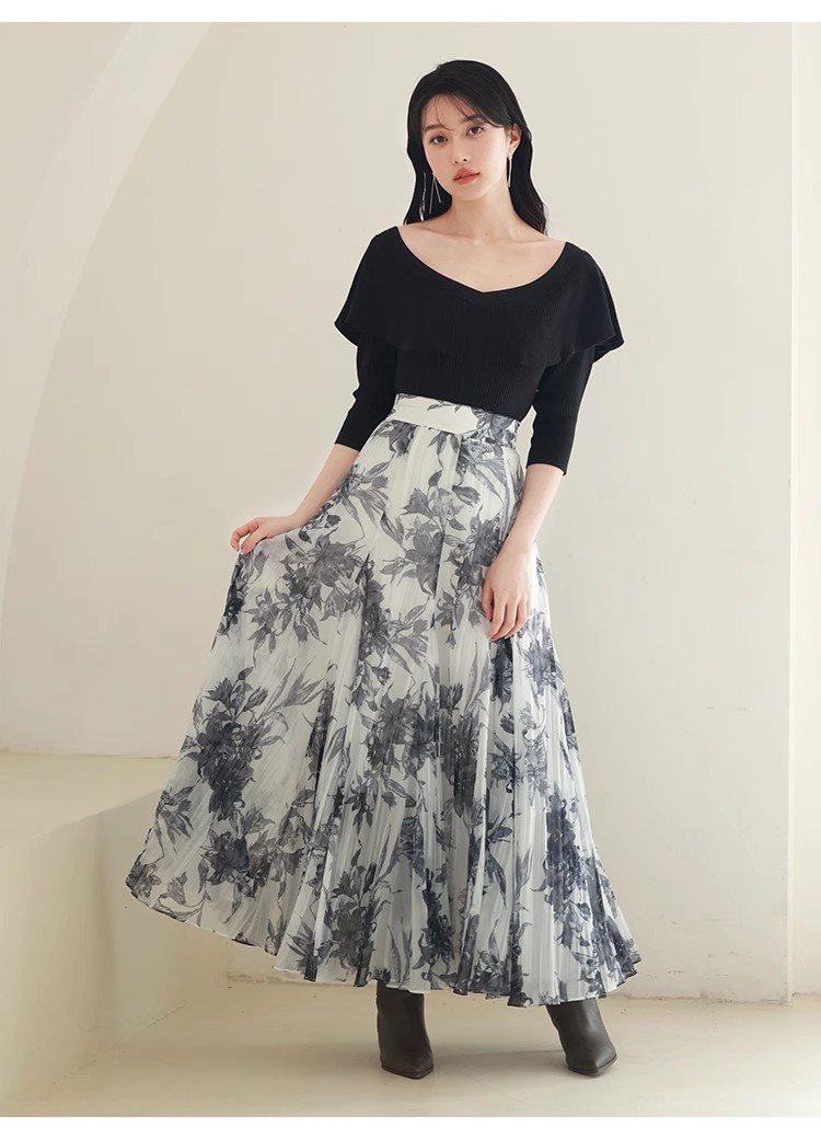 【ドラマティックなフレアラインで華やかに見せるスカート】
