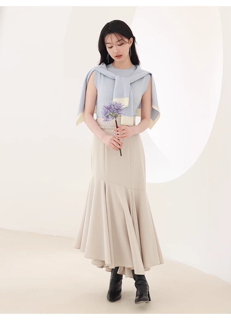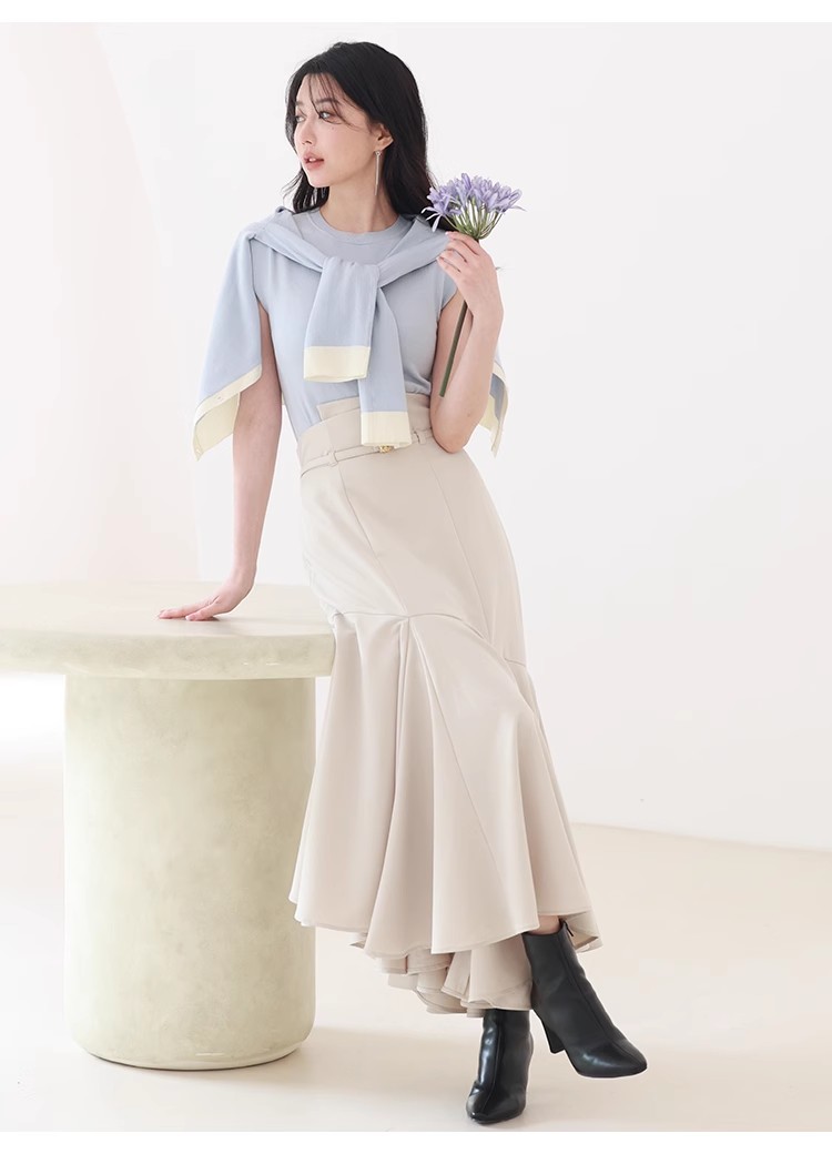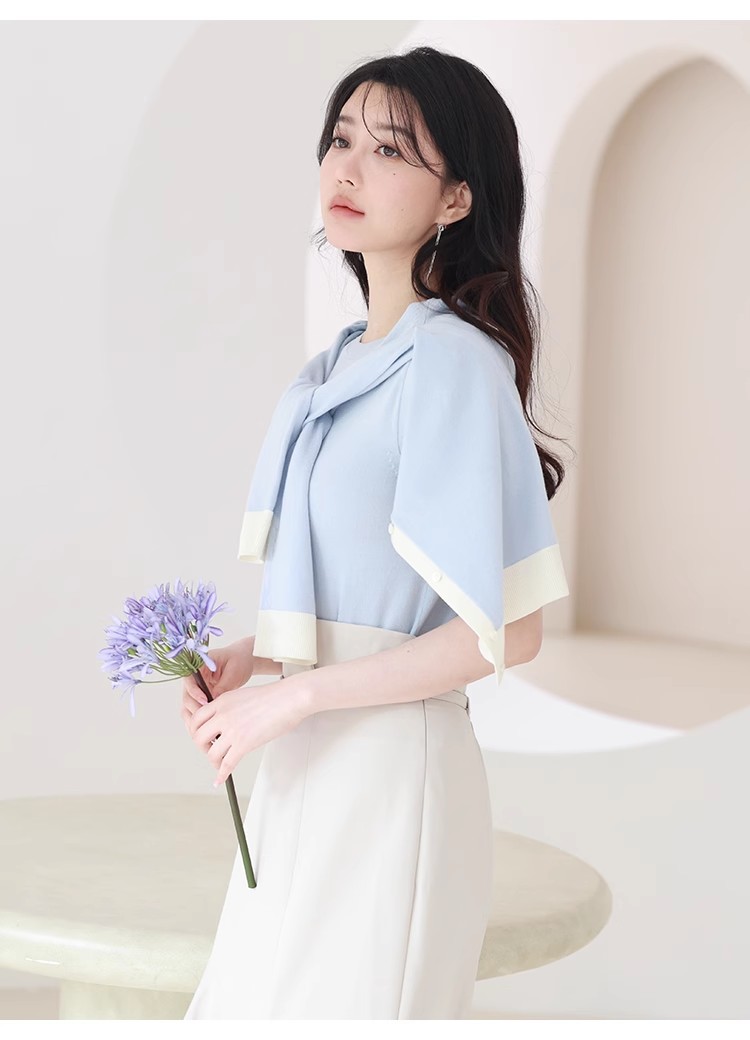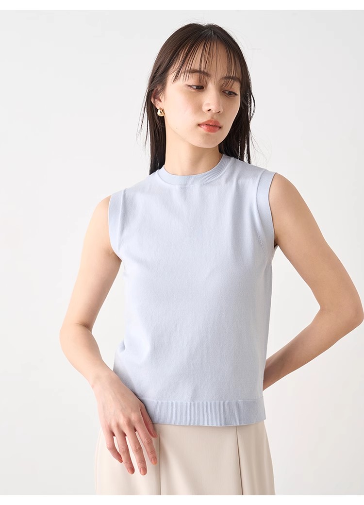 シルク混で柔らかく綺麗な質感のニット素材を使用。モード感のあるホワイトとブラック、清潔感のある爽やかな色味のサックスの3色展開でお届けします。