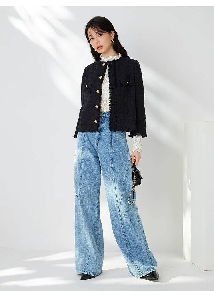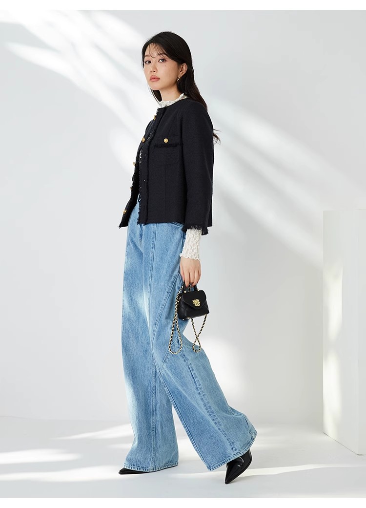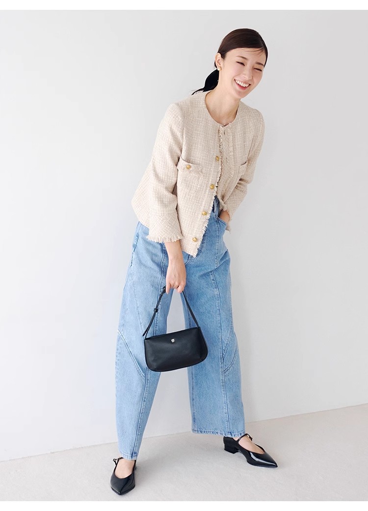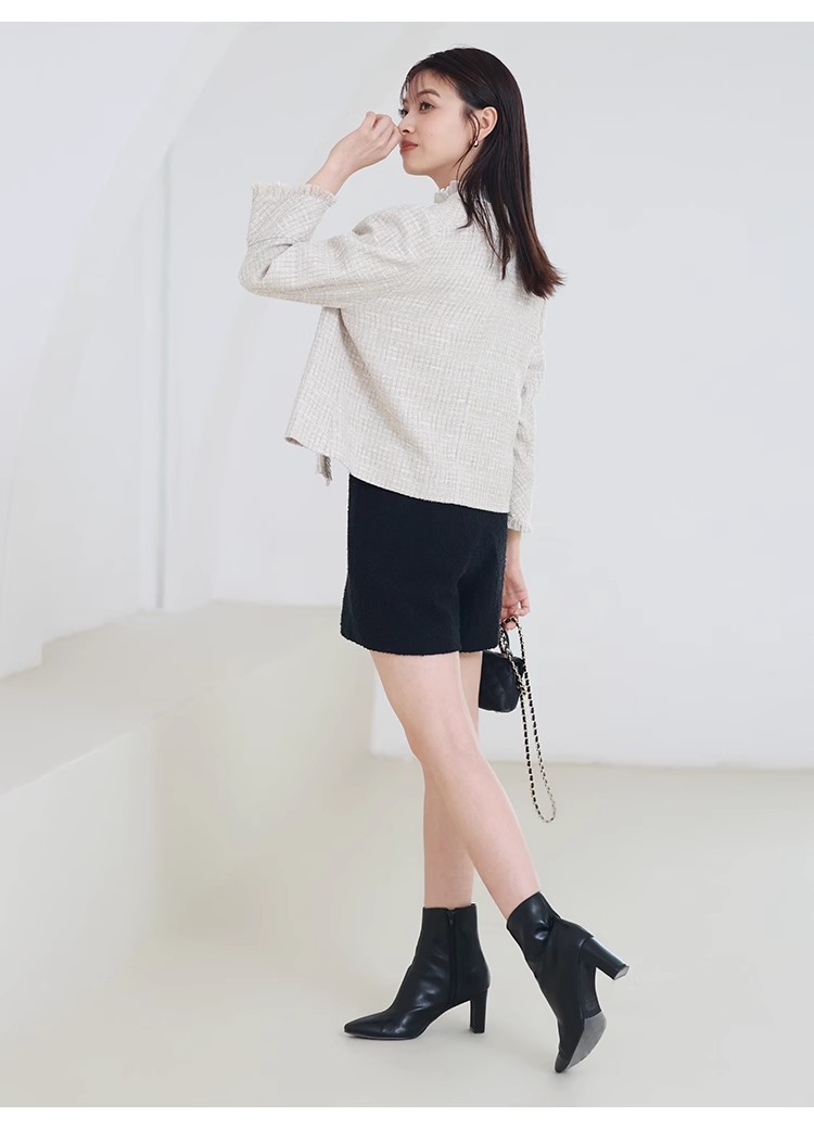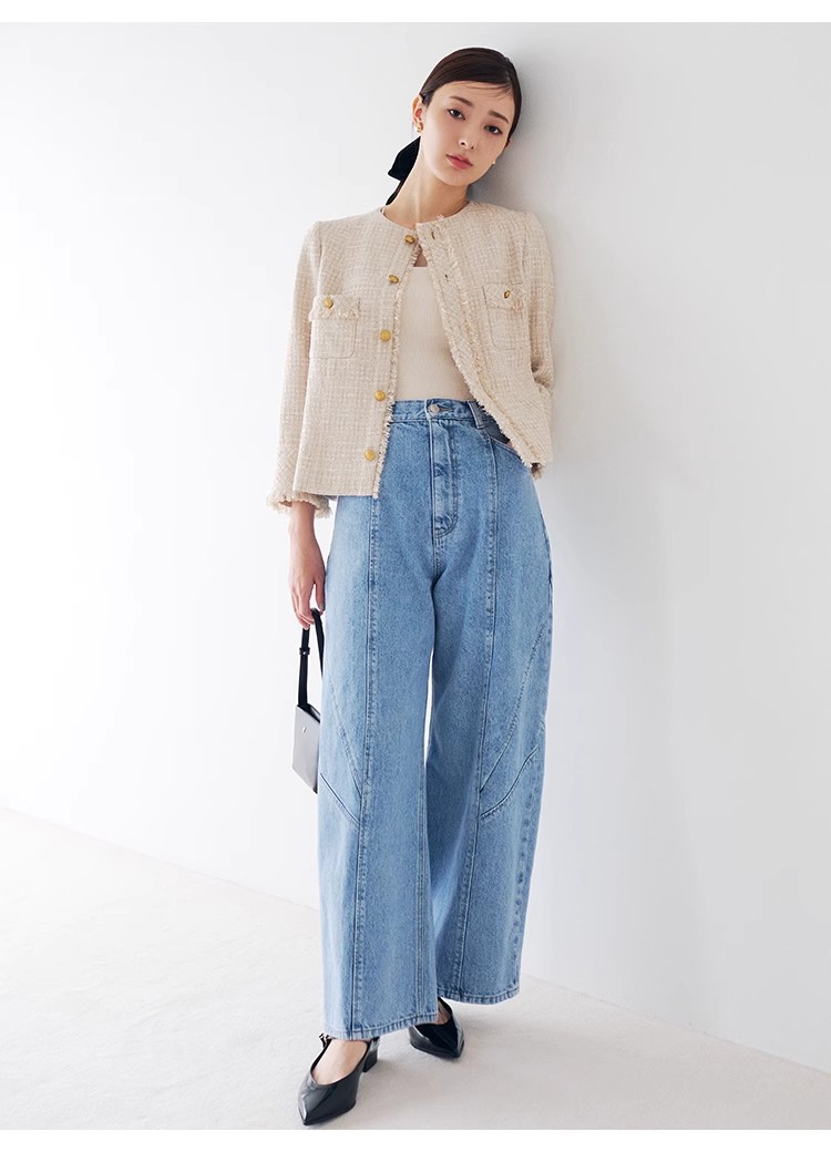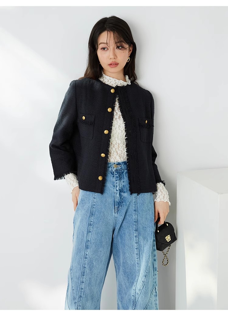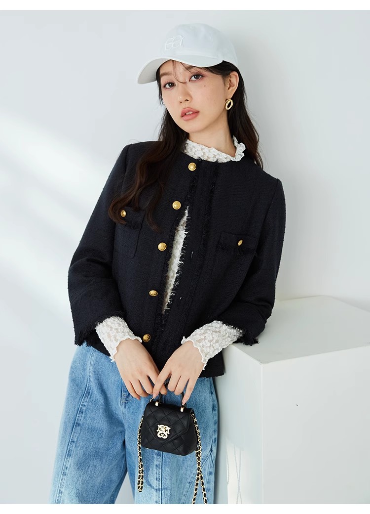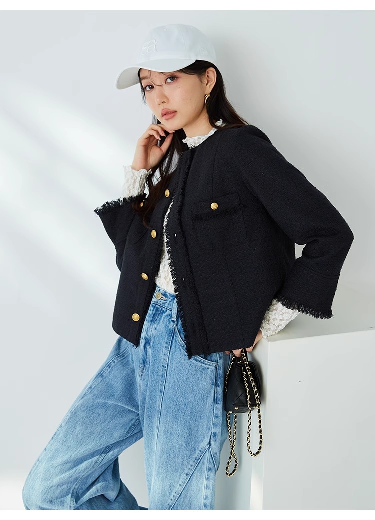 様々なシーンで活躍するクラシックなツイードジャケット。細部にフリンジを使うことで華やかさをプラス。色ごとに異なる素材を使用し、バリエーションでご用意いたしました。すっきりとしたシンプルなシルエットが好印象。パンツともスカートとも、ワンピースなどにも合わせやすく、幅広いスタイリングに重宝します。