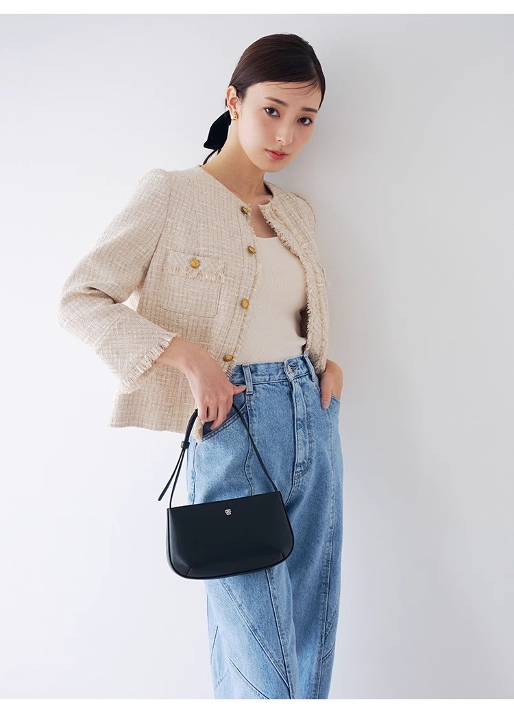 所々に目を引くラメ糸を使い、ベーシックを保ちながら立体的な生地感が高級に感じるブラック、made in Japanならではの柔らかく繊細なクオリティのベージュ、黒やシルバーの糸を織り交ぜ、華やかながらコーディネートしやすい色味に仕上げたピンクの3色展開です。