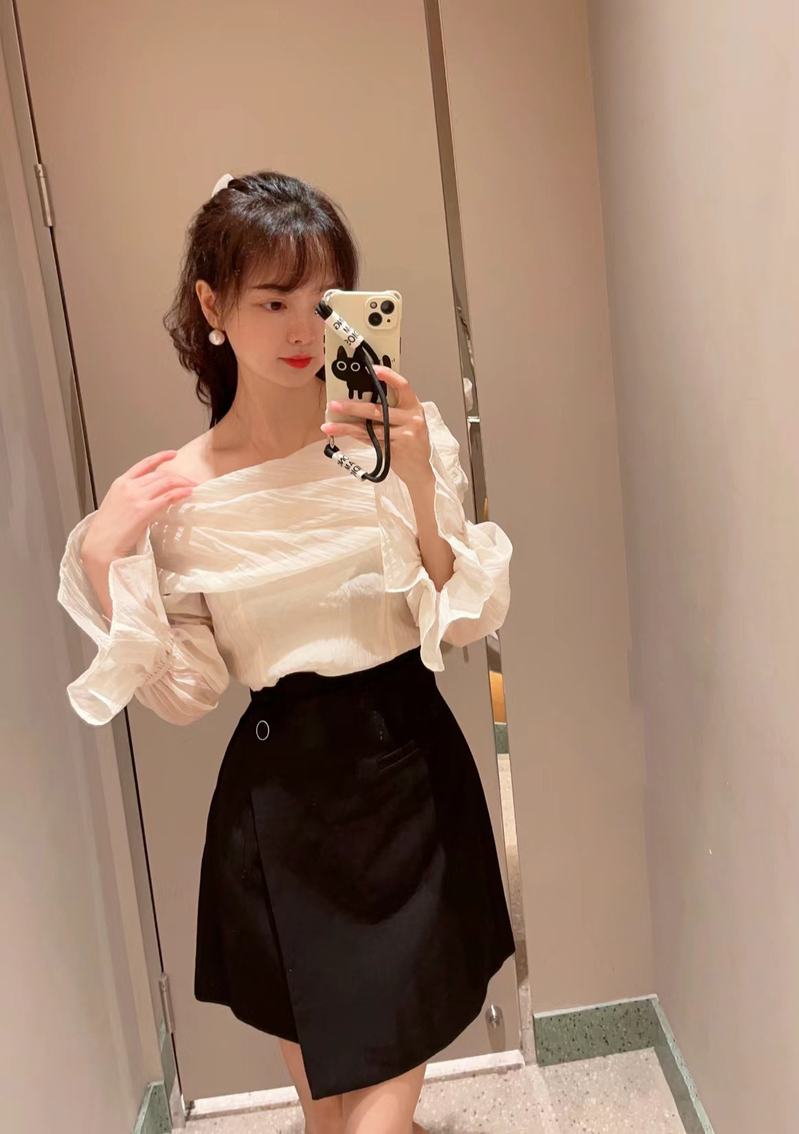 【ラップ風のディテールで個性をプラスしたミニスカート】