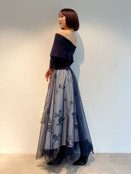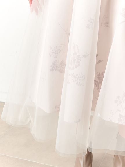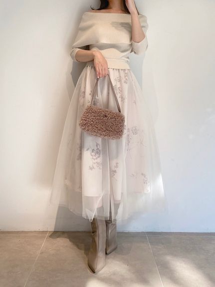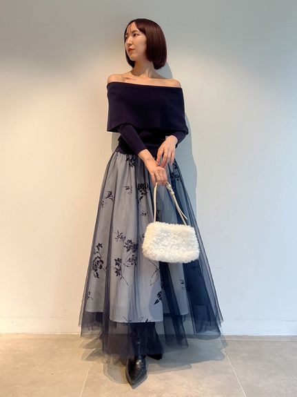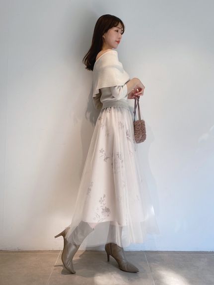 スカート部分はソフトチュールとハードチュールを重ね、ふんわりとしたボリューム感をだしつつも着膨れしないサイズ感にしてます。