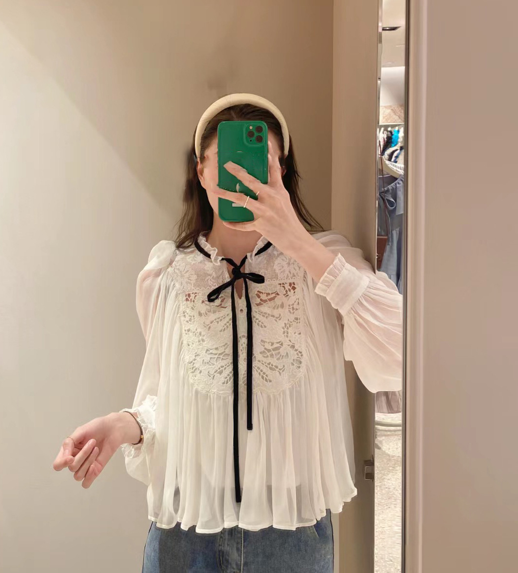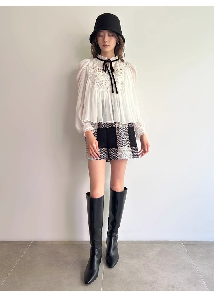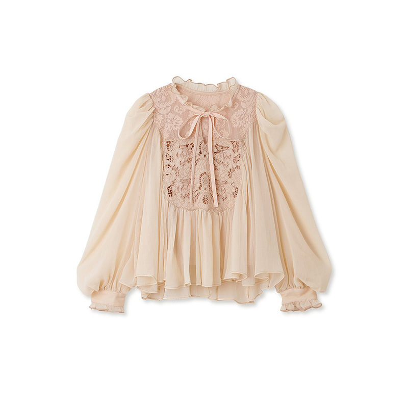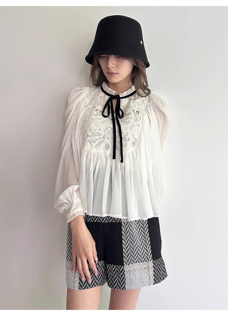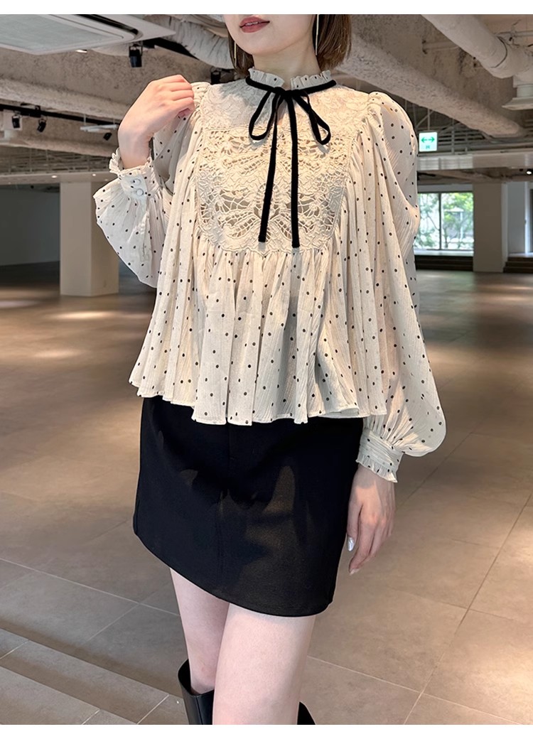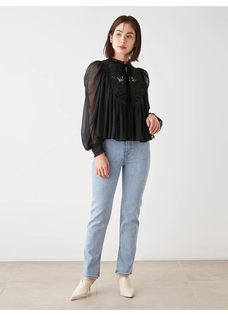【贅沢なレース使いが目を引く王道フェミニンなブラウス】