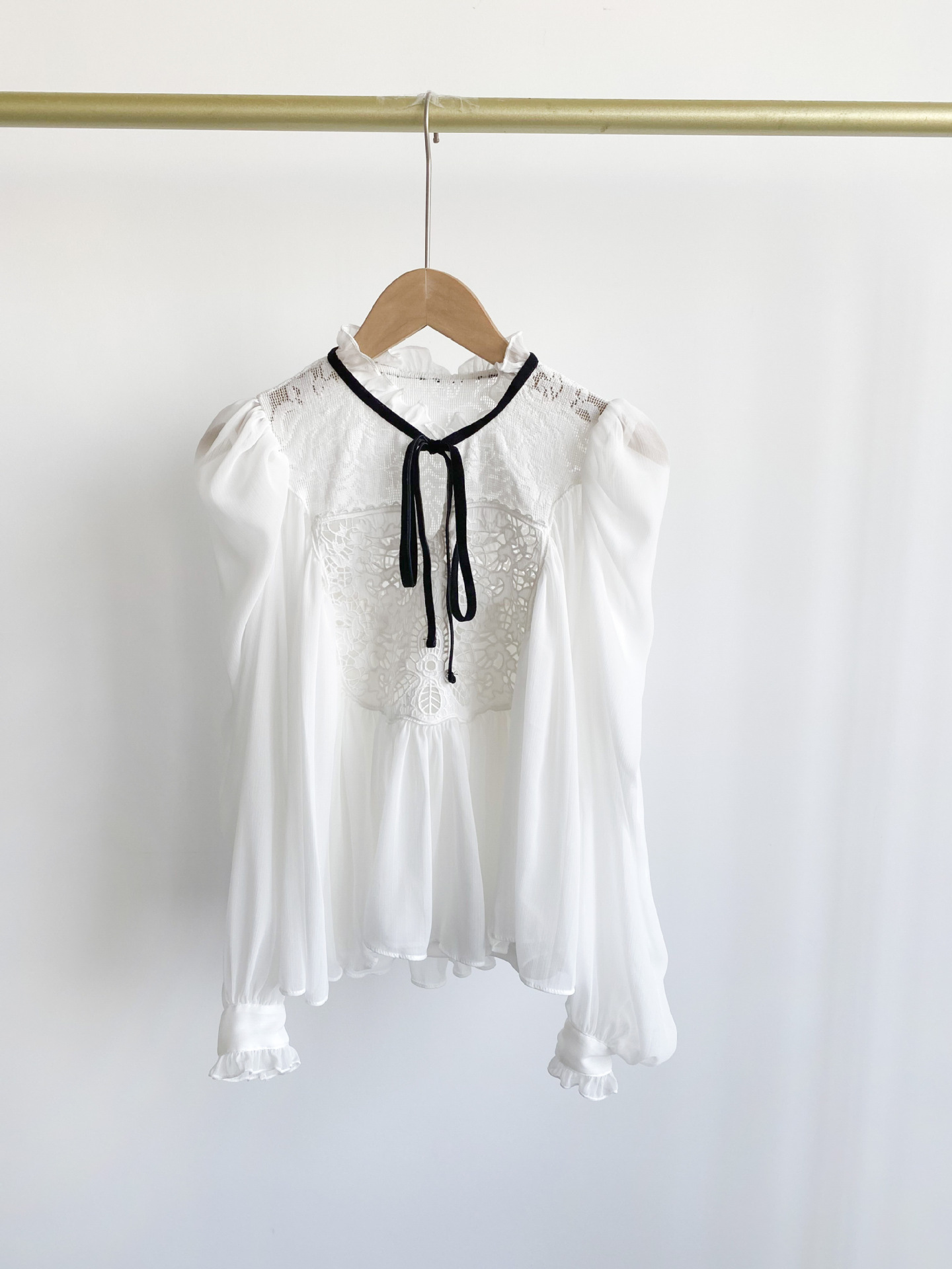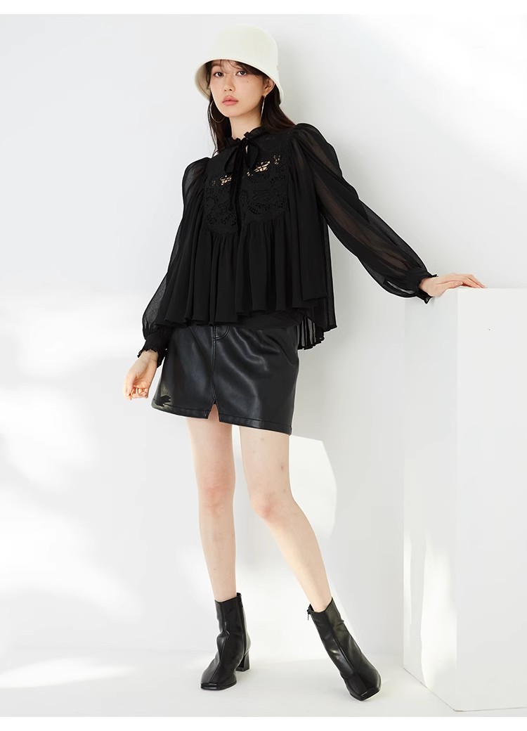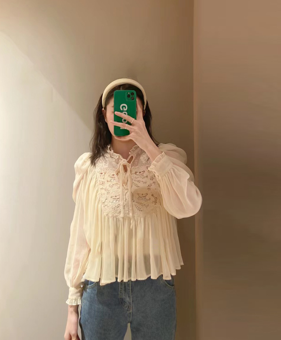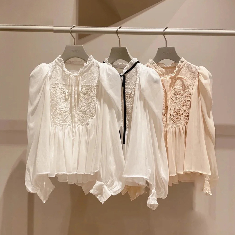 【贅沢なレース使いが目を引く王道フェミニンなブラウス】