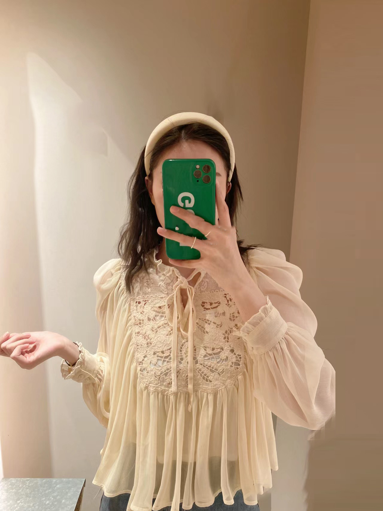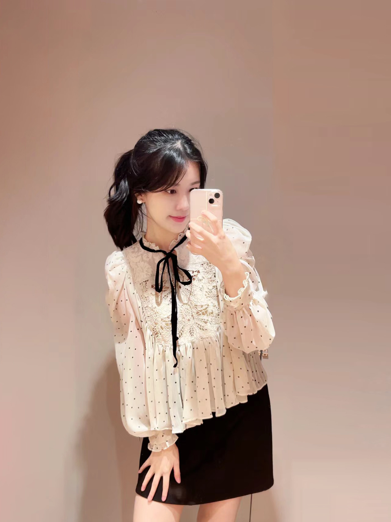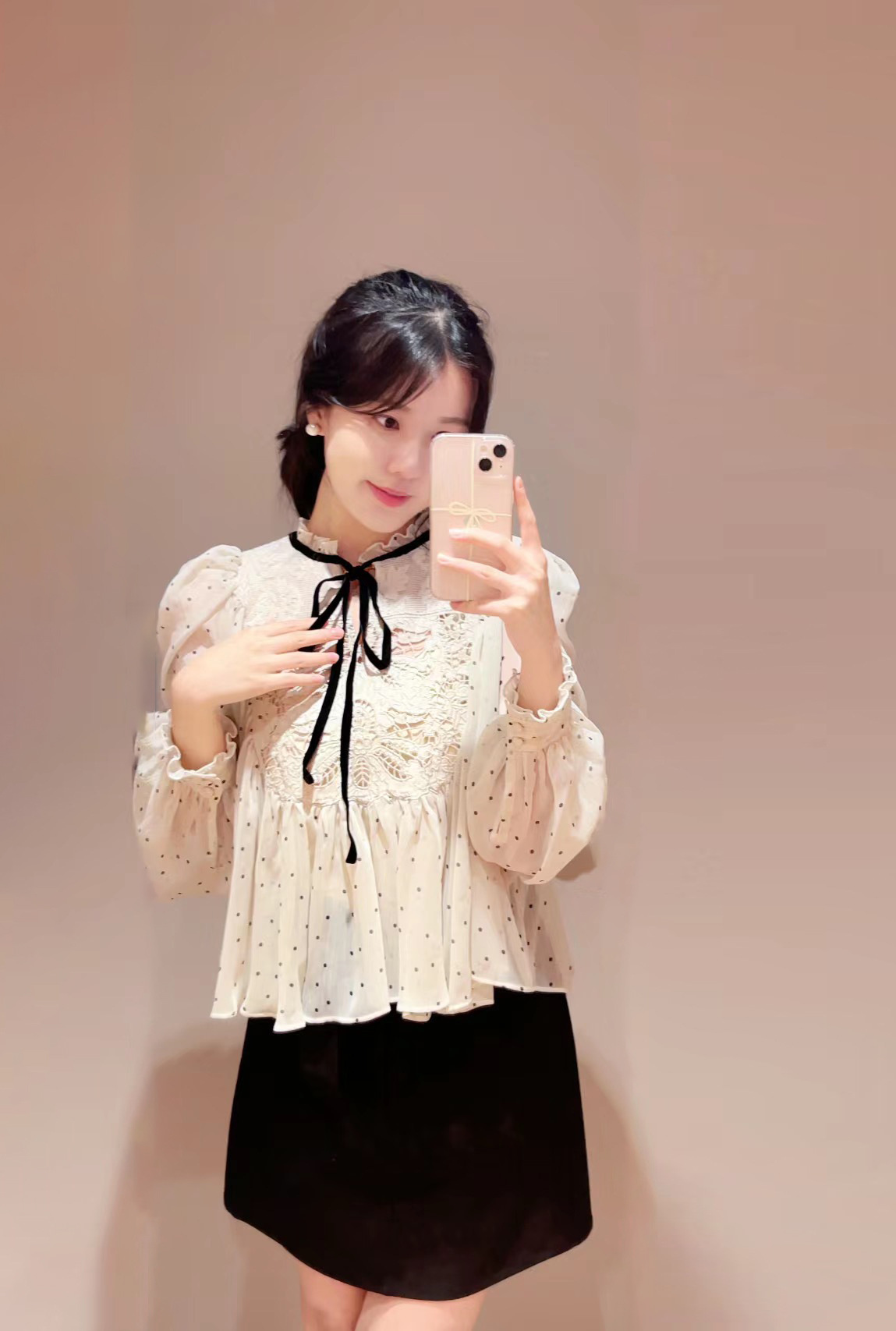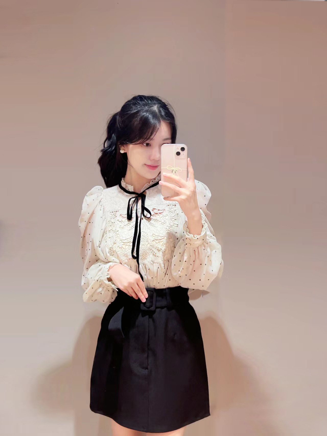 【贅沢なレース使いが目を引く王道フェミニンなブラウス】