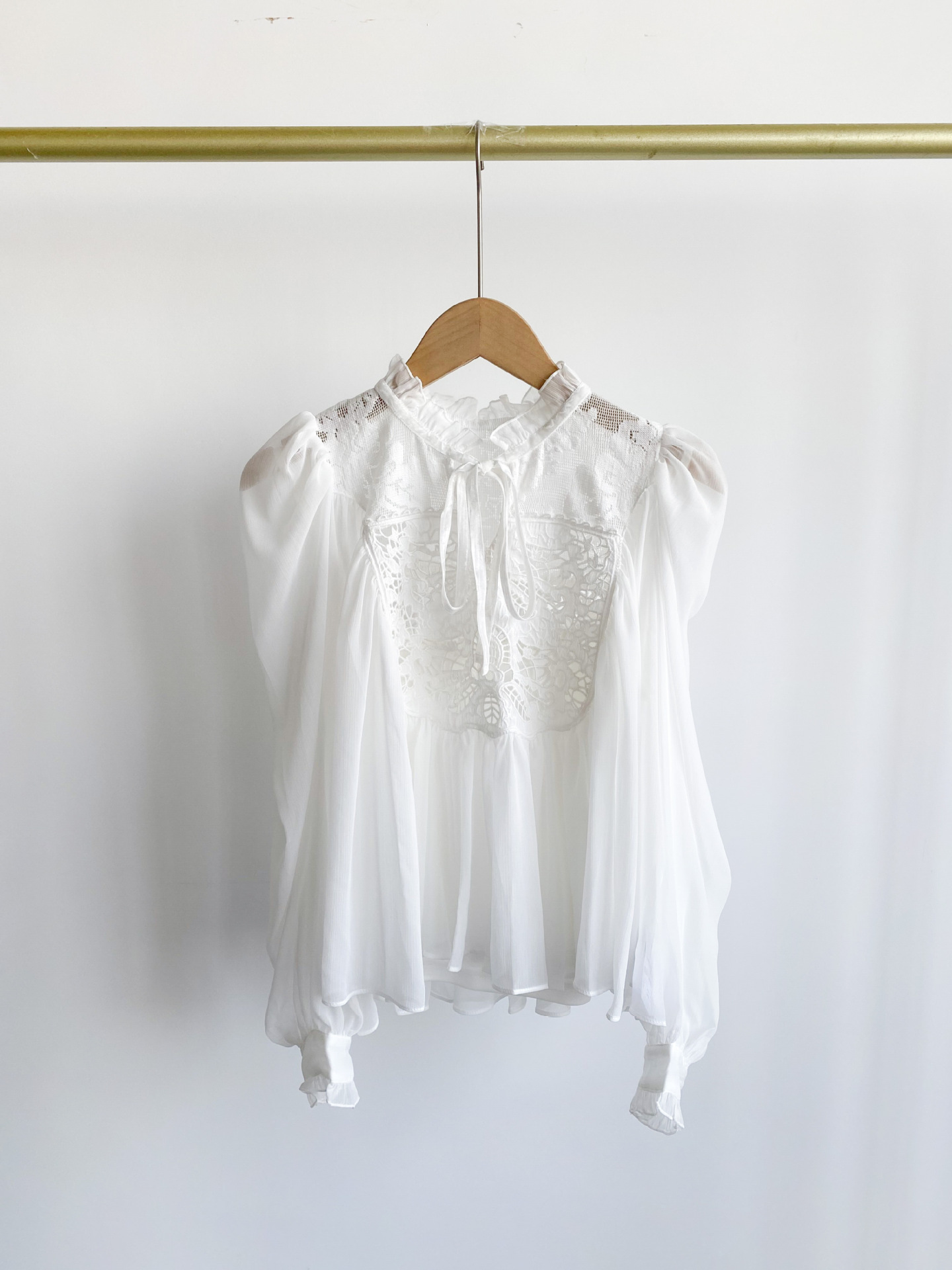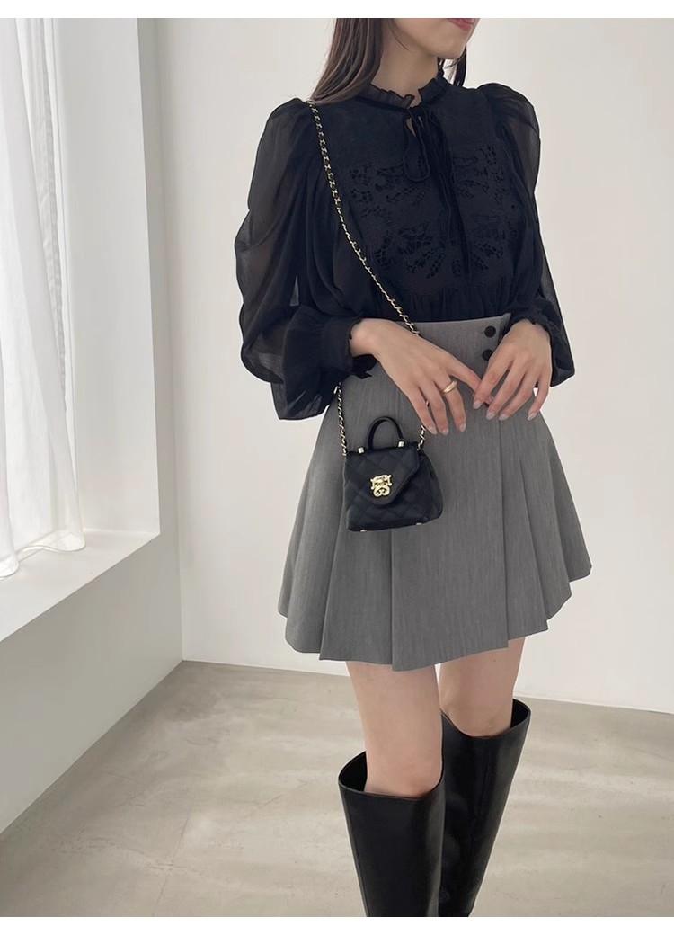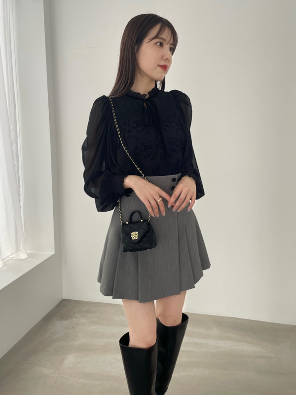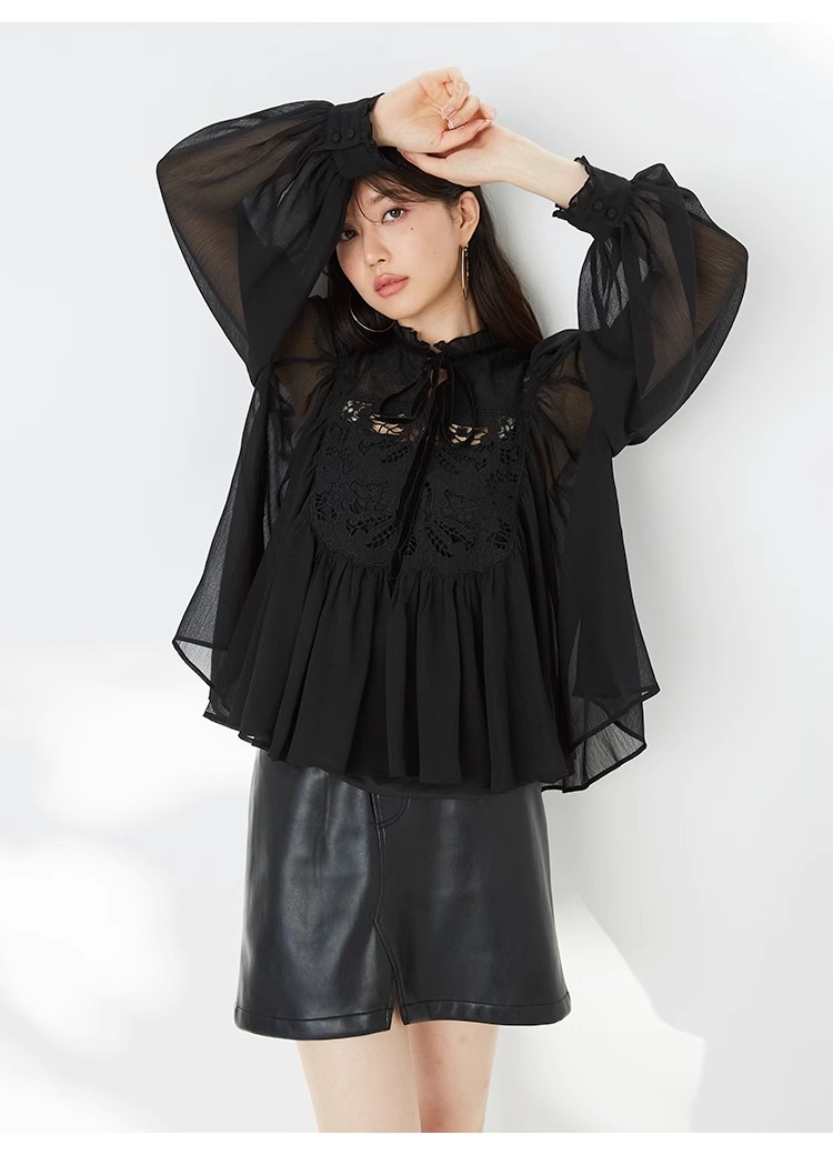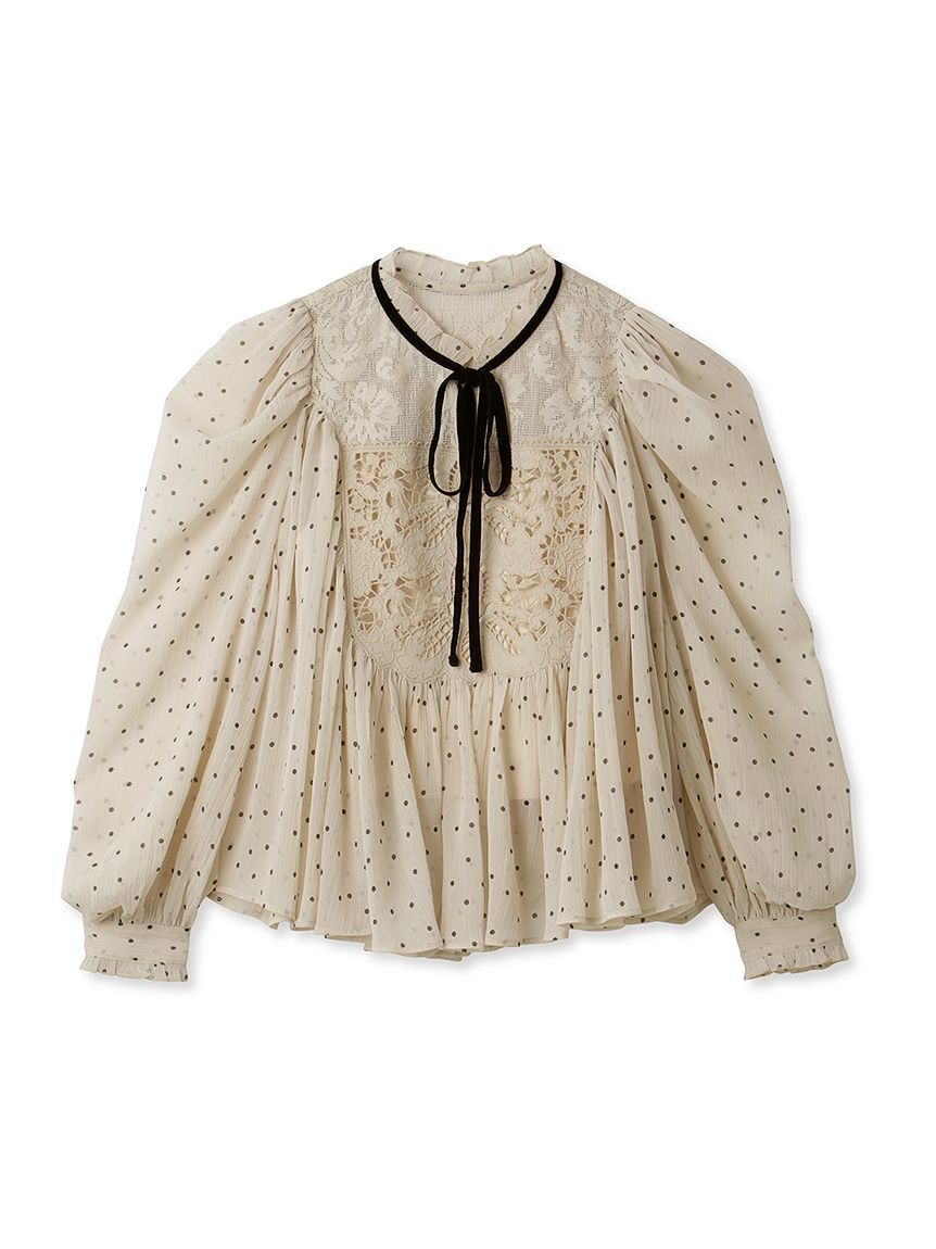 春夏に人気を集めたブラウスがリバイバル。オリジナル刺繍レースとカーテンレースを組み合わせ贅沢に仕上げた1着です。たっぷりと分量感のあるフレアシルエットでロマンティックに。リボンやフリルなどの甘ディテールもプラスし、どこまでも女性らしく仕上げています。柔らかさのある素材なのでボトムにインしてもアウトでもバランス良く決まり、ボトムを選ばず合わせられます。