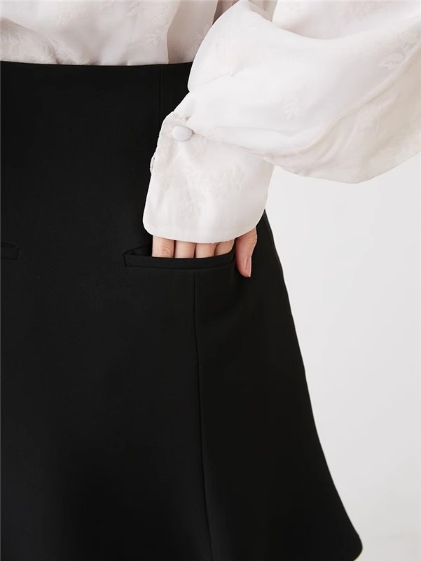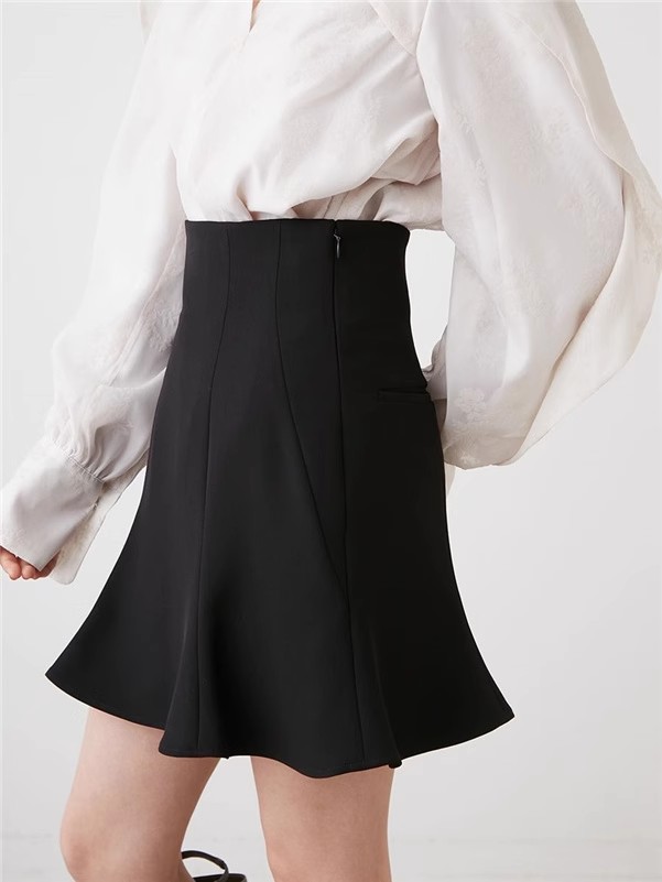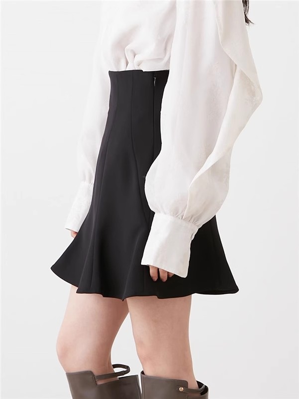 SNIDELの定番アイテムのひとつ・フレアヘムスカショ。パネルを組み合わせたような繊細なフレア感が、ミニ丈をシックに魅せます。すっきりとしたハイウエストが体型カバーもアシスト。印象的でありながらもディテールが少ないシンプルデザインなので、華やぎブラウスやフェミニンなニットなどを合わせてもしっくり。デートや食事会など、様々なシーンで楽しめます。ポケット付きです。