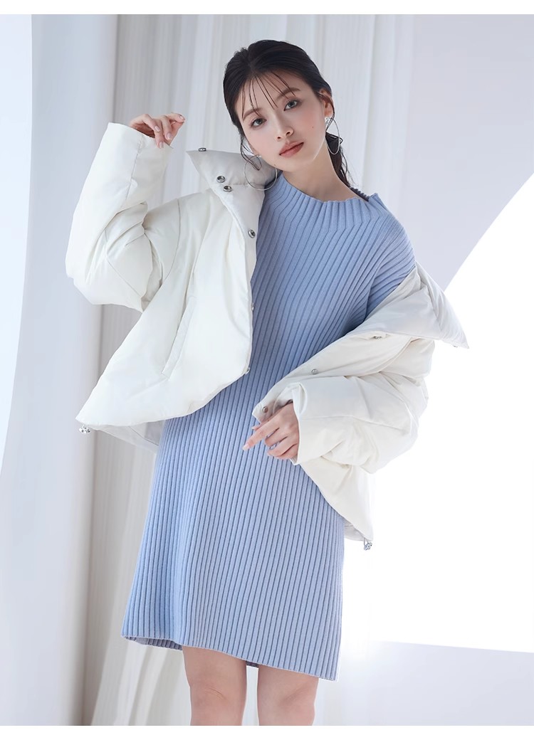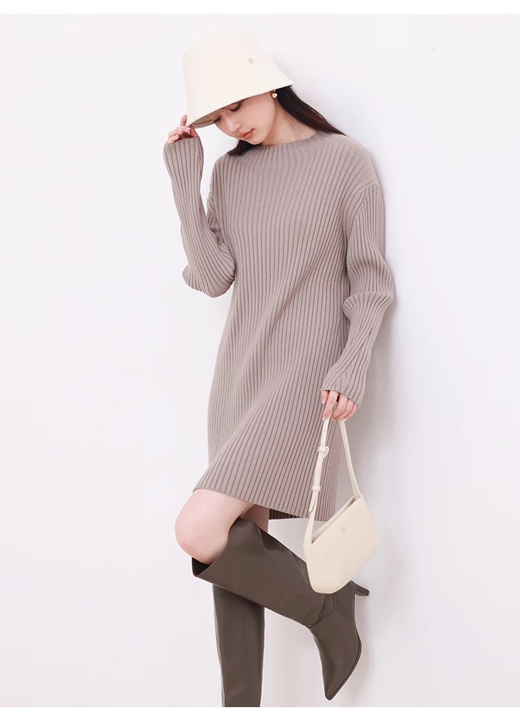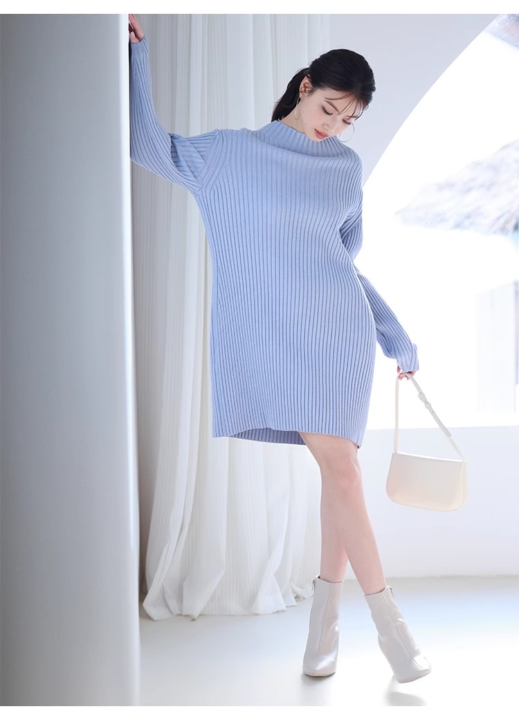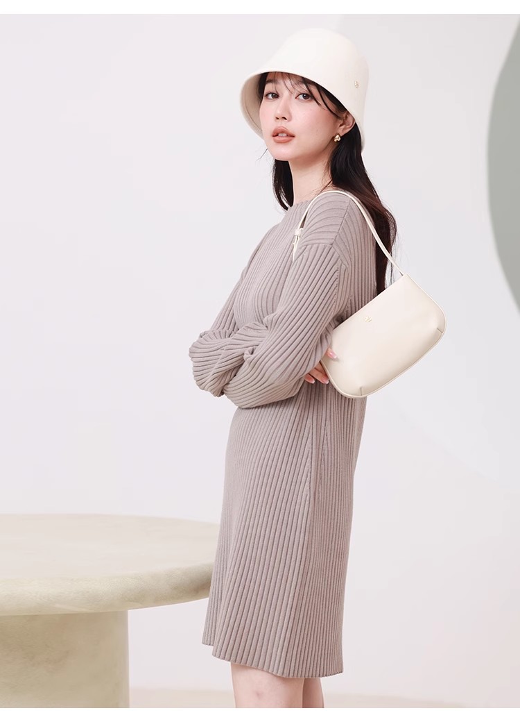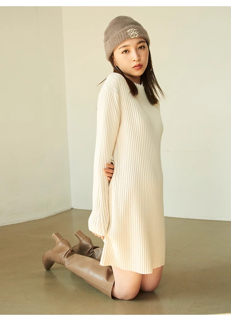 【細部にまでこだわったシルエットで魅せるニットワンピース】