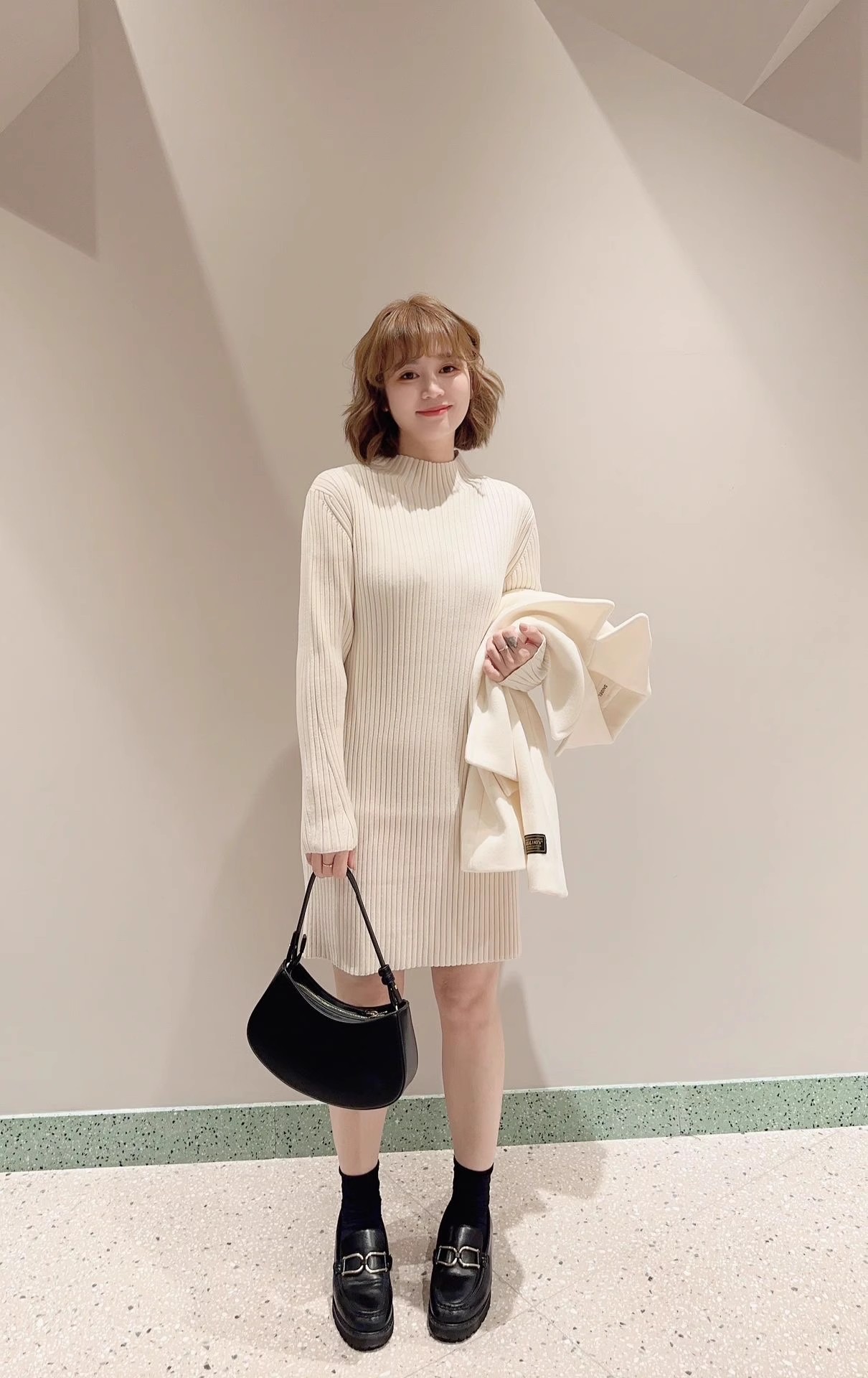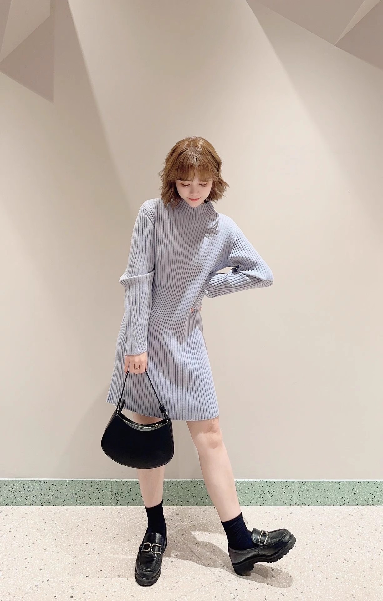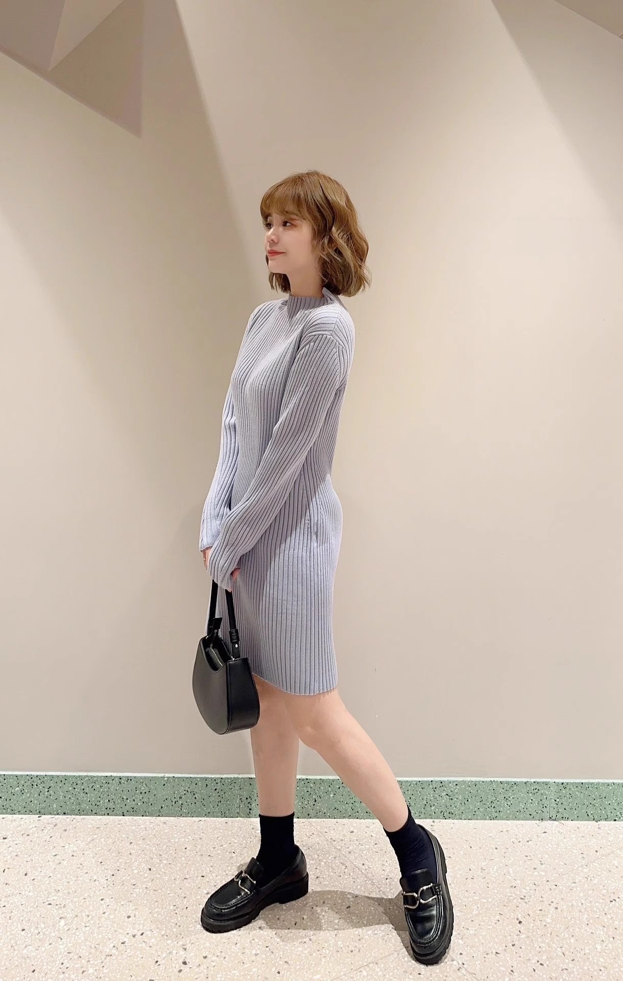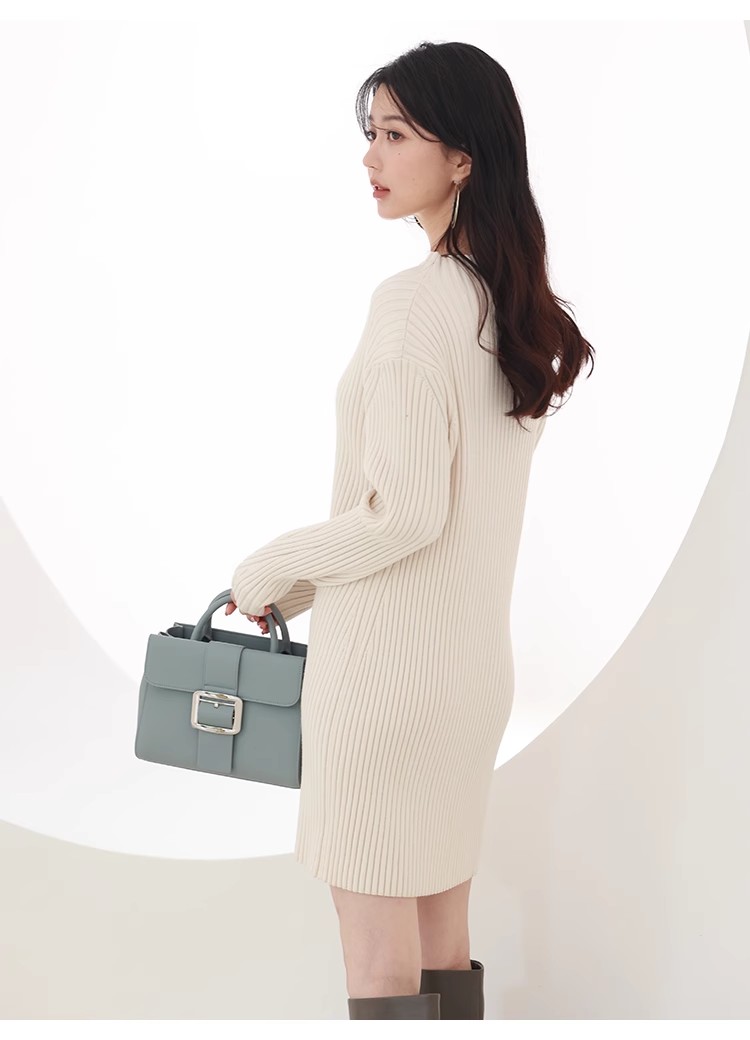 【細部にまでこだわったシルエットで魅せるニットワンピース】