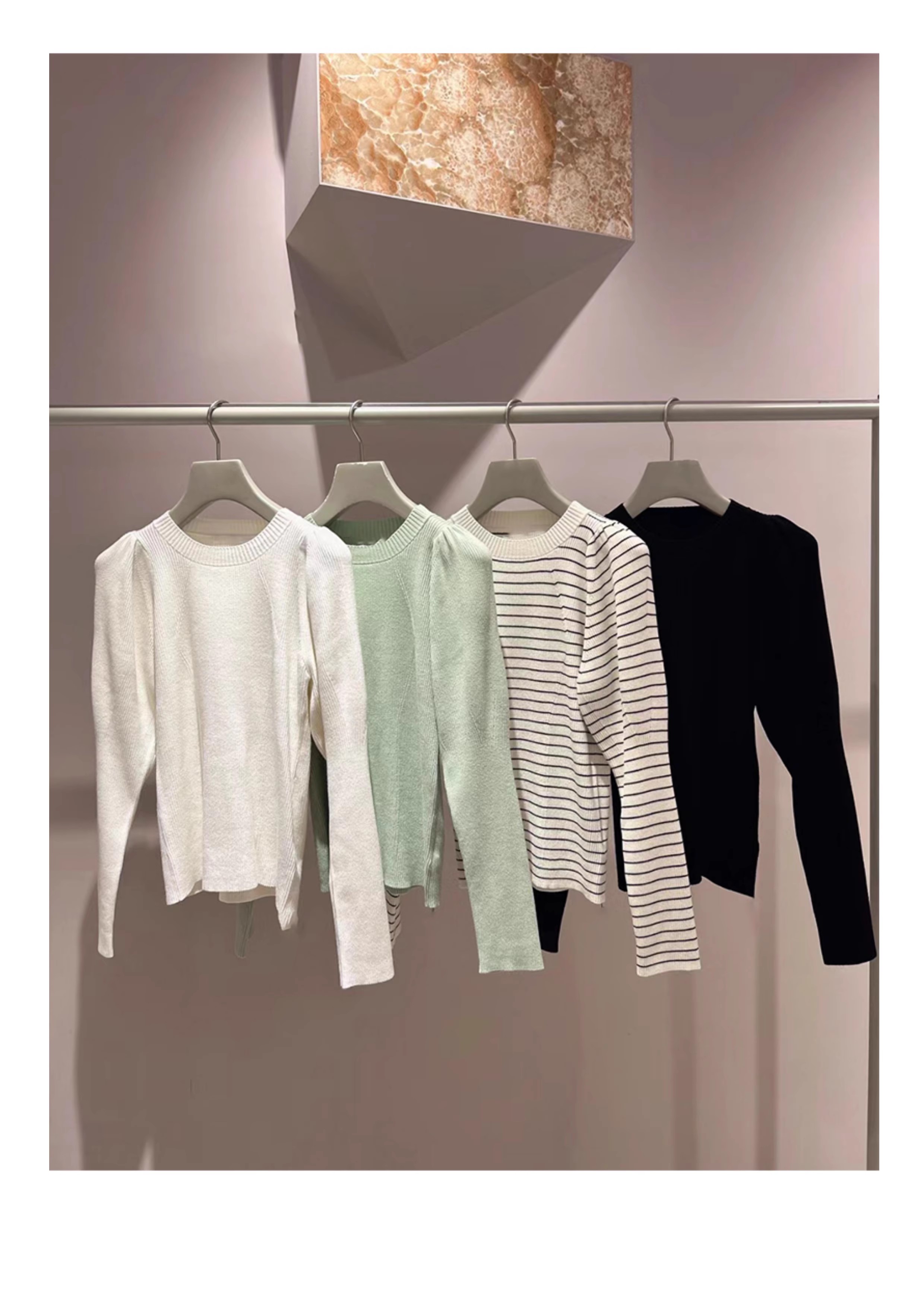 立体感のある女性らしいパフスリーブが印象的な、シンプルながらもこだわりの詰まったニットプルオーバー。ふっくらとしたパフ部分とピタっとした袖のメリハリバランスが華奢見えを叶えてくれます。身頃部分はダイヤのような編み地の切り替えにより、ウエストの細見え効果をプラス。1枚でさらっと着るのはもちろん、レイヤードコーデにも活用でき、着まわし力は抜群です。