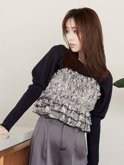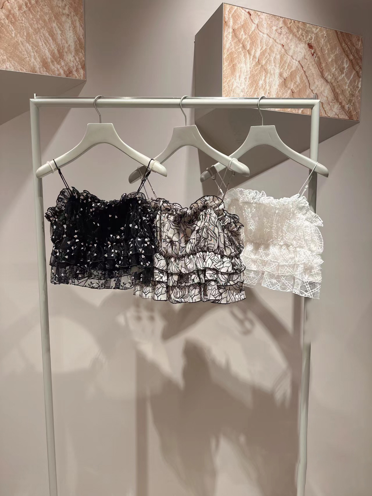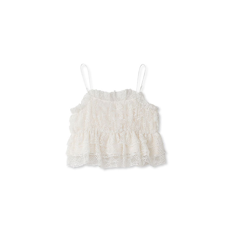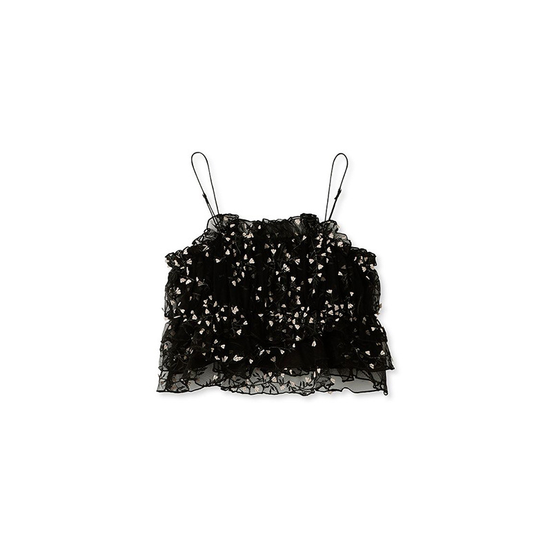 シアーなチュールを贅沢に使用しボリューミーなシルエットに仕上げた愛らしいキャミソール。トレンドライクなショート丈を採用することで重くなり過ぎずバランスの良いルックスに仕立てています。身頃には裏地を備えているので1枚でも着用可能。レイヤードするアイテムによってロングシーズン着用でき、様々なスタイリングを楽しめます。