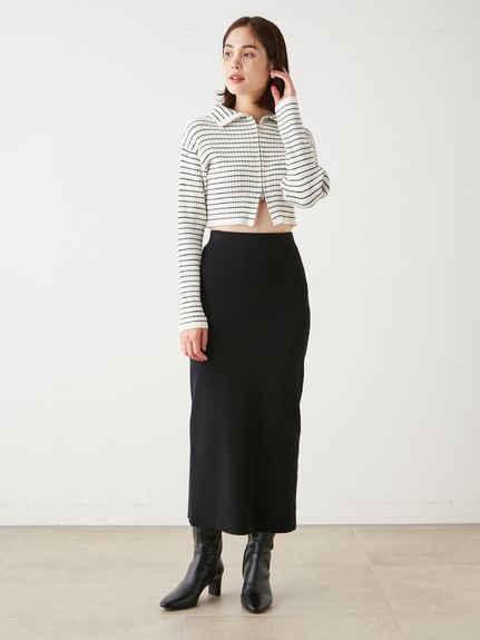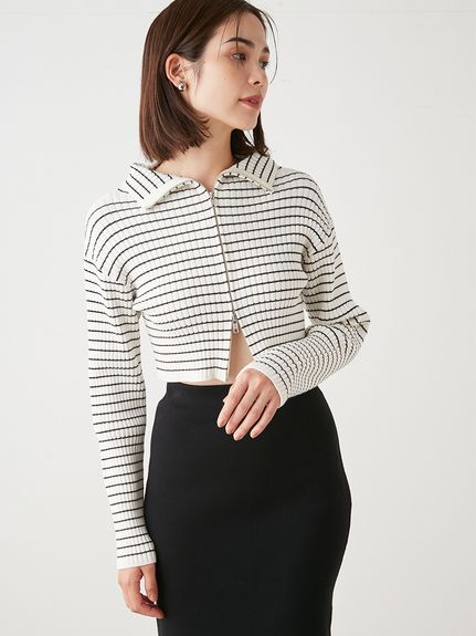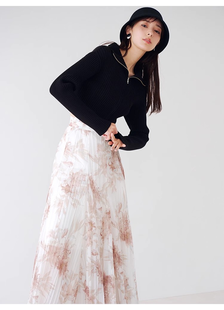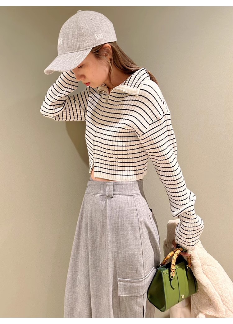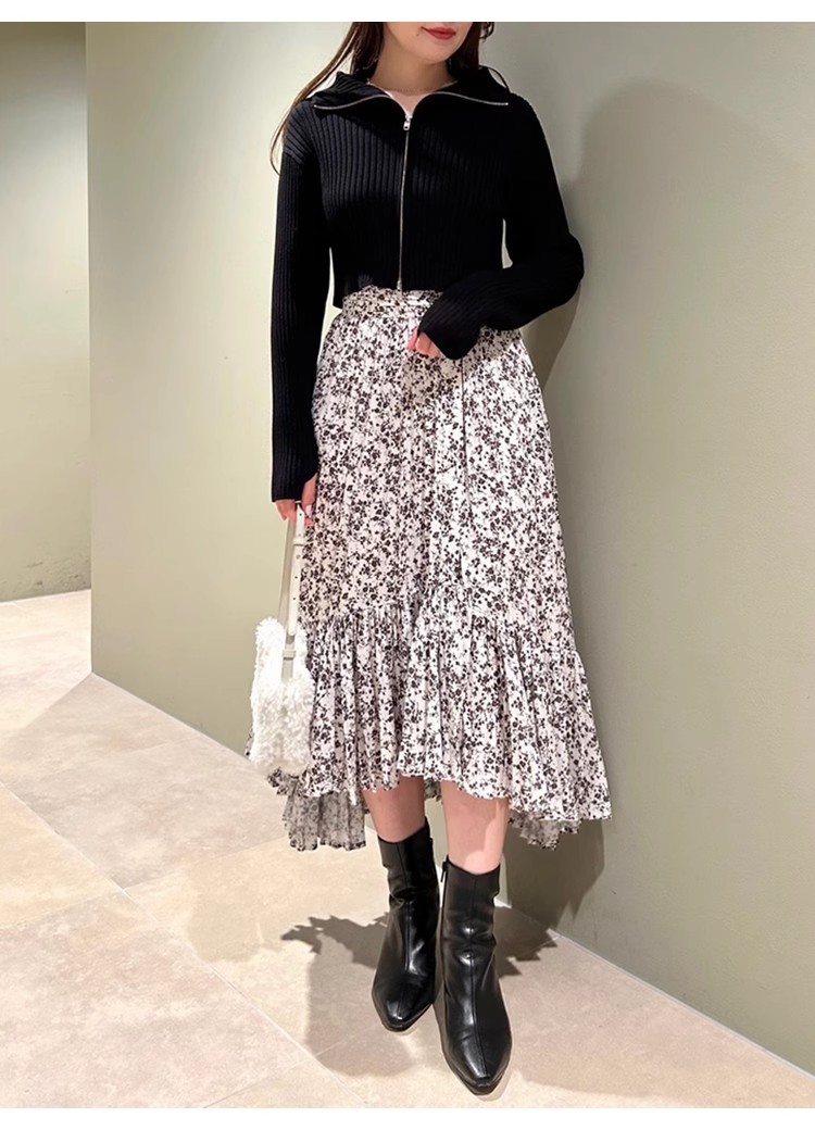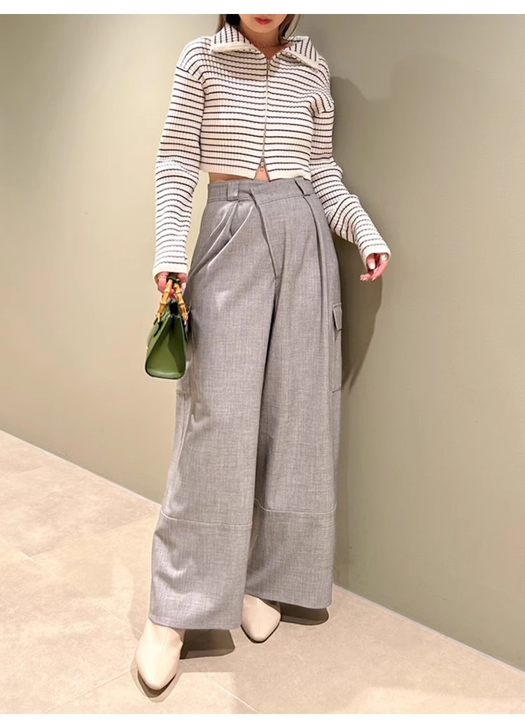 昨年大人気だったフロントジップニットプルオーバーが再登場。ジップを逆開きにし、今季らしくバージョンアップしました。裾からジップを少し上げ、ウエストをチラ見せすればトレンドライクなコーディネートが完成します。クロップド丈のコンパクトなシルエットなので合わせるボトムを選ばず、幅広いスタイリングに活躍してくれます。