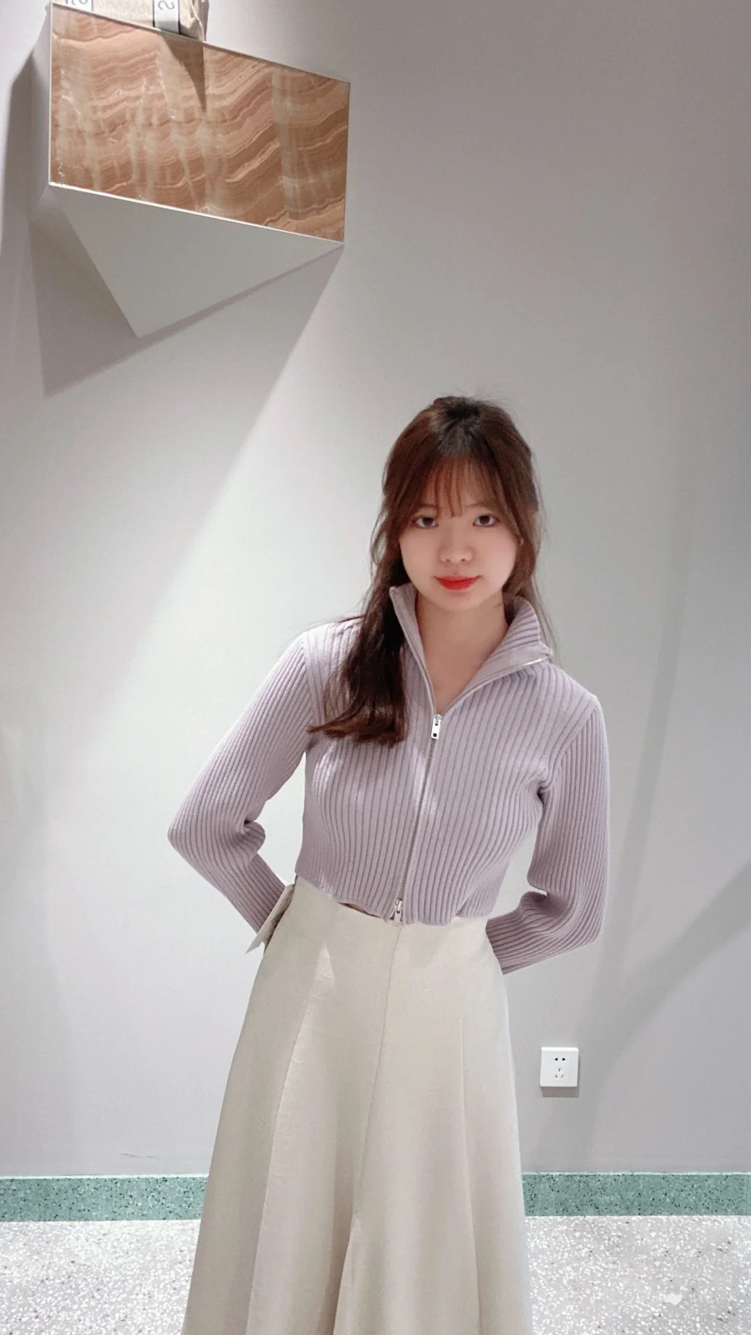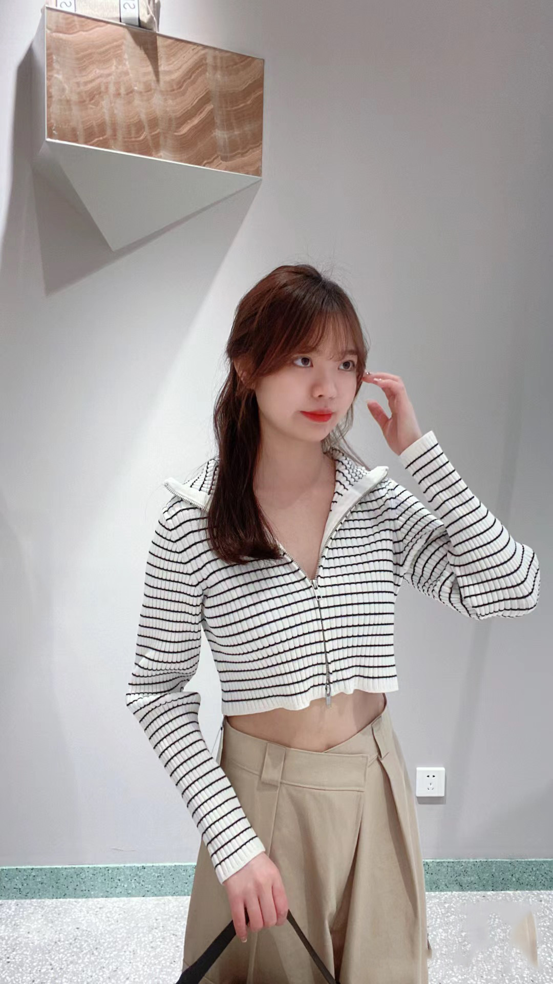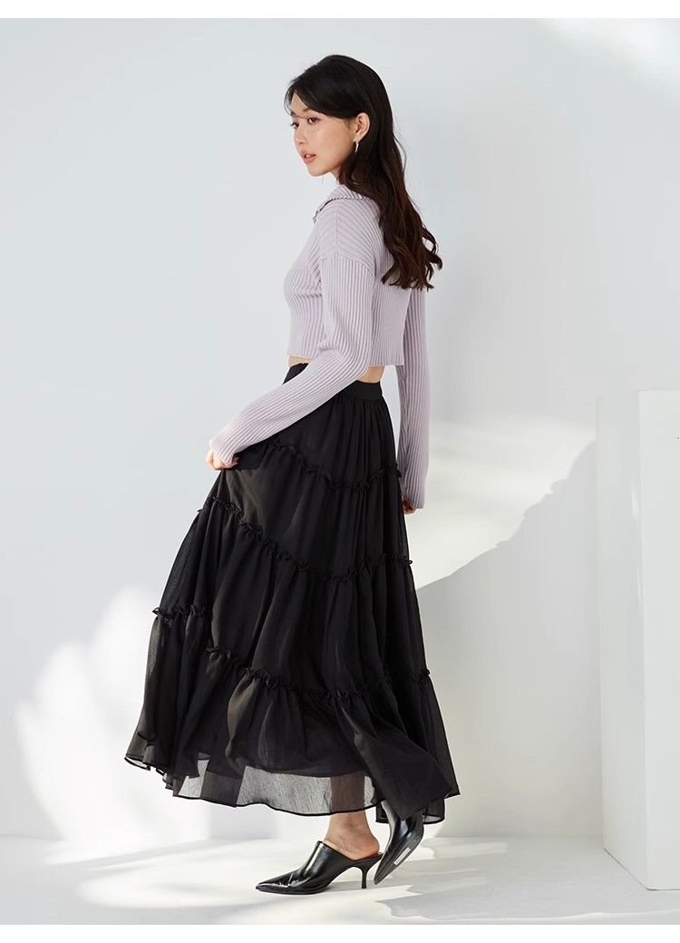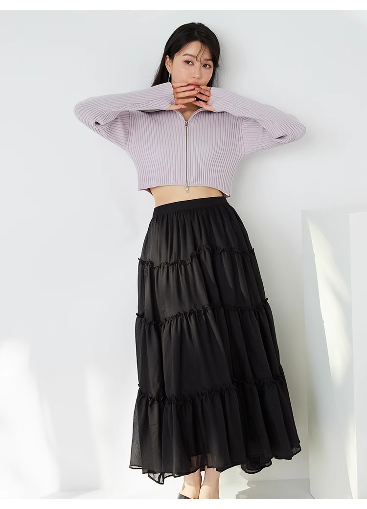昨年大人気だったフロントジップニットプルオーバーが再登場。ジップを逆開きにし、今季らしくバージョンアップしました。裾からジップを少し上げ、ウエストをチラ見せすればトレンドライクなコーディネートが完成します。クロップド丈のコンパクトなシルエットなので合わせるボトムを選ばず、幅広いスタイリングに活躍してくれます。