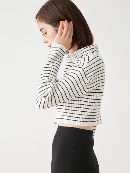 伸縮性のある程よい肉感のリブニットを使用しました。ベーシックカラーのオフホワイトとブラックに、レディムード高まるラベンダー、大人カジュアルなボーダーの4色をご用意。