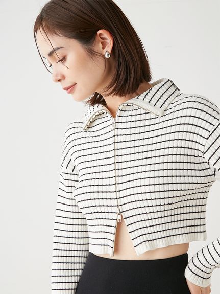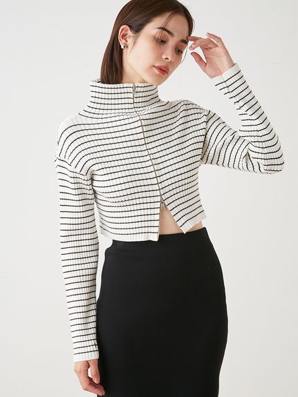 フロントジップニットプルオーバー