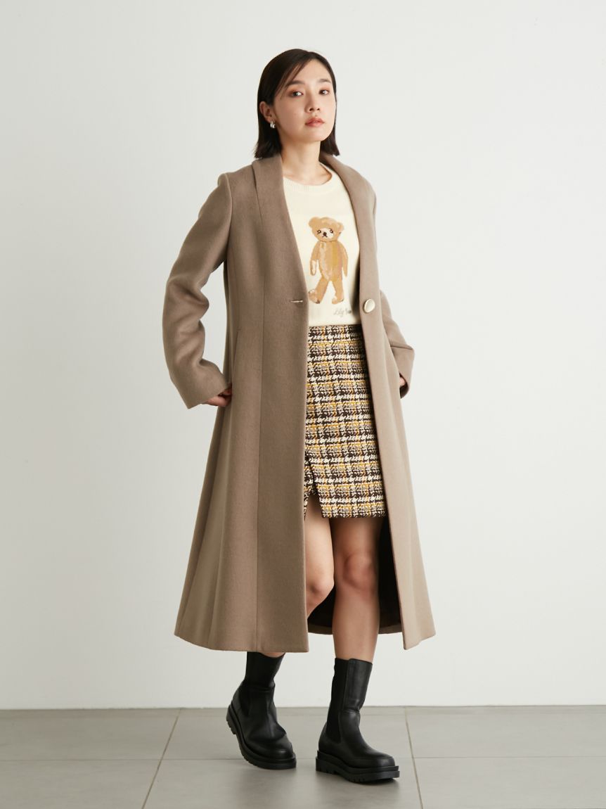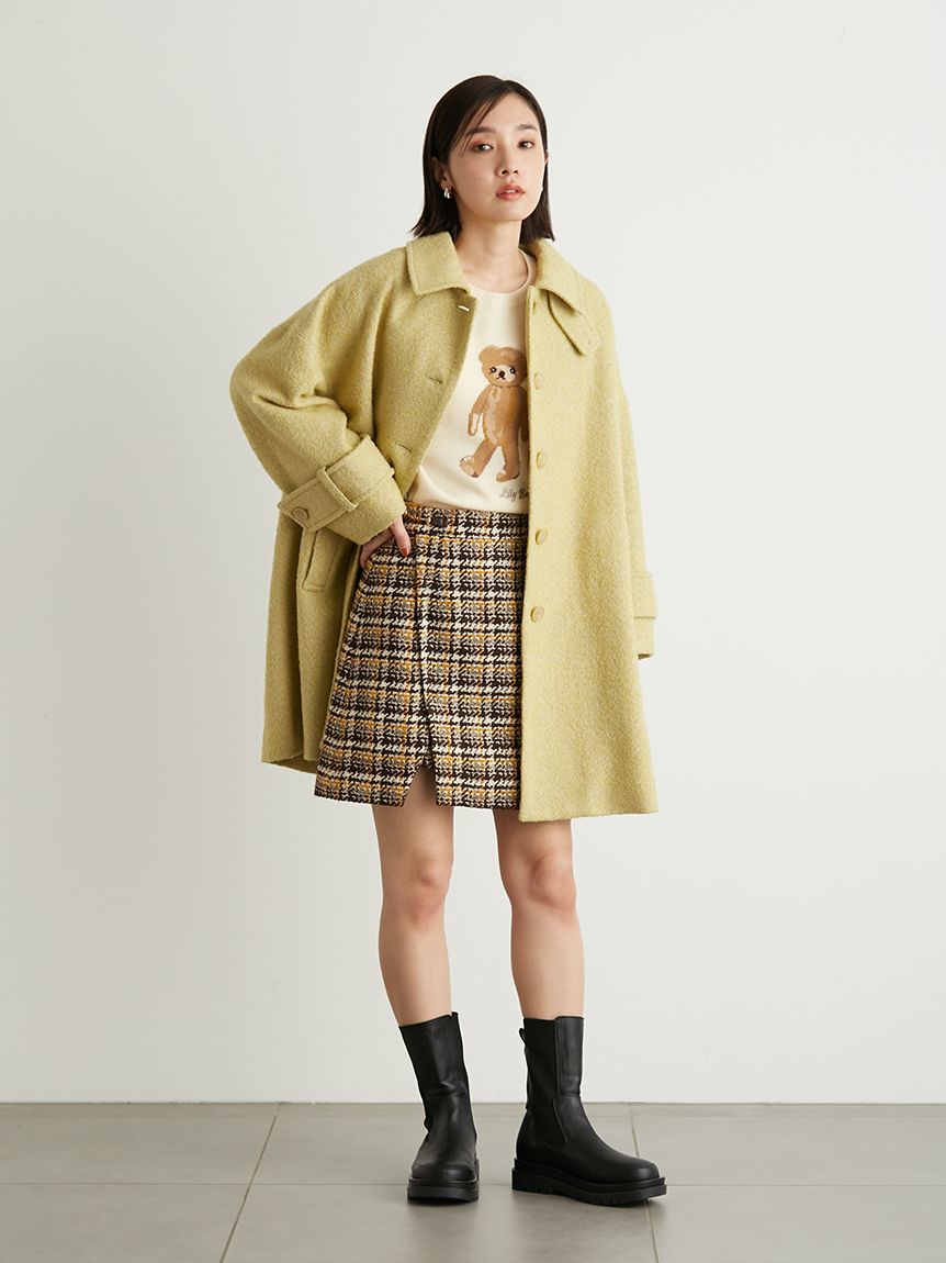 毎シーズン人気の"Lily Bear"シリーズより新作のニットプルオーバーが登場。今回は歩き出す様子のリリーベアを表現。リリーベア部分はインターシャ編み、ロゴ部分は刺繍でほんのり光沢感をプラスしました。身体のラインを拾わないゆったりとカジュアルに楽しめるサイズ感なので、1枚でもレイヤードコーデでも幅広くキャッチーにスタイリングして頂けます。