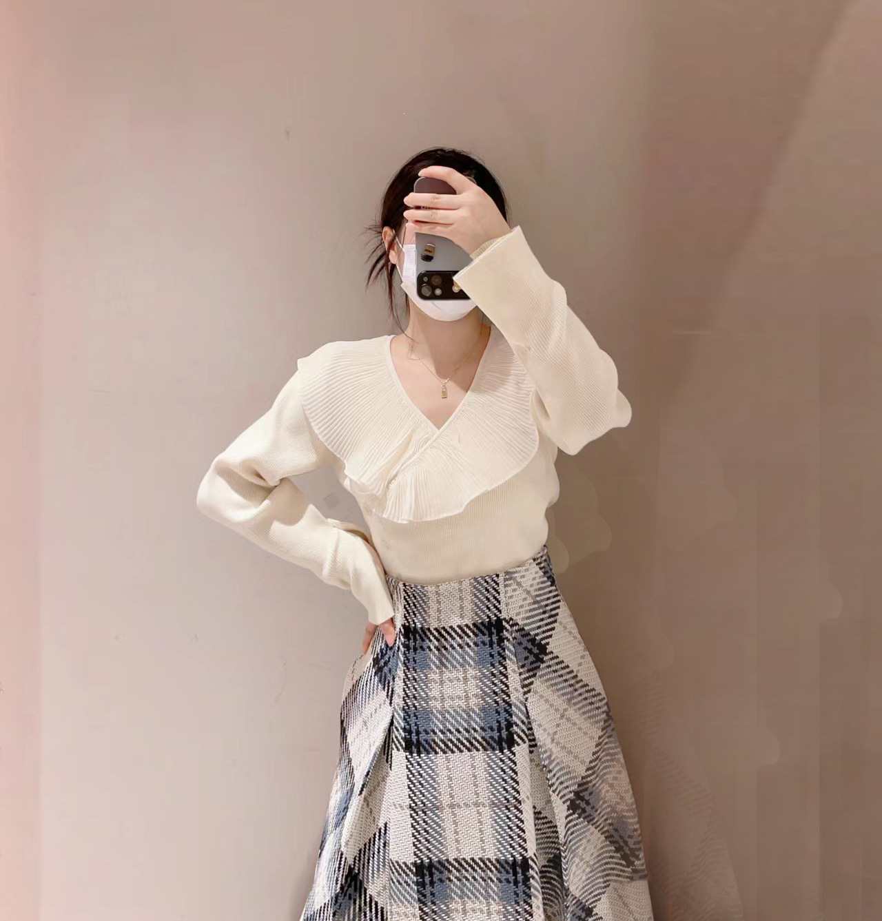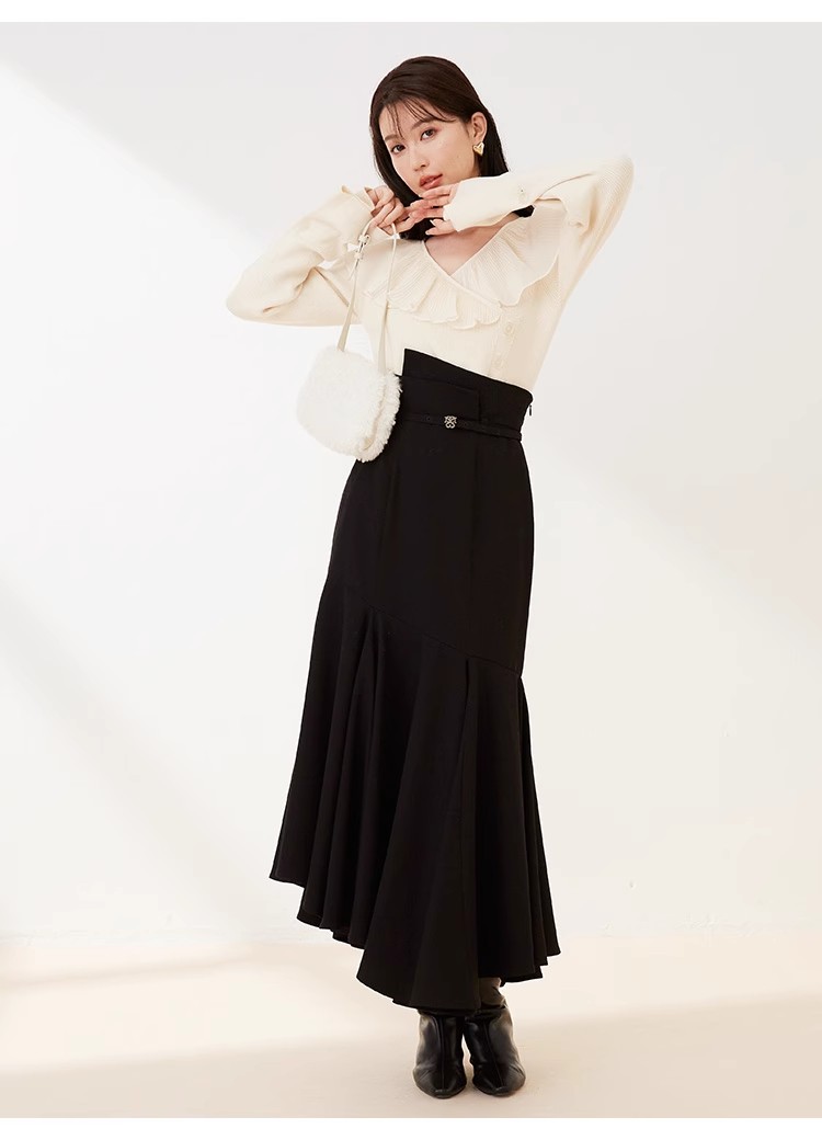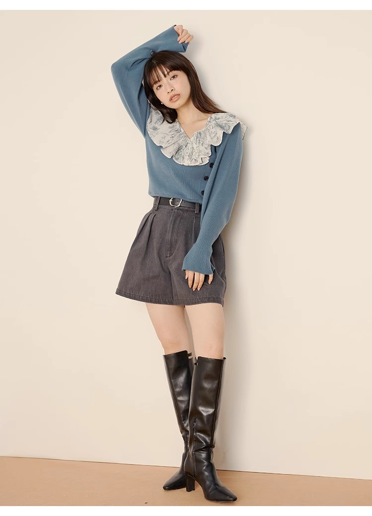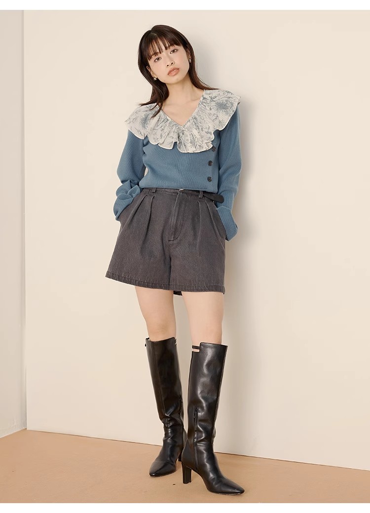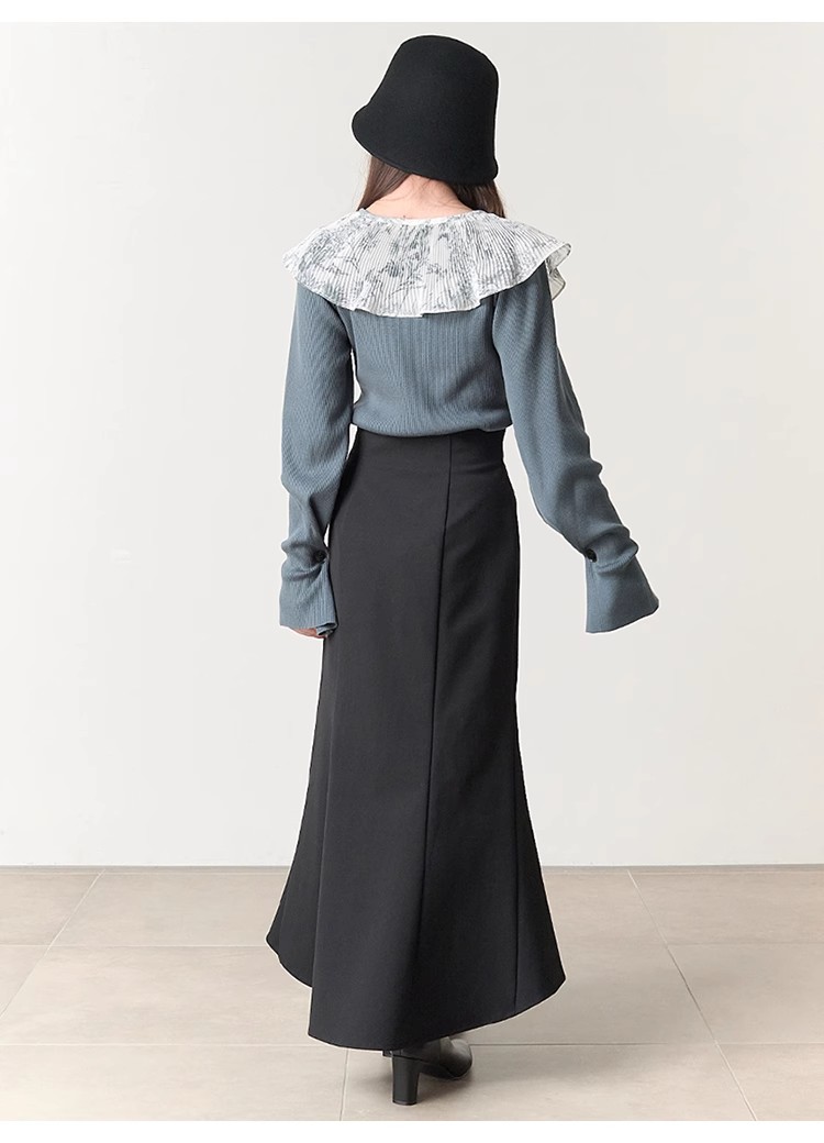 エアリーなシフォンの襟がドッキングされた、クラシカルレディなニットプルオーバー。シフォンカラーには細かいプリーツを畳み、ボリュームがありながらも軽く見えるように工夫しました。袖と身頃にはボタンをあしらい細部のディテールにもこだわった1着。すっきりとしたシルエットなので合わせるボトムを選ばず、幅広いコーディネートに取り入れられます。