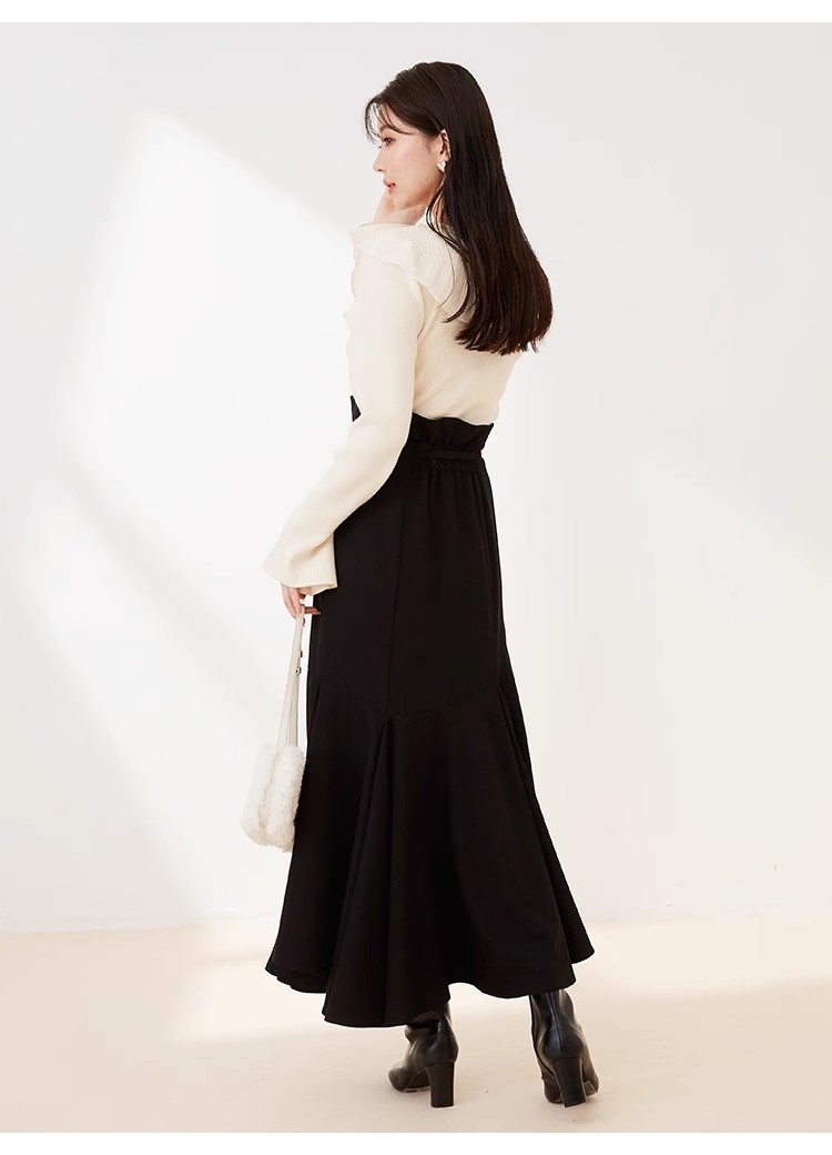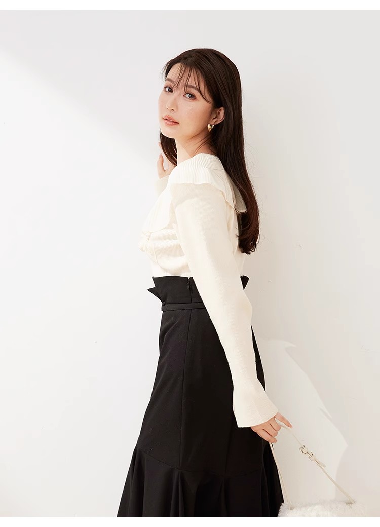 綺麗めな風合いで程よい肉感のあるニット素材を使用。ベーシックカラーのアイボリーとブラックに、大人っぽい色合いのダークブルーを加えた3色展開でお届けします。