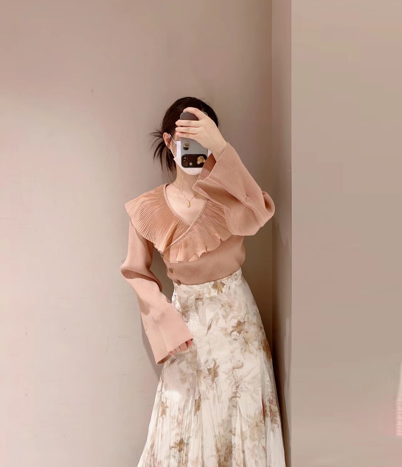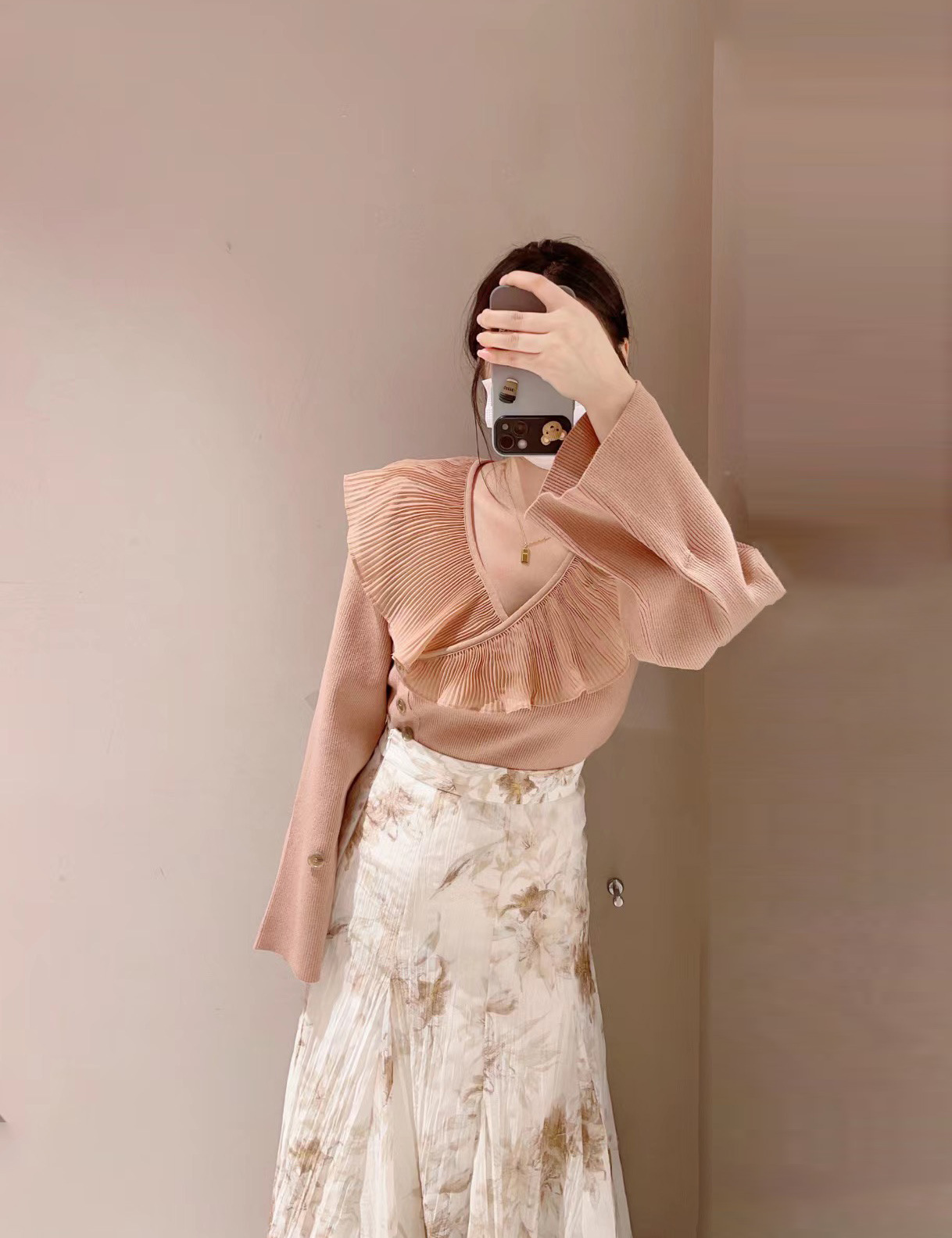 【華やかなシフォンカラーが目を惹くレディ度満点のニットプルオーバー】