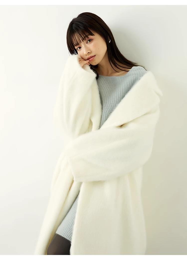 暖かくて肌あたりのいい、ラクーンニットを使用しました。アイボリー、ピンク、ライトブルー、ネイビーの4色でのご用意です。