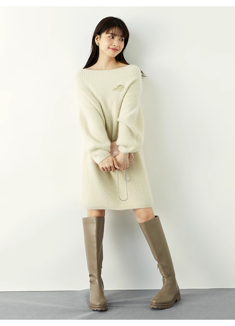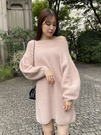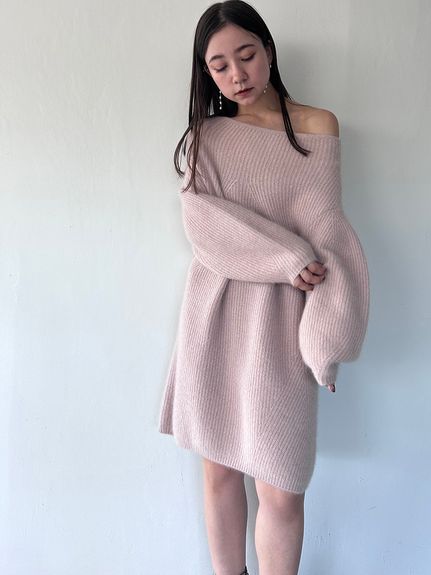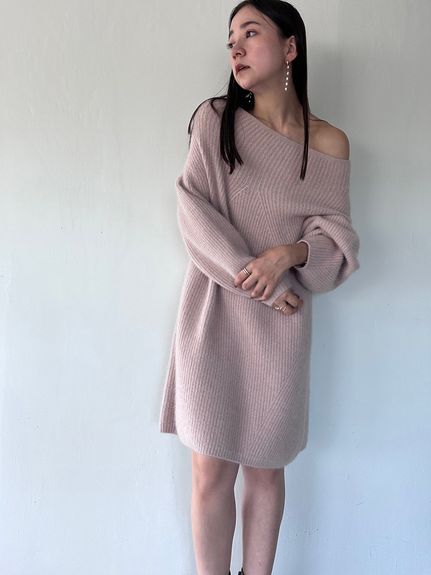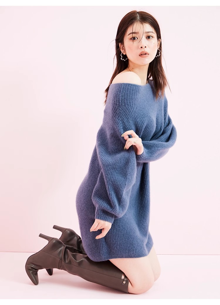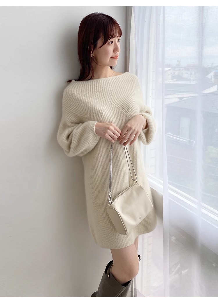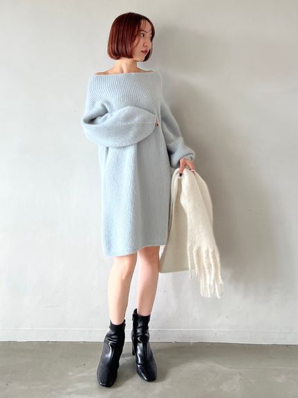ラクーンニットで柔らかな印象に仕上げたミニワンピは、SNIDELの名品アイテム。隙を作るようなリラクシーなシルエットや、〝たゆん〟としたスリーブが女っぽさたっぷり。生地にボリュームがある分、素肌がのぞく広めのネックラインですっきり着こなせるバランスに整えました。身頃部分は途中で編み地に変化をつけ、奥行きをプラス。一枚でサラッと着つつロングブーツを合わせる定番スタイルもちろん、フレアスカートなどを合わせてもおしゃれに着ていただけます。