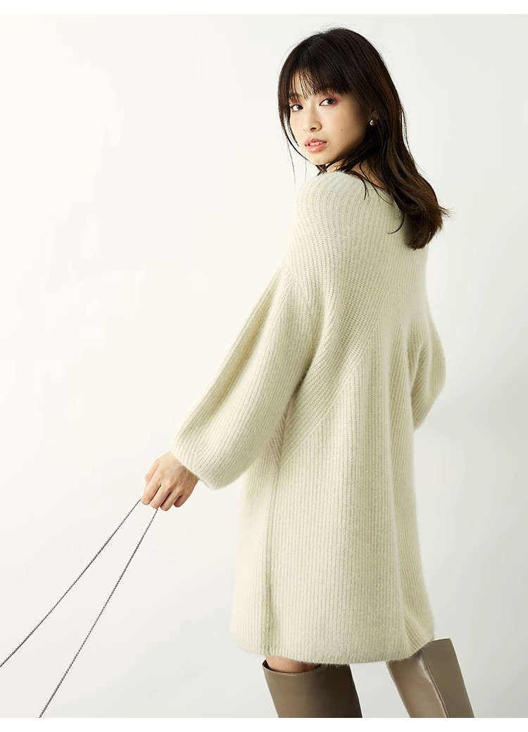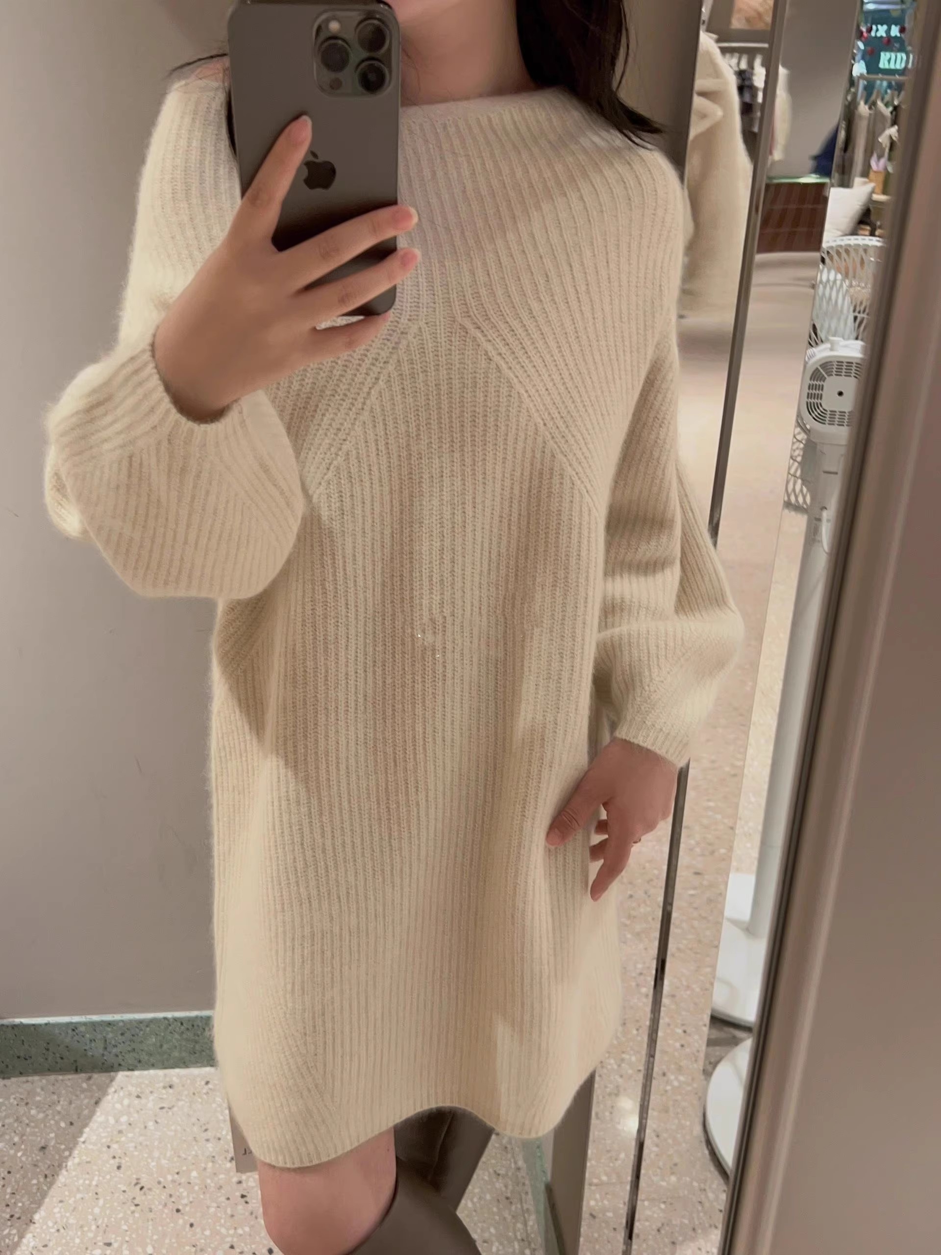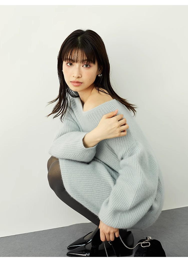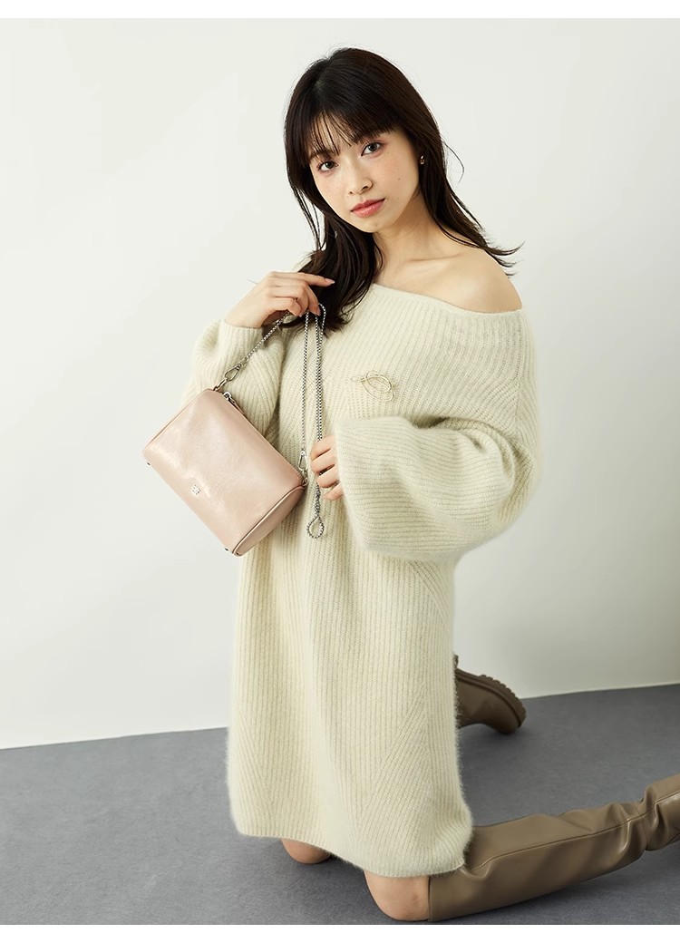 ラクーンニットで柔らかな印象に仕上げたミニワンピは、SNIDELの名品アイテム。隙を作るようなリラクシーなシルエットや、〝たゆん〟としたスリーブが女っぽさたっぷり。生地にボリュームがある分、素肌がのぞく広めのネックラインですっきり着こなせるバランスに整えました。身頃部分は途中で編み地に変化をつけ、奥行きをプラス。一枚でサラッと着つつロングブーツを合わせる定番スタイルもちろん、フレアスカートなどを合わせてもおしゃれに着ていただけます。
